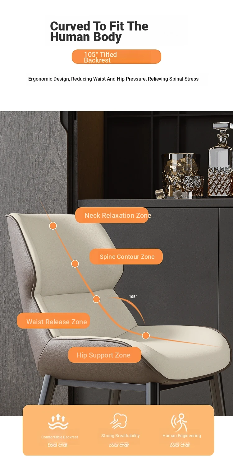 Nordic Luxury Dining Chair – Modern Minimalist Upholstered Chair for Home & Italian Hotel Use – Stylish and Comfortable Dining Stool with Backrest