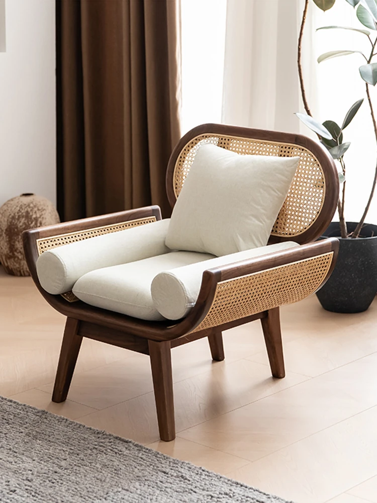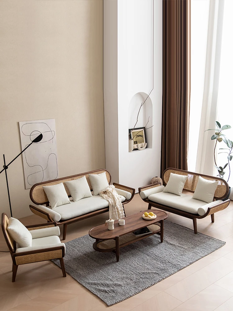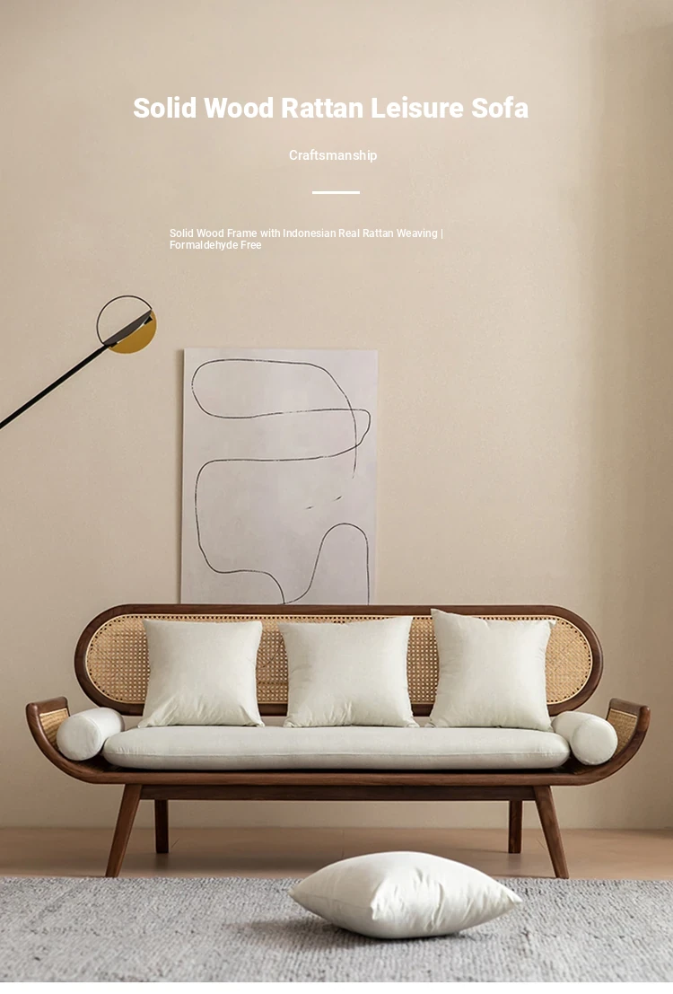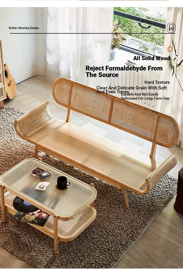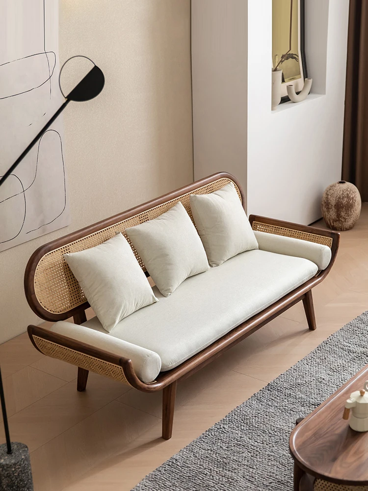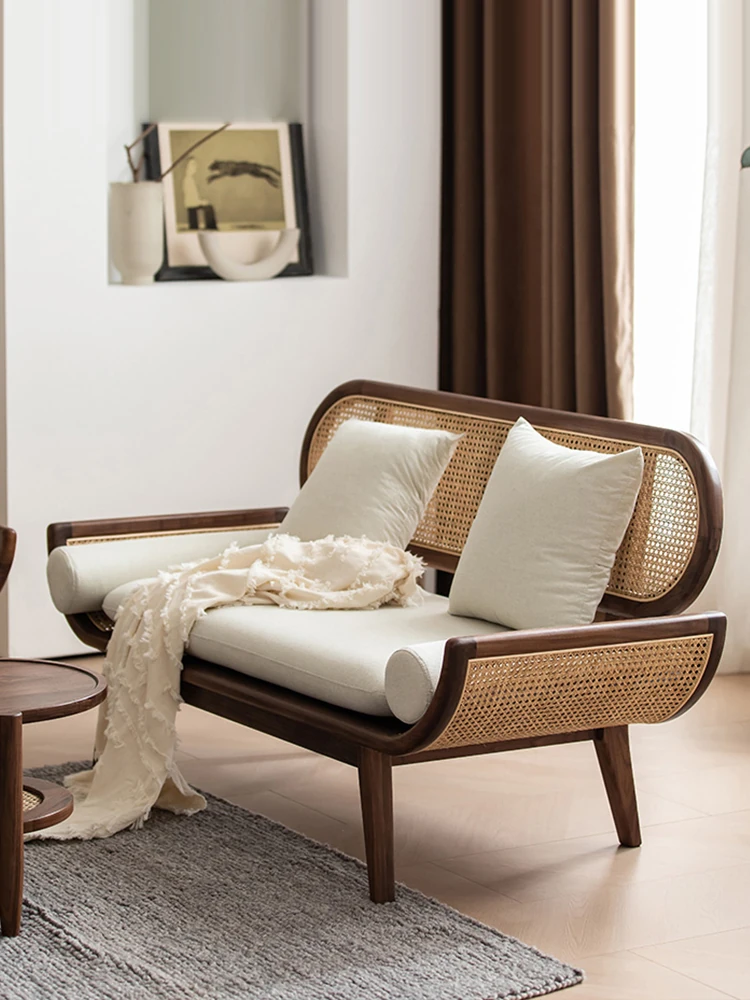 Nordic Minimalist Rattan Sofa - Solid Wood Single & Double Seat, Fabric & Linen Couch, Perfect for Small Spaces, Cozy Recliner Chair