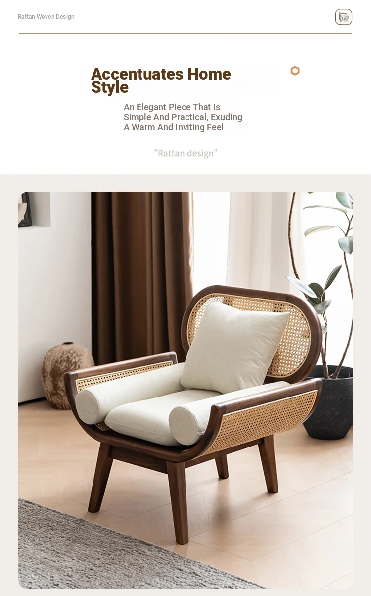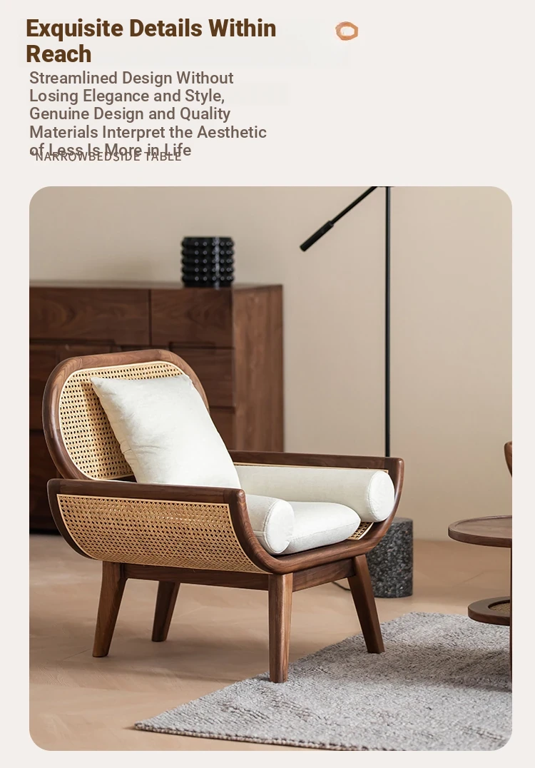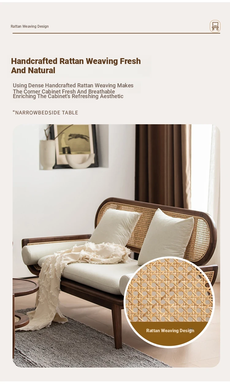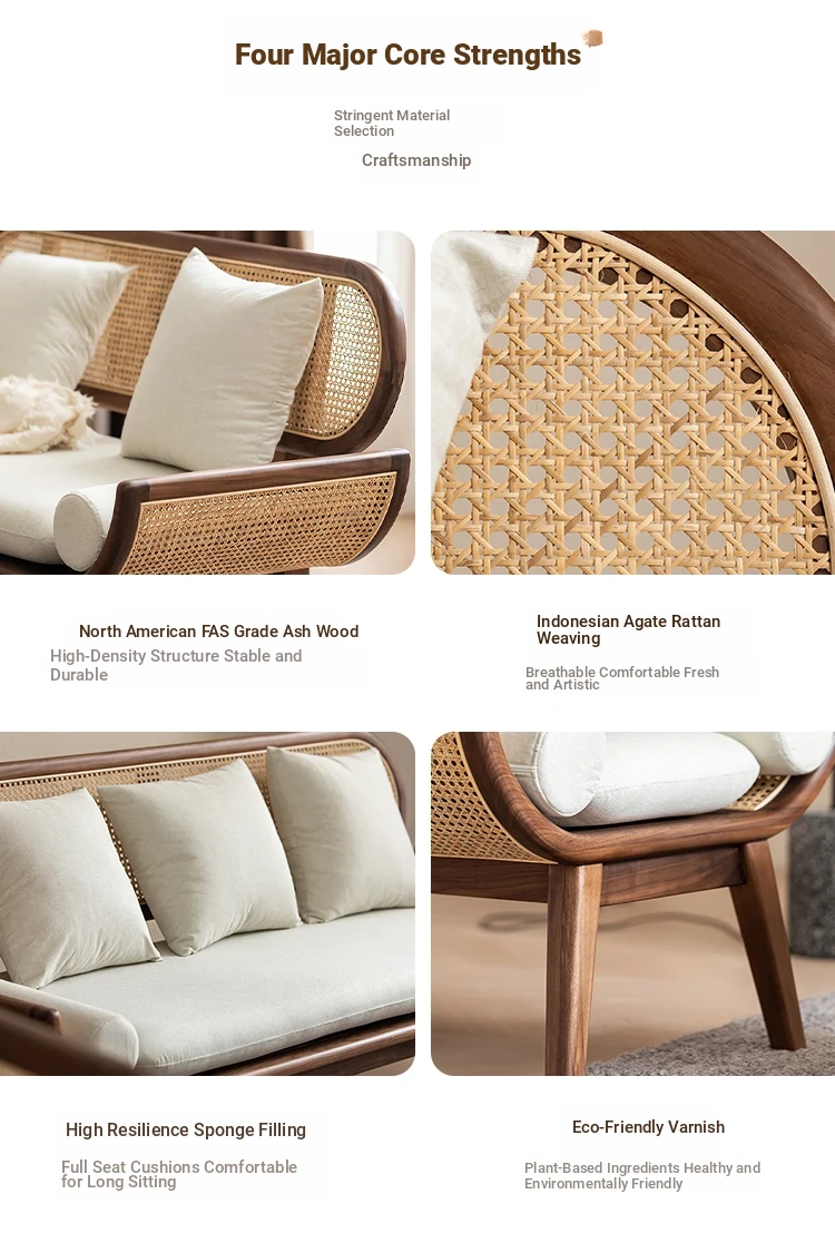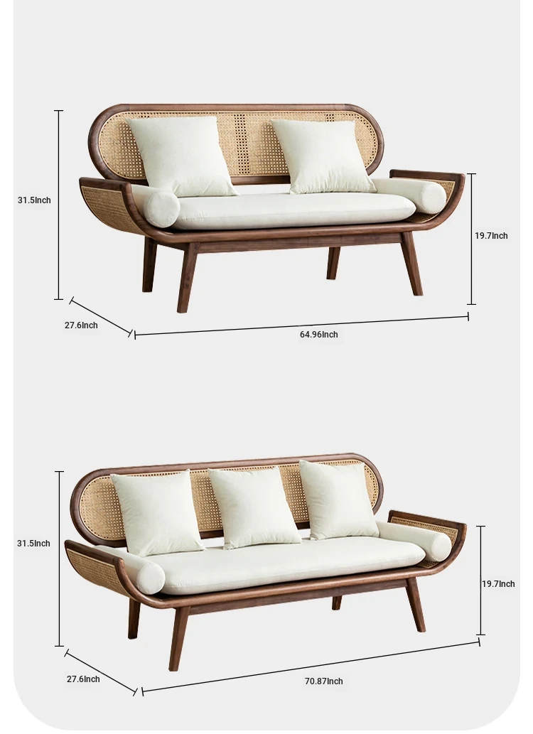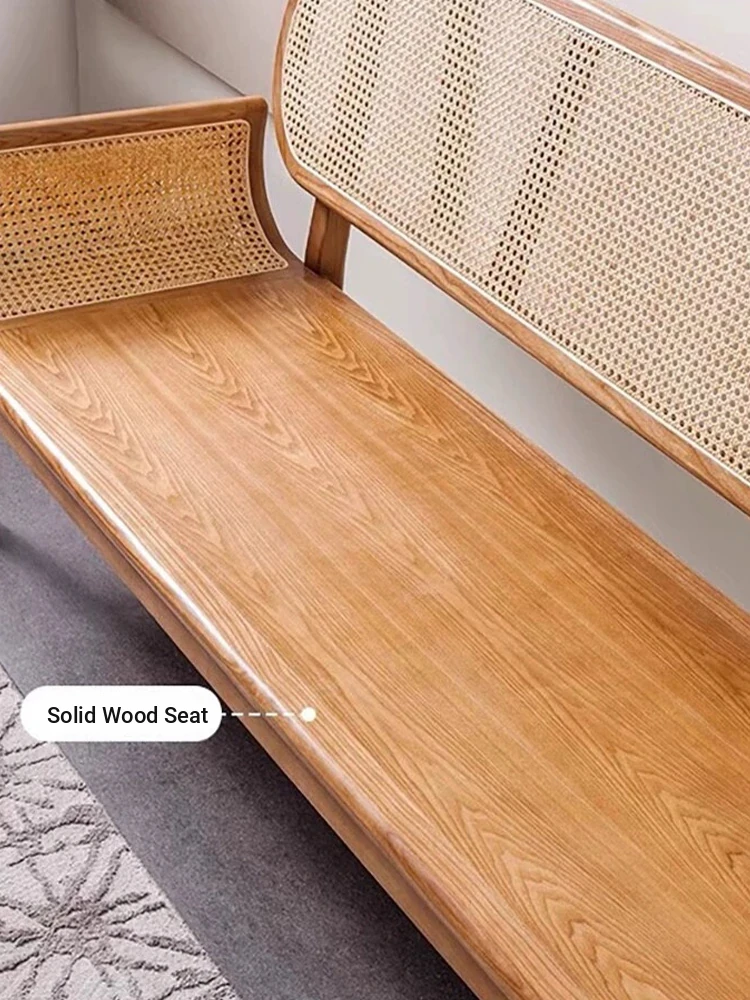 Nordic Minimalist Rattan Sofa - Solid Wood Single & Double Seat, Fabric & Linen Couch, Perfect for Small Spaces, Cozy Recliner Chair