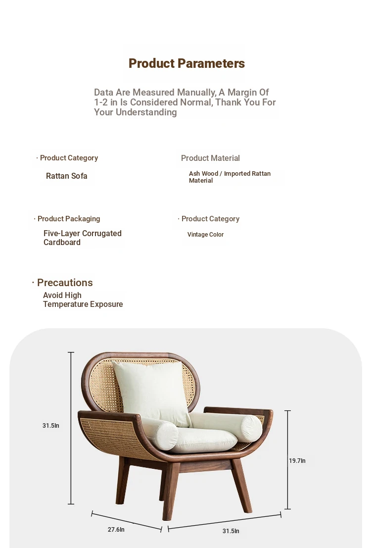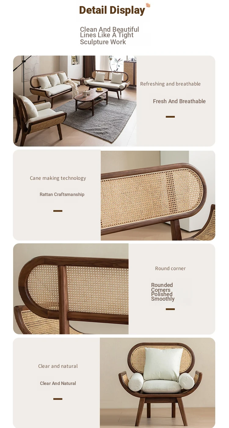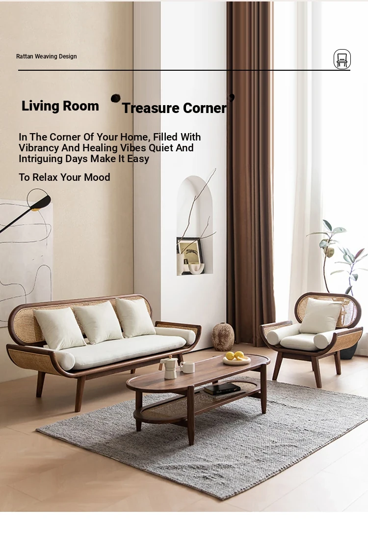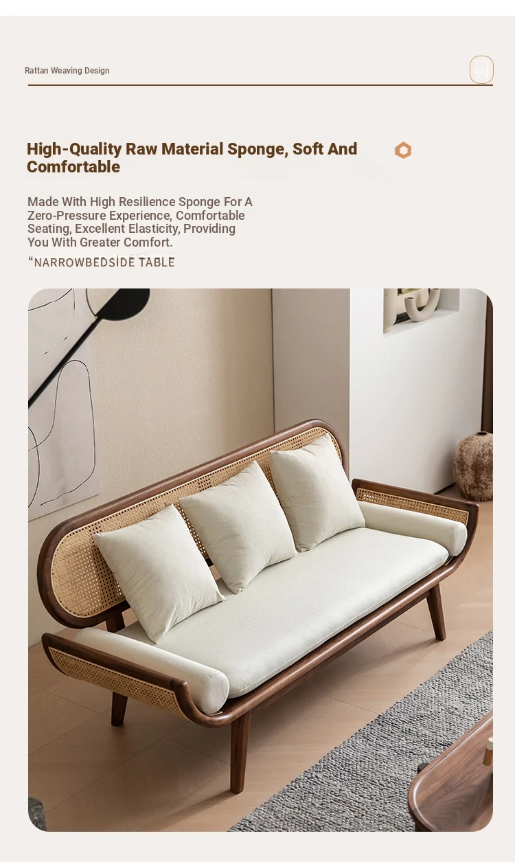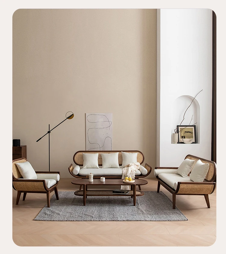 Nordic Minimalist Rattan Sofa - Solid Wood Single & Double Seat, Fabric & Linen Couch, Perfect for Small Spaces, Cozy Recliner Chair