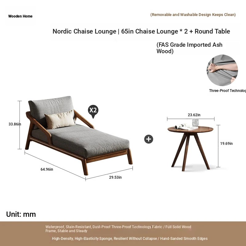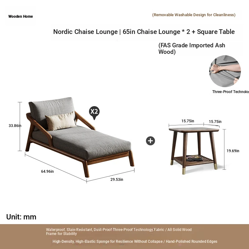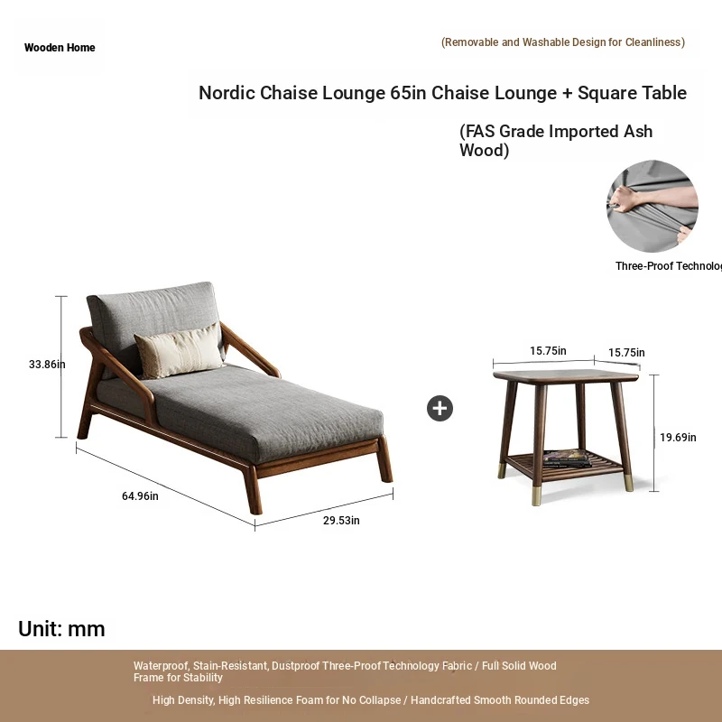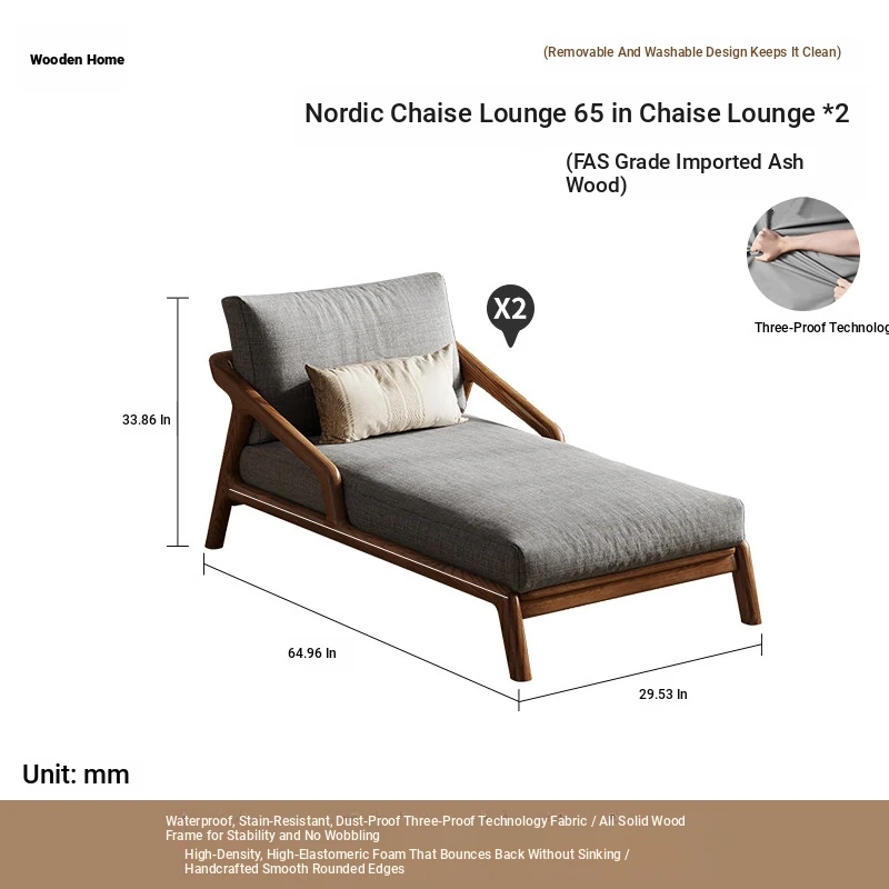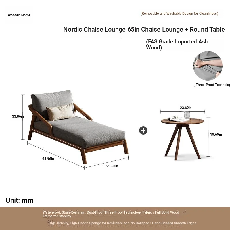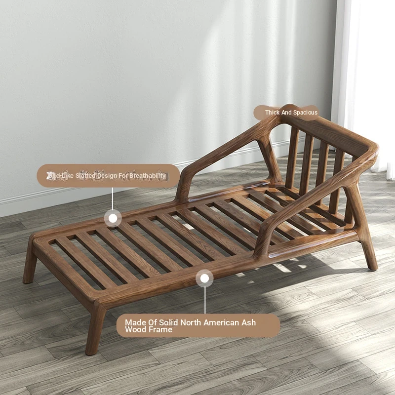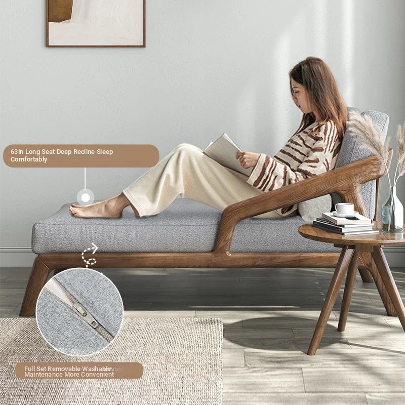 Nordic Solid Wood Chaise Lounge Chair - Comfortable Single Sofa for Home, Balcony & Bedroom, Perfect for Relaxation and Napping for Adults