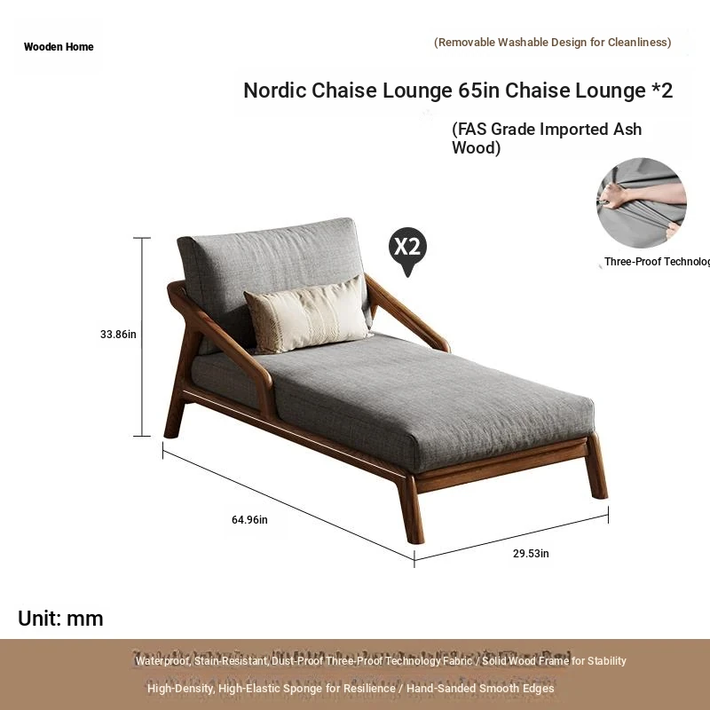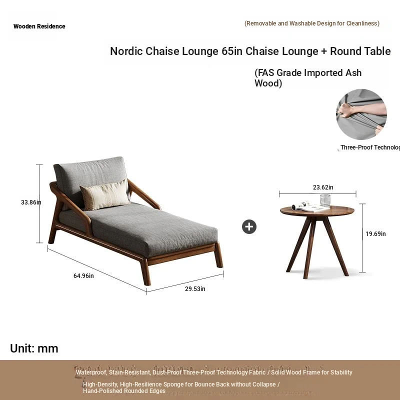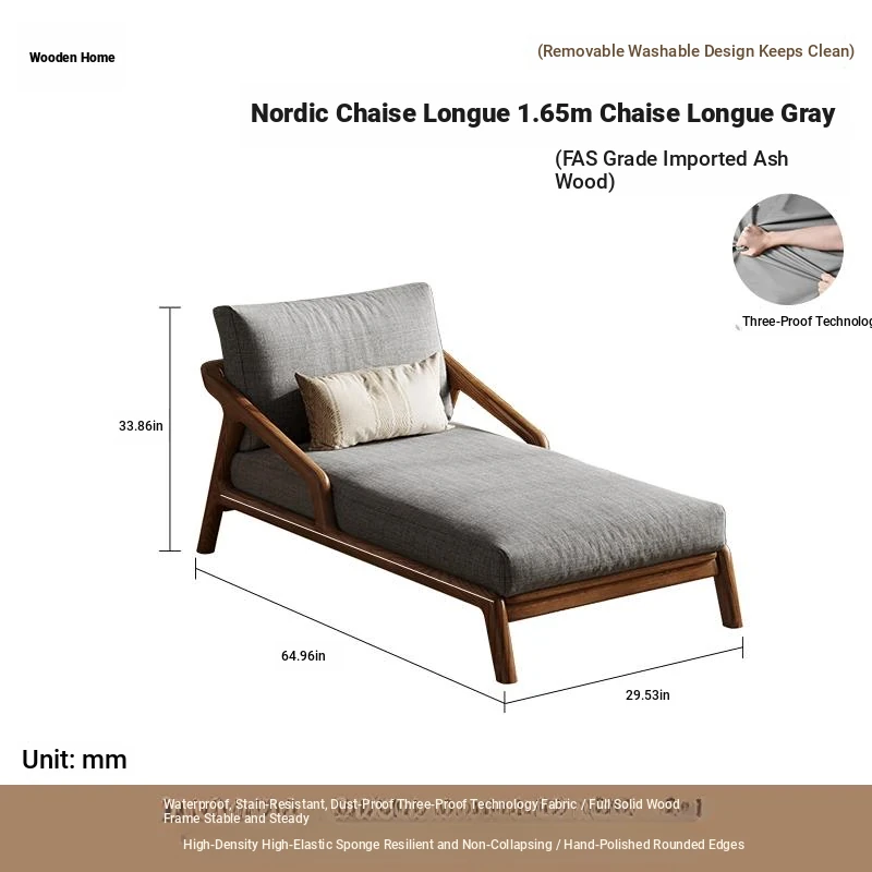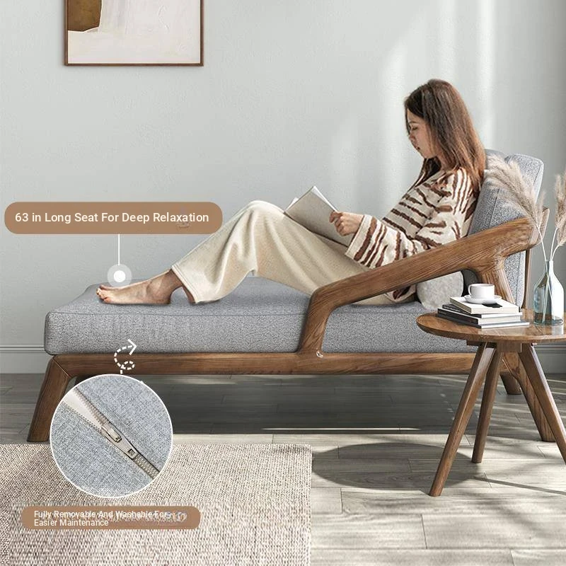 Nordic Solid Wood Chaise Lounge Chair - Stylish Single Sofa for Balcony, Home, and Bedroom | Comfortable Recliner for Adults - Perfect for Relaxation and Afternoon Naps