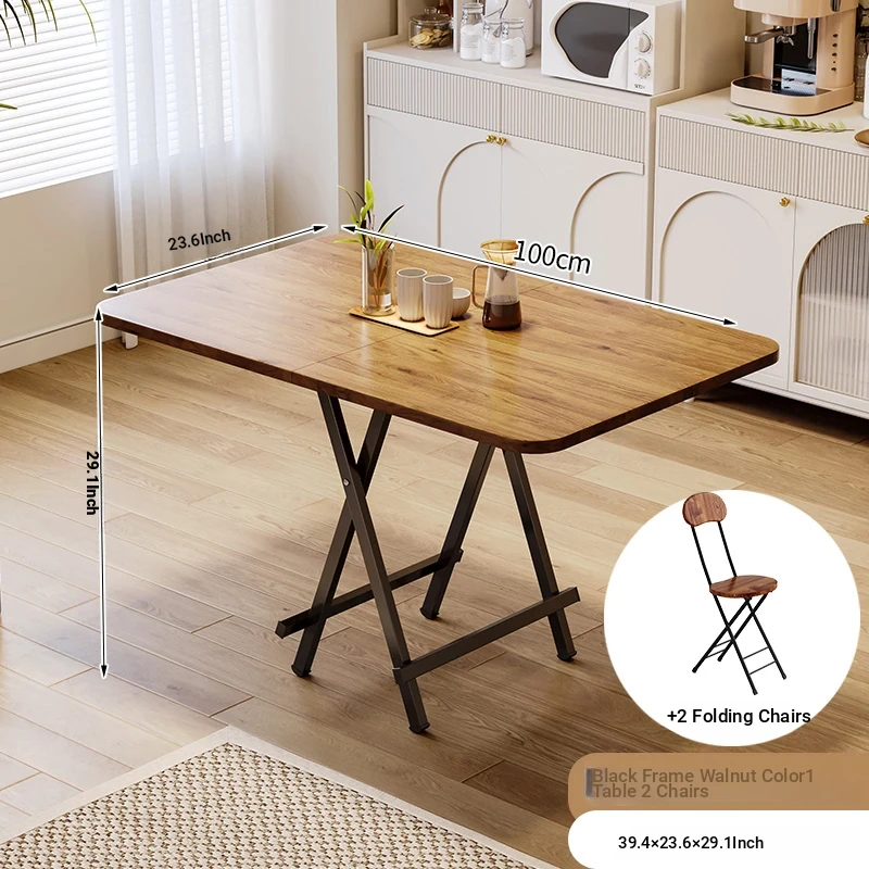 [Open and Use] 100*60 Walnut +2 folding chairs(Quick In Stock)