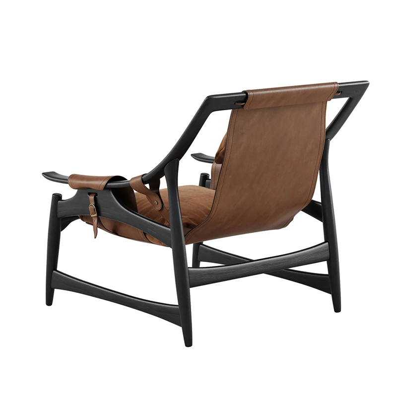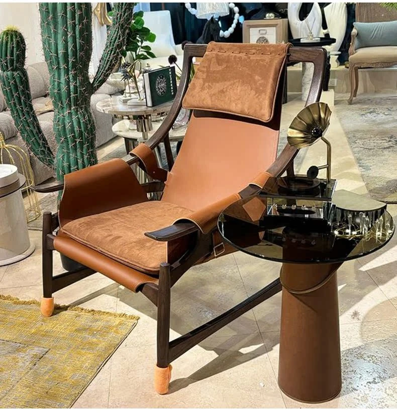 Retro Hunting Sofa Chair - Nordic Designer Single Solid Ash Wood Recliner - Stylish and Comfortable Lounge Chair for Home and Balcony Relaxation