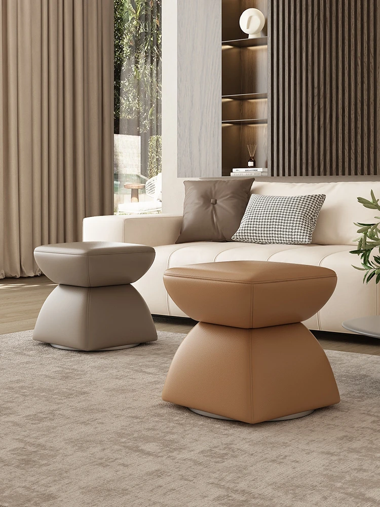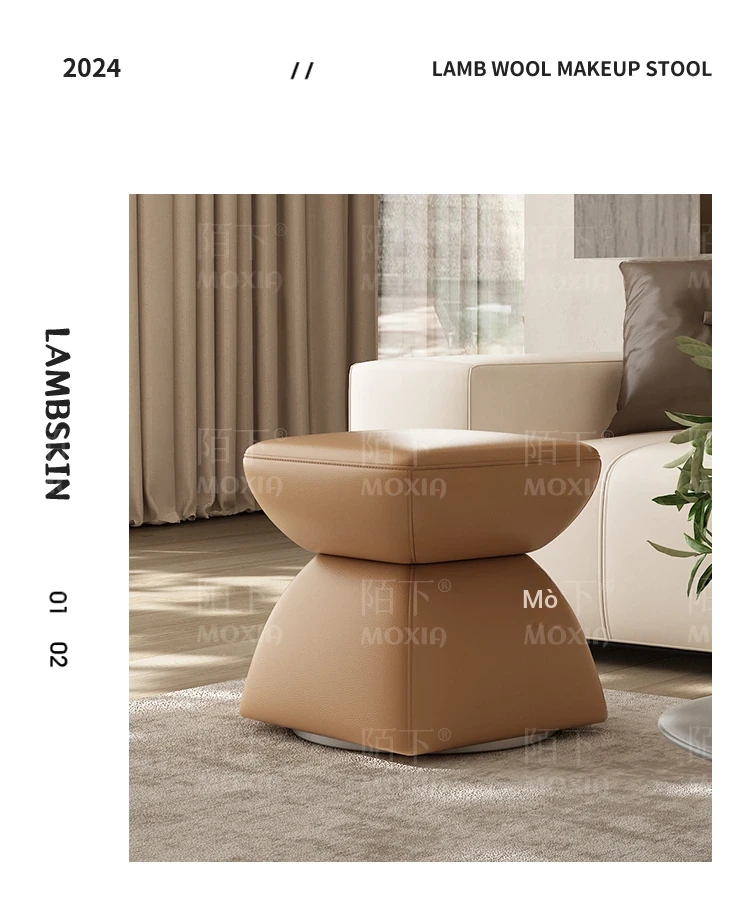 Rotating Makeup Stool - Elegant Vanity Chair for Bedroom and Living Room, Luxurious Leather Pouf for a Chic Touch