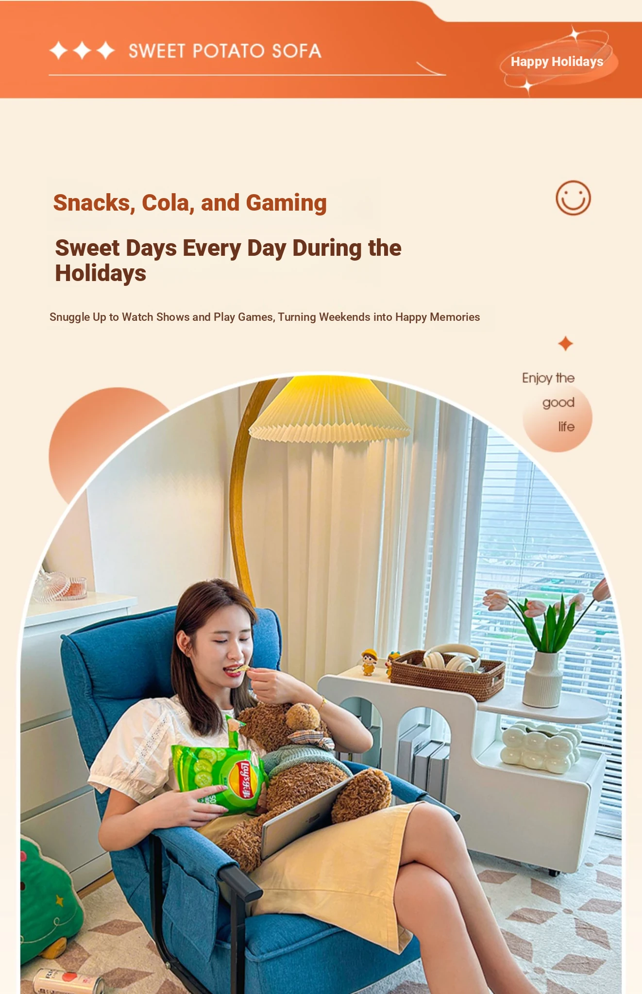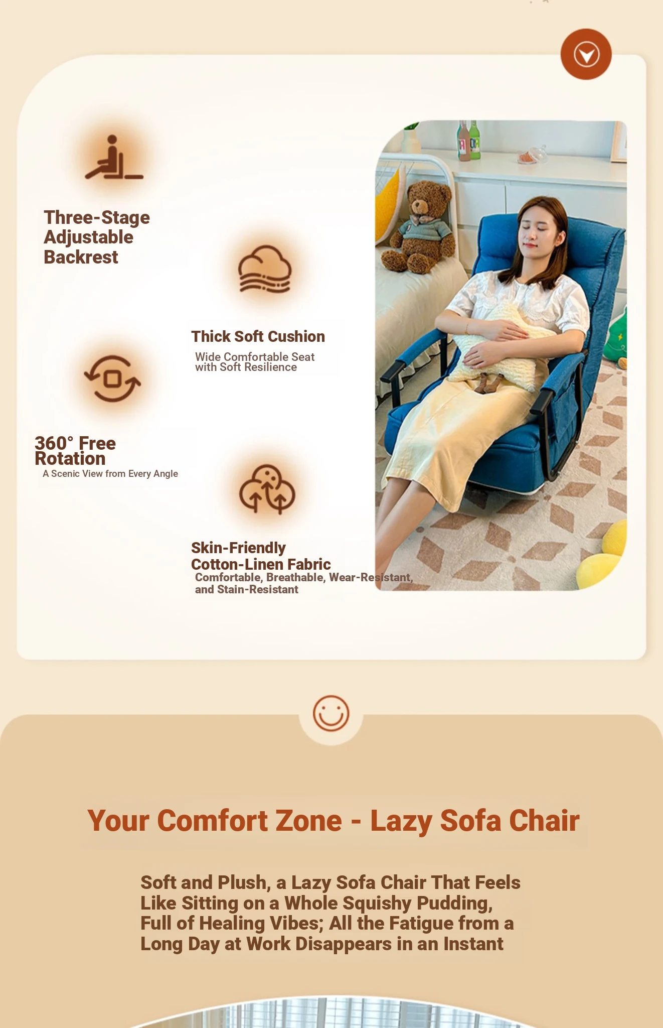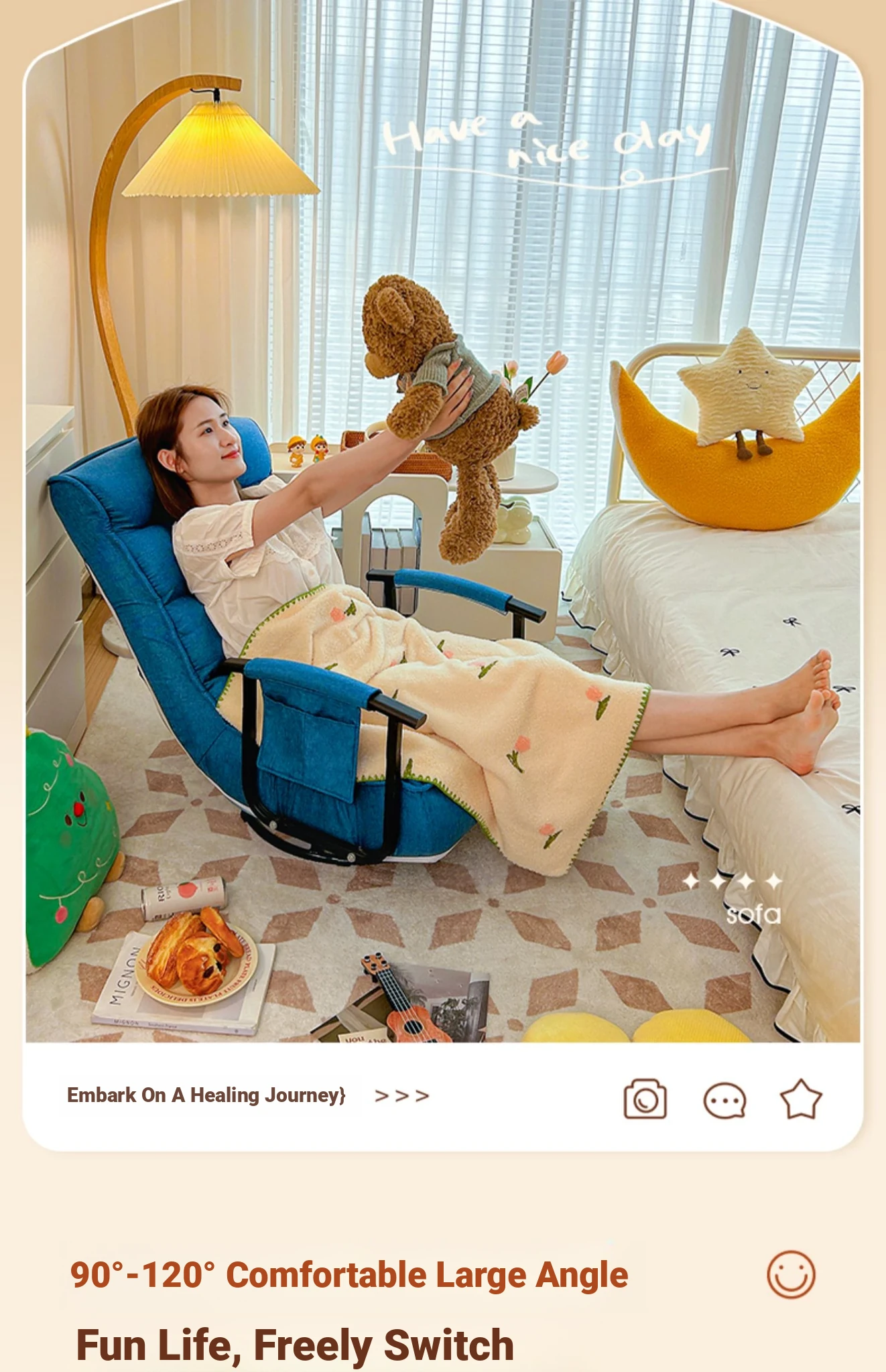 Ruisida Lazy Sofa - Versatile Reclining Armchair for Home, Bedroom, and Balcony. Perfect for Relaxation, Sleeping, and Leisure Time. Stylish, Space-Saving Design for Ultimate Comfort.