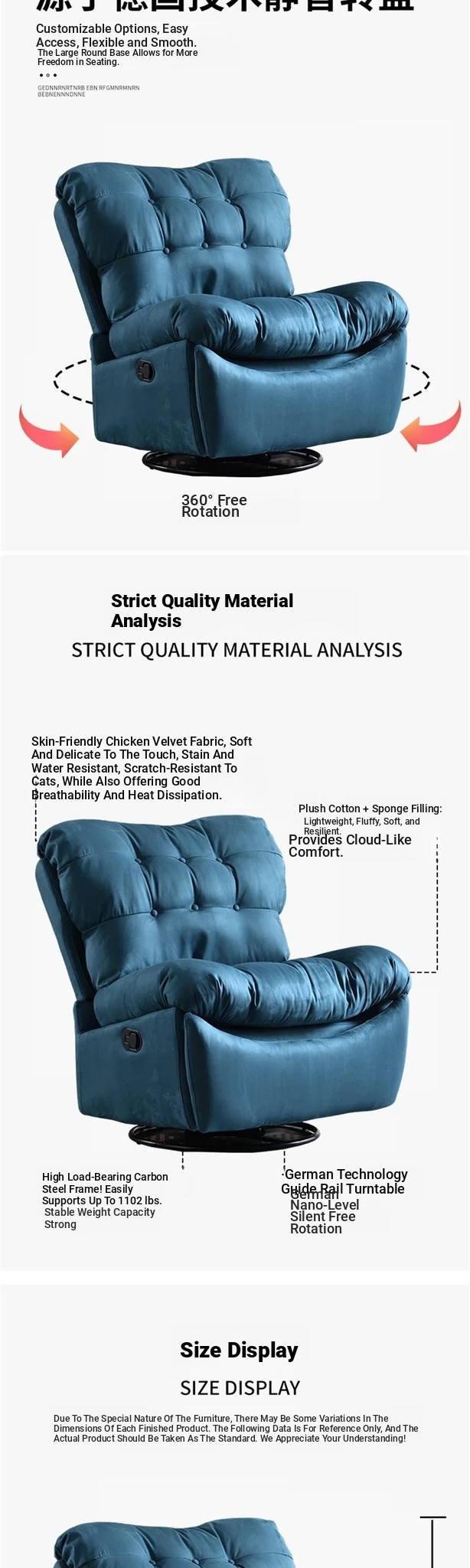 Blue deerskin velvet fabric/manual footrest
