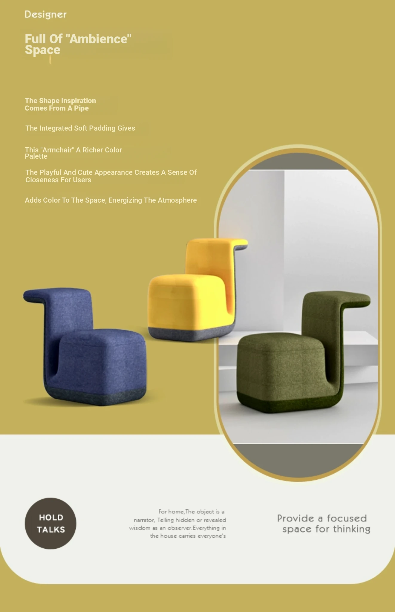 Stylish Single Sofa Chair for Home Use - Trendy Lazy Design, Perfect for Relaxation and Reception Areas, Creative Pipe-Inspired Ottoman