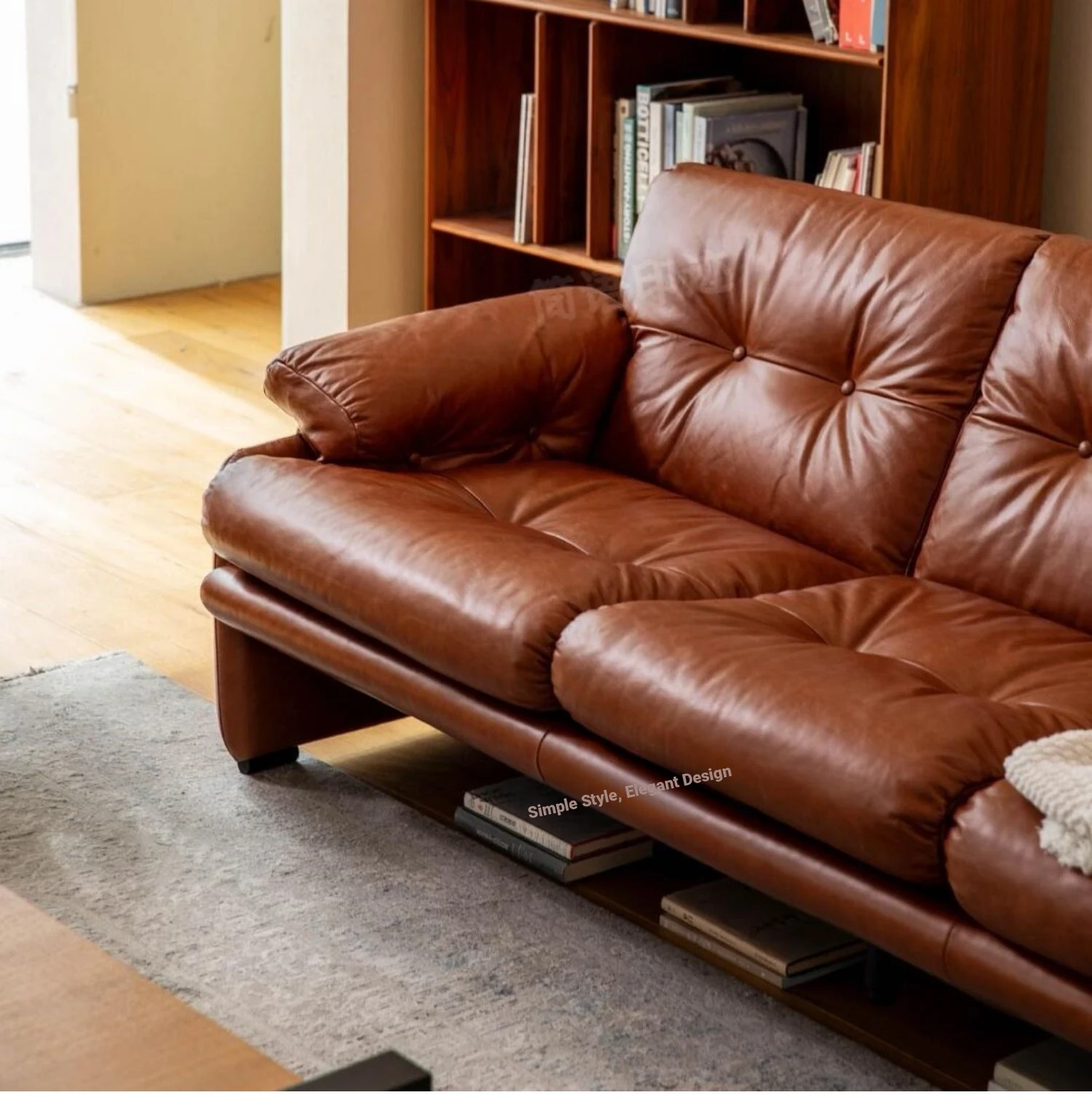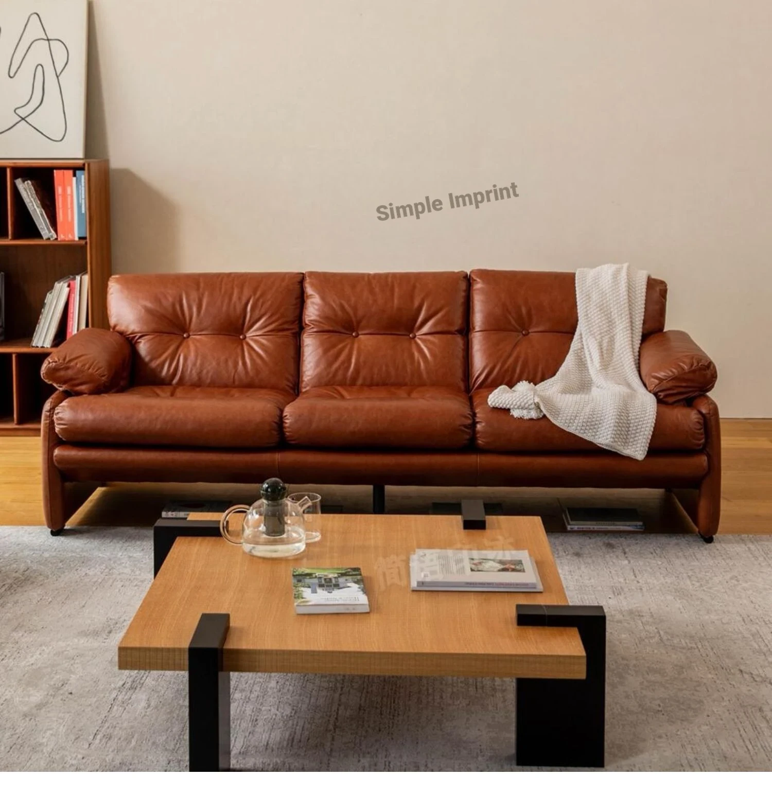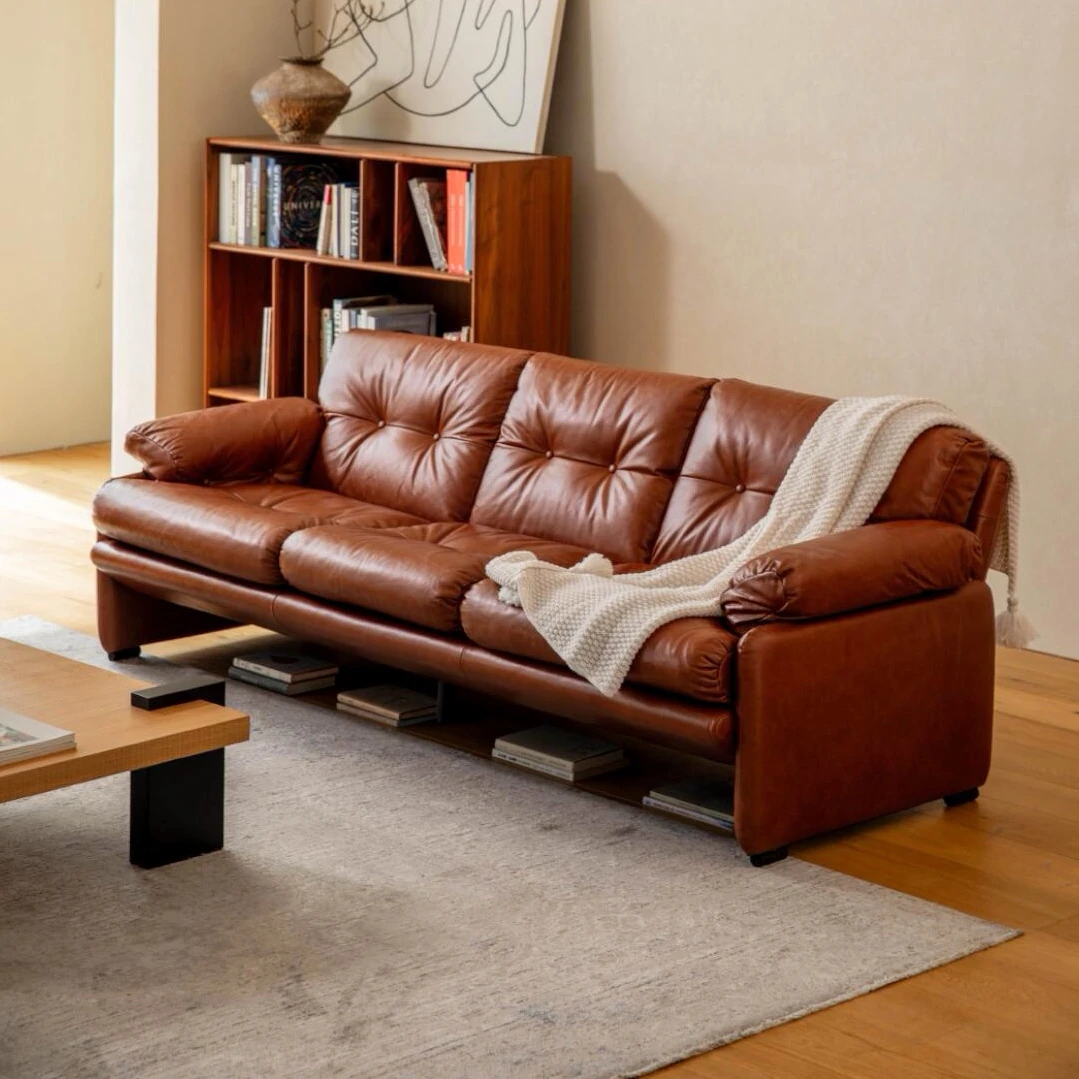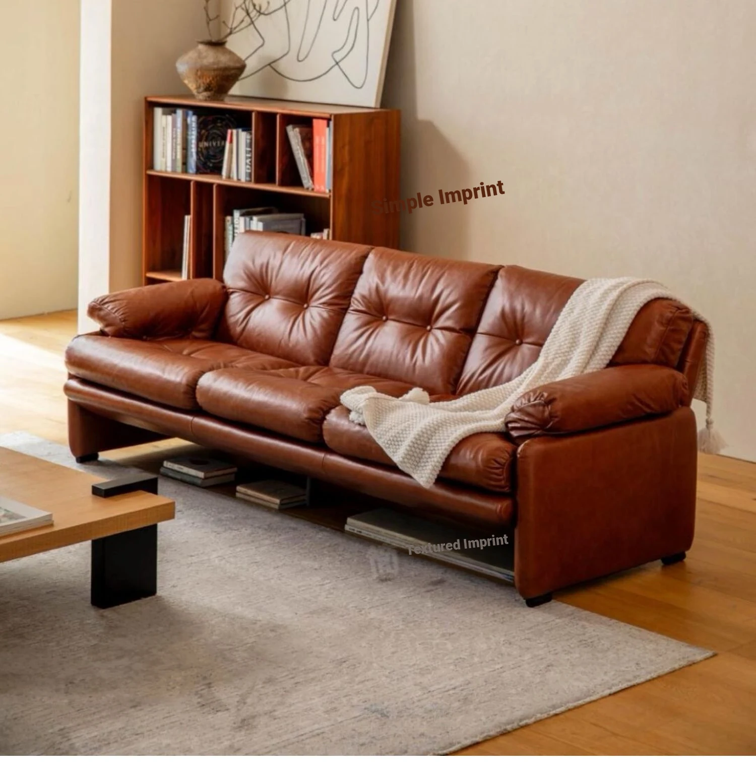 Vintage Retro Genuine Leather Sofa - 2025 New Arrival, High-End Three-Seat Design, Made with Top Grain Cowhide, Perfect for Your Living Room!