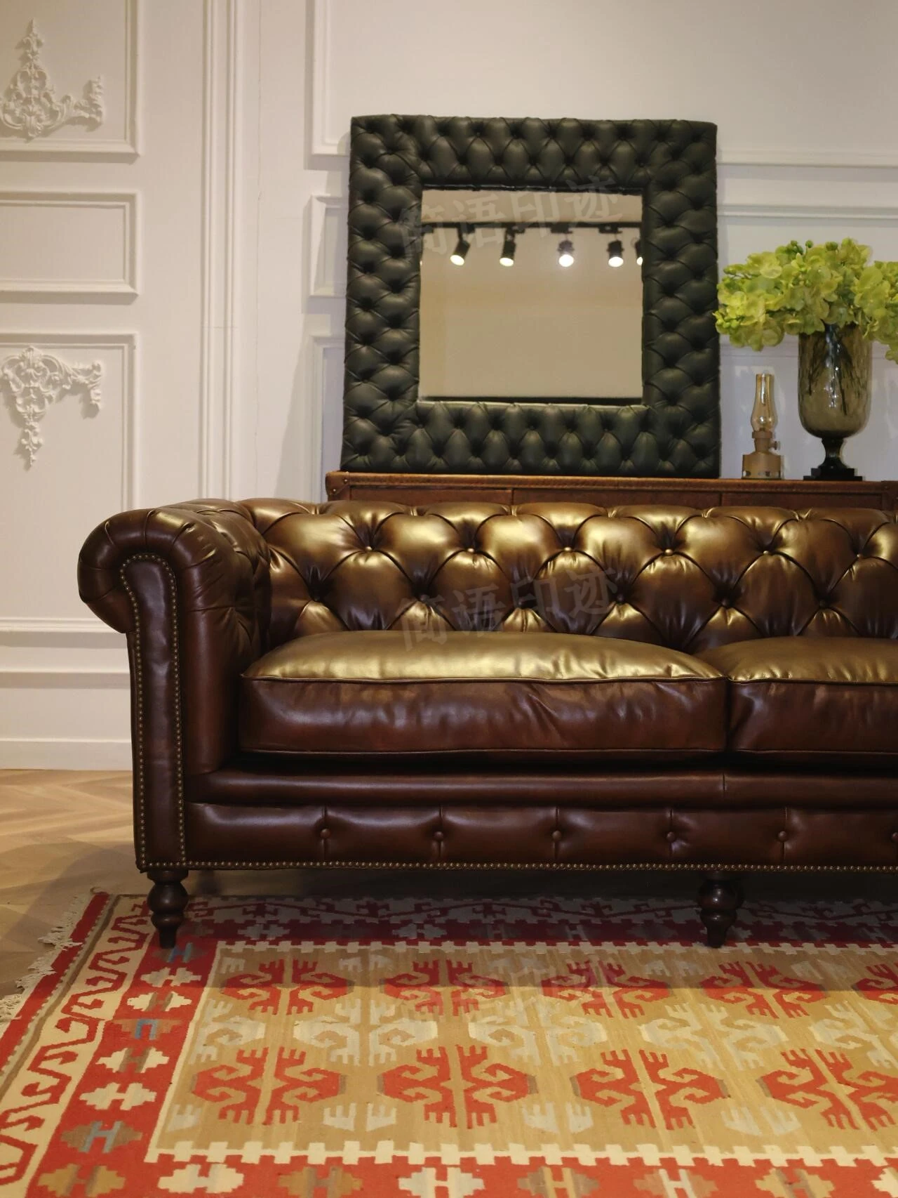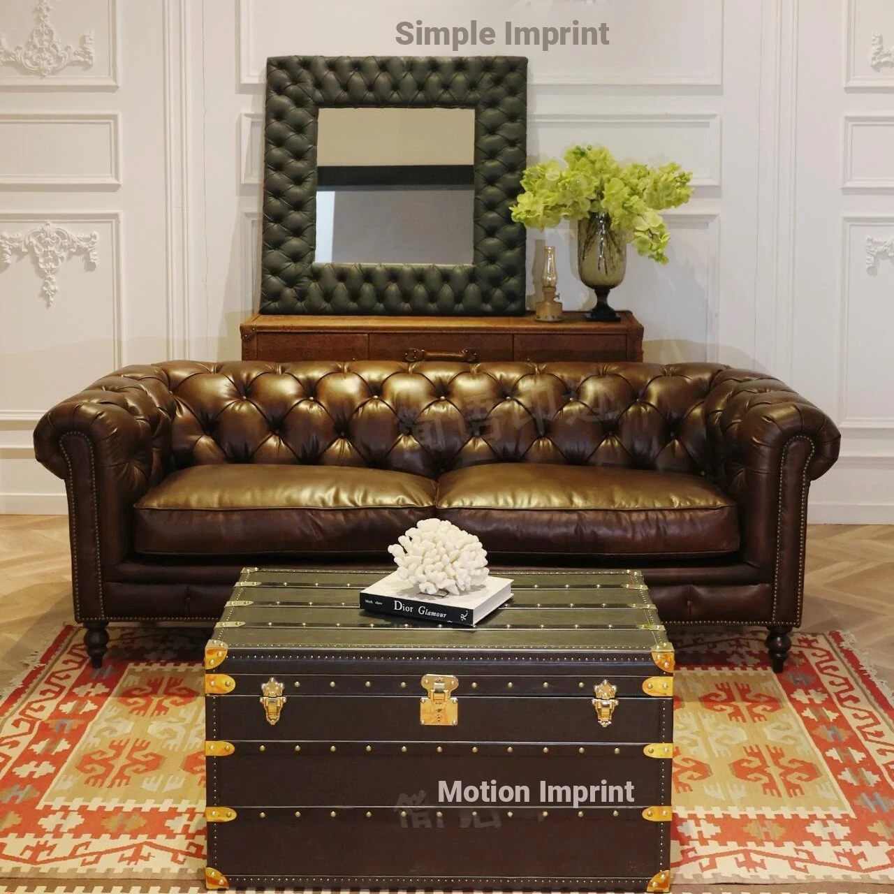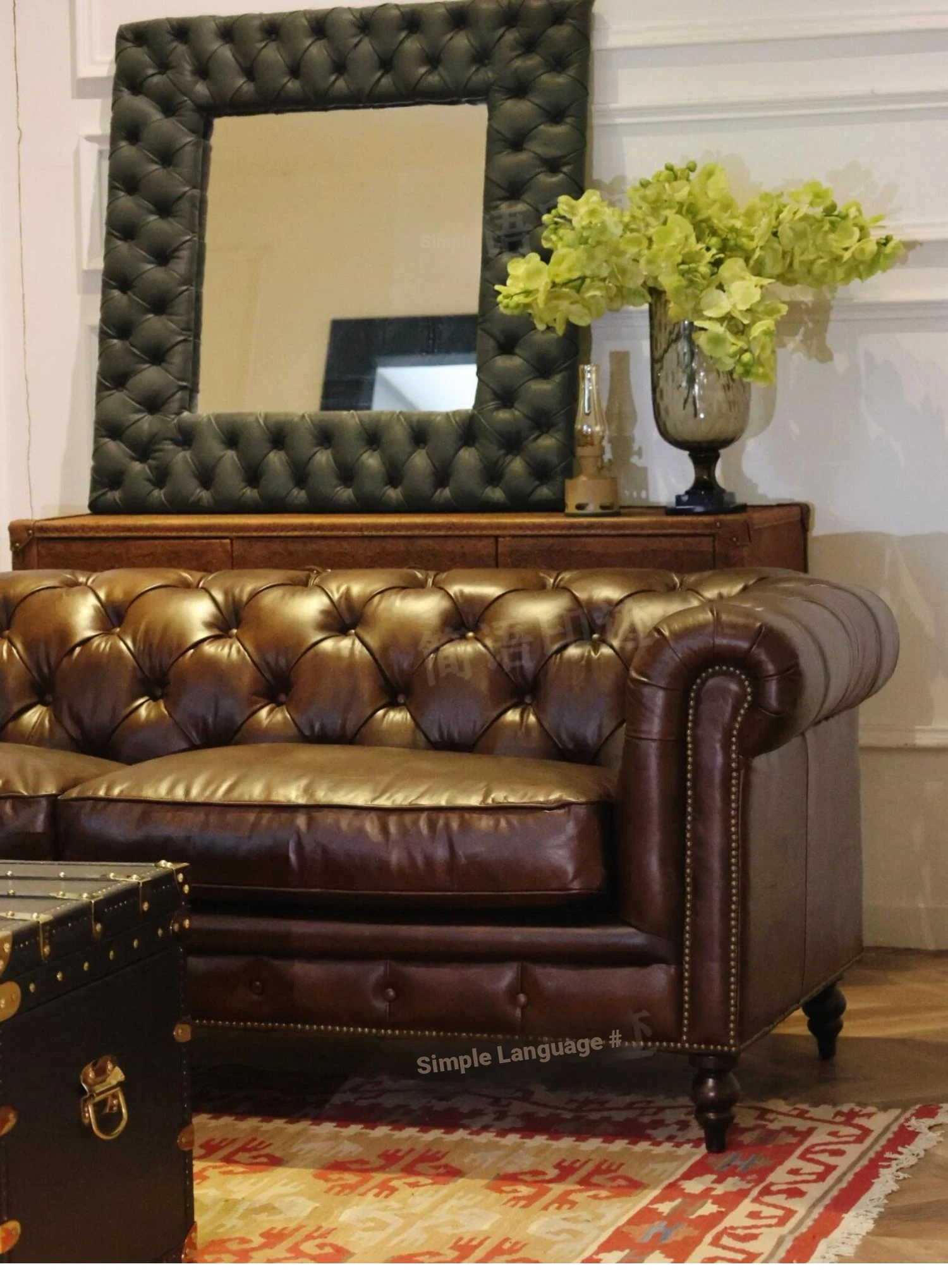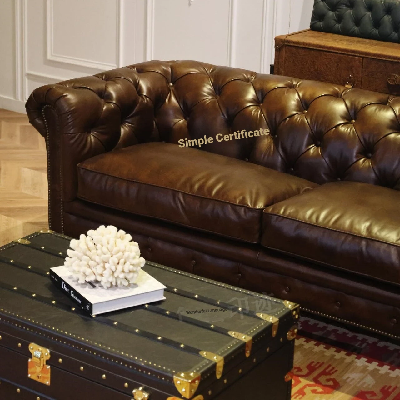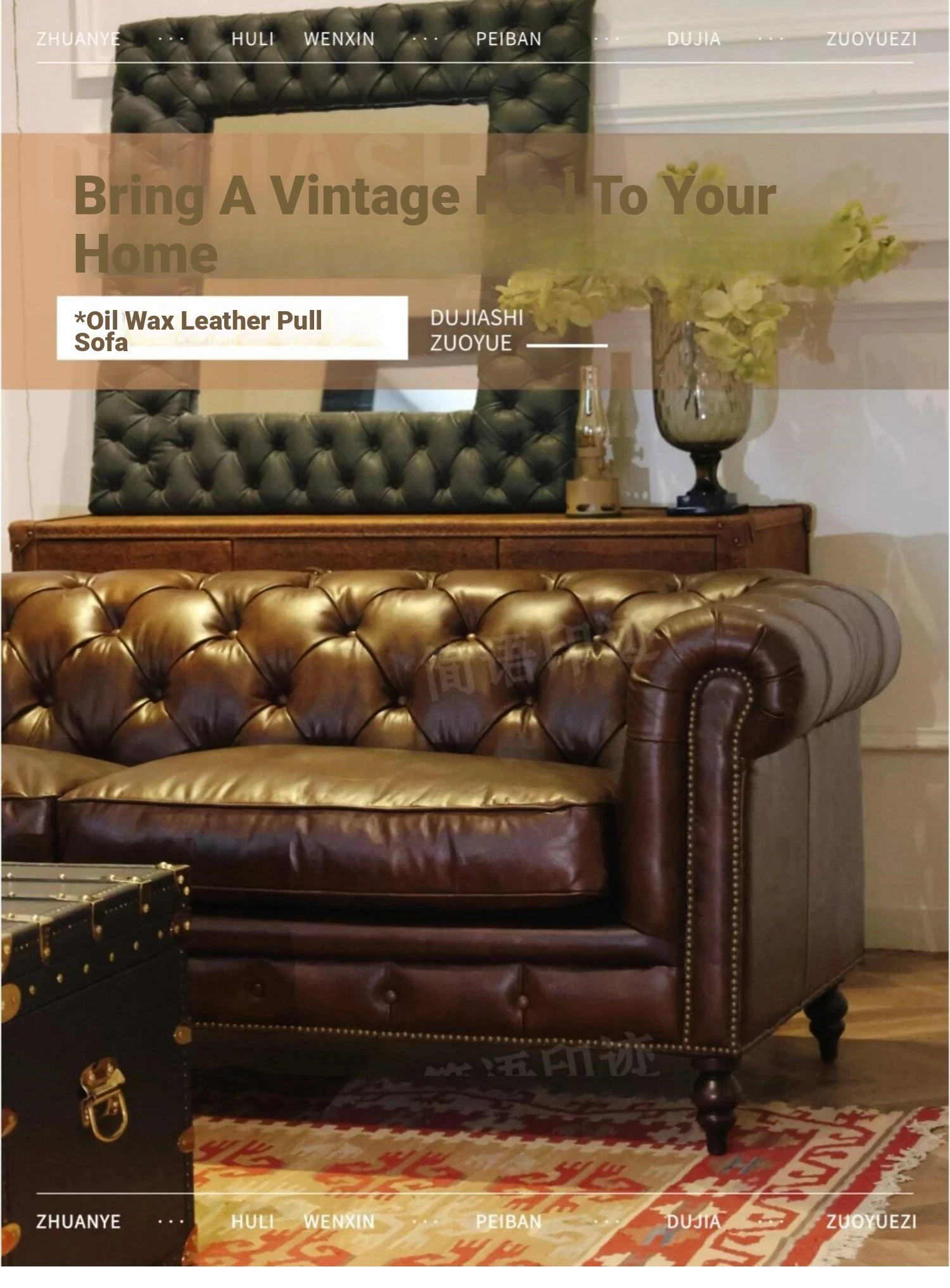 Vintage-Inspired American Luxury Leather Sofa - Classic Retro Waxed Leather Cigar Bar Sofa for Your Living Room