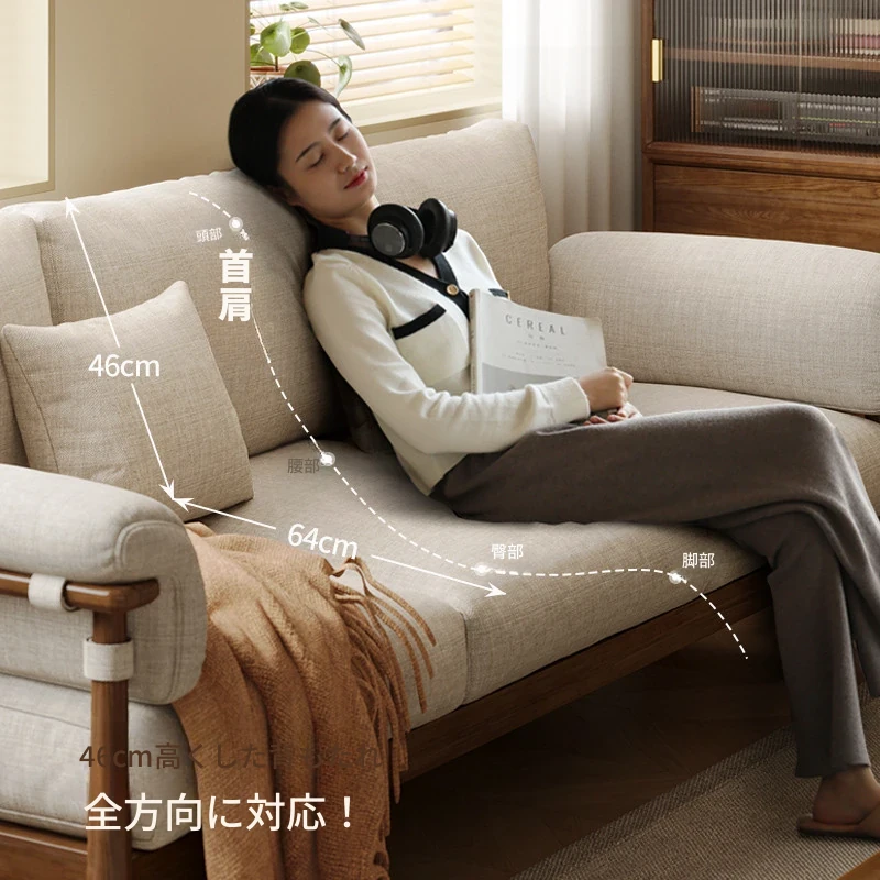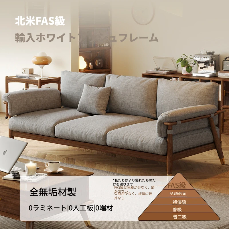 新型2024年発売!本格的な無垢材ソファー、シンプルなデザインの中華スタイル。テクノロジー布使用、ホワイトアッシュウッド製、コンパクトなリビング向けの組み合わせ。おしゃれで機能的な小型住宅にぴったり!