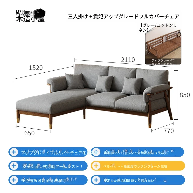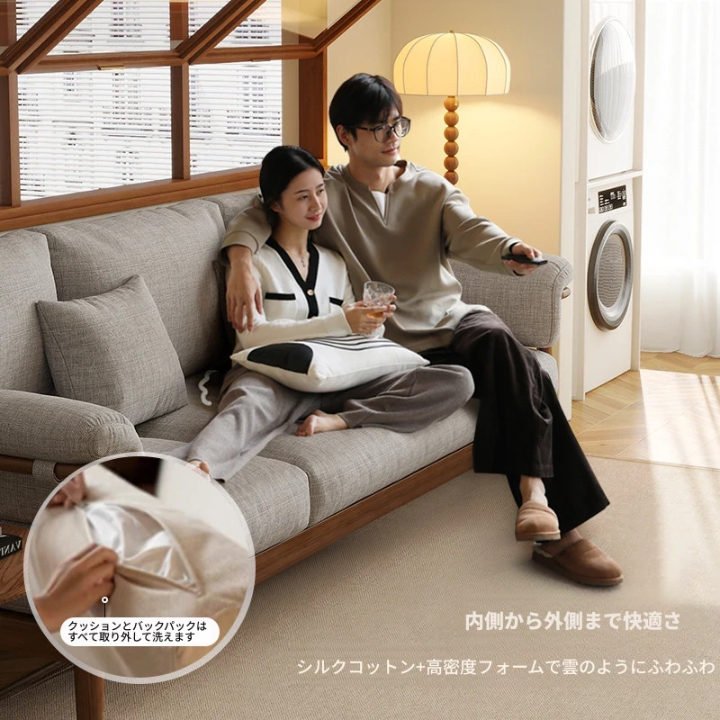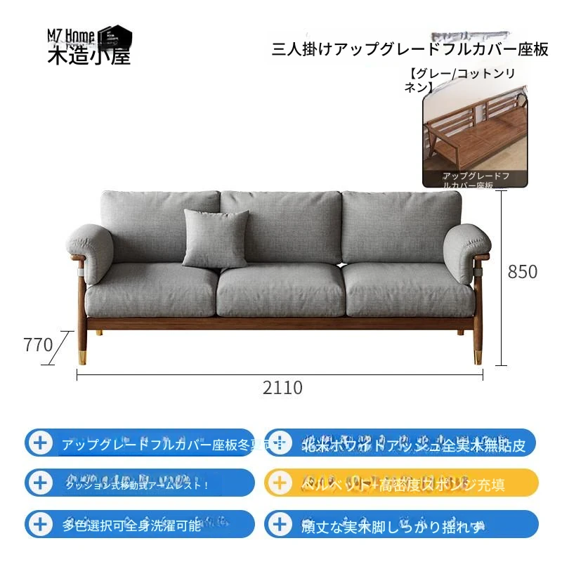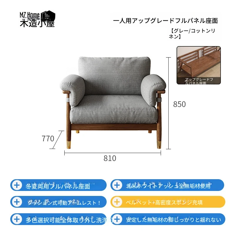 輸入ホワイトアッシュ材 三人用(コットンリネン/グレー)★アップグレード全面座板 冬夏両用必須