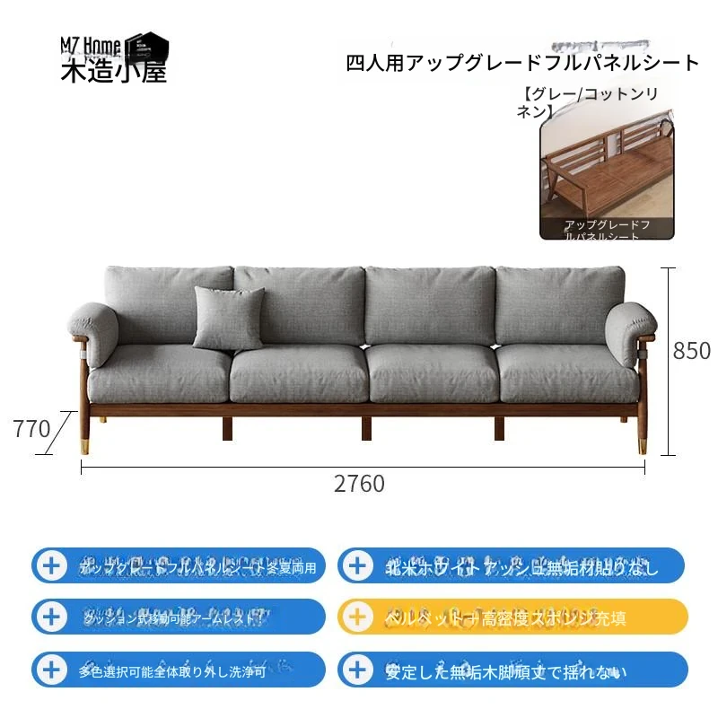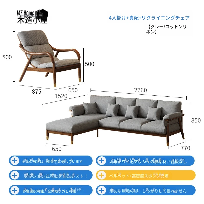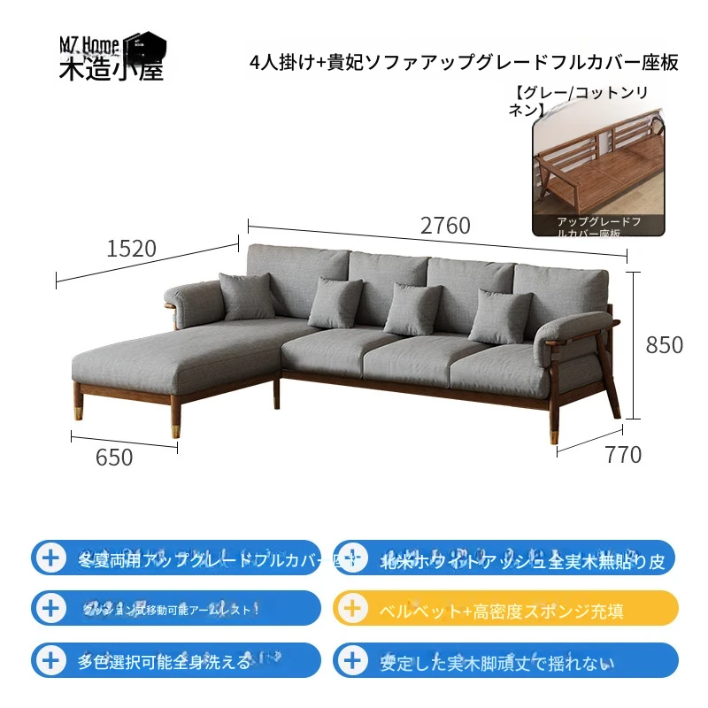 輸入ホワイトアッシュ材 四人用(コットンリネン/グレー)★アップグレード全面座板 冬夏両用必須