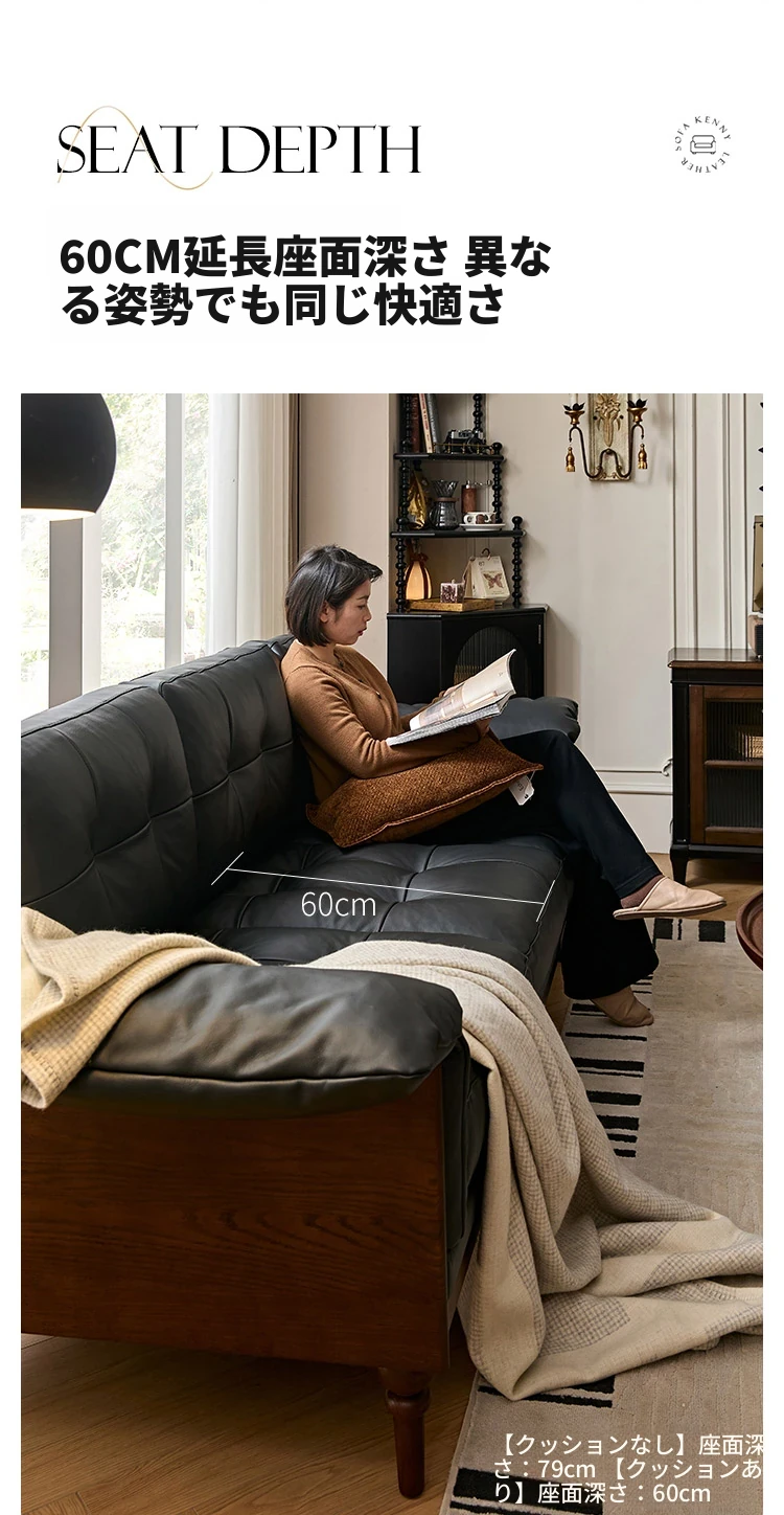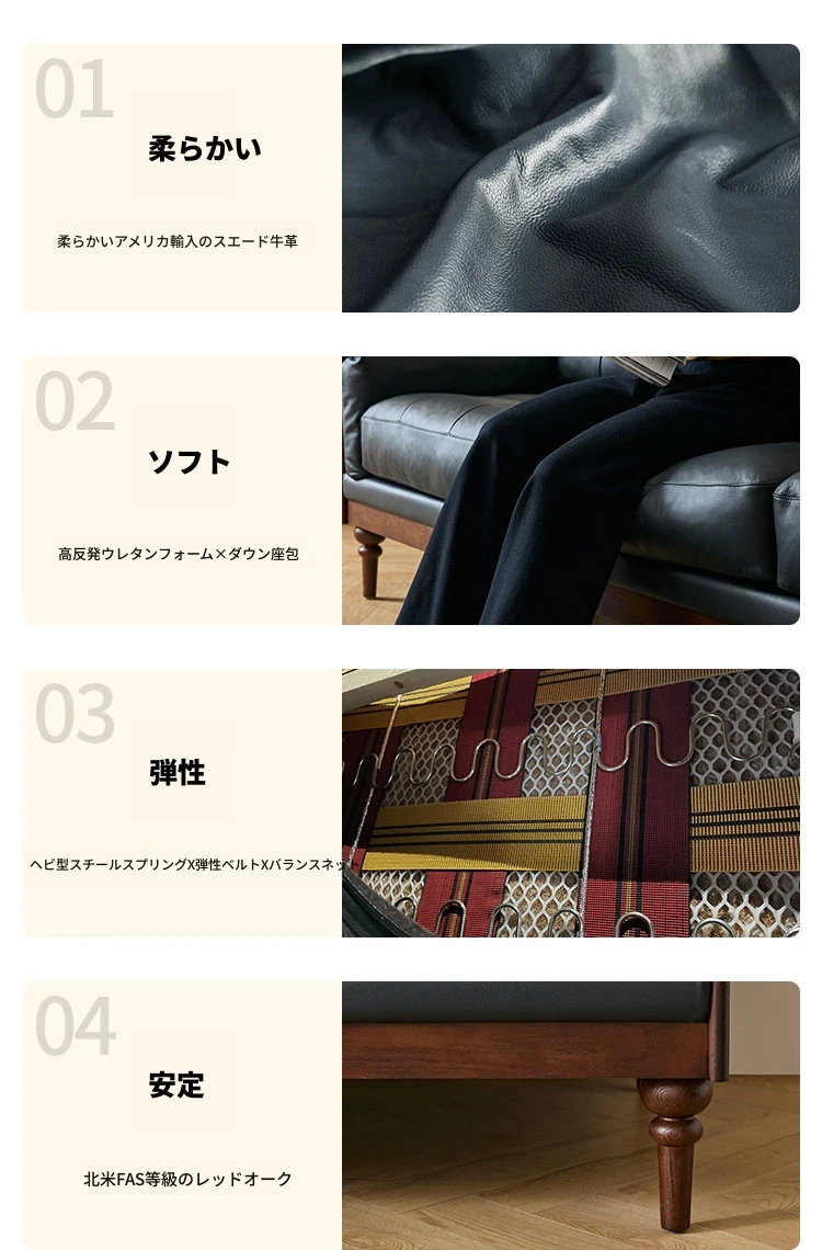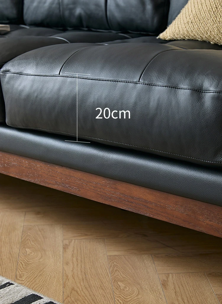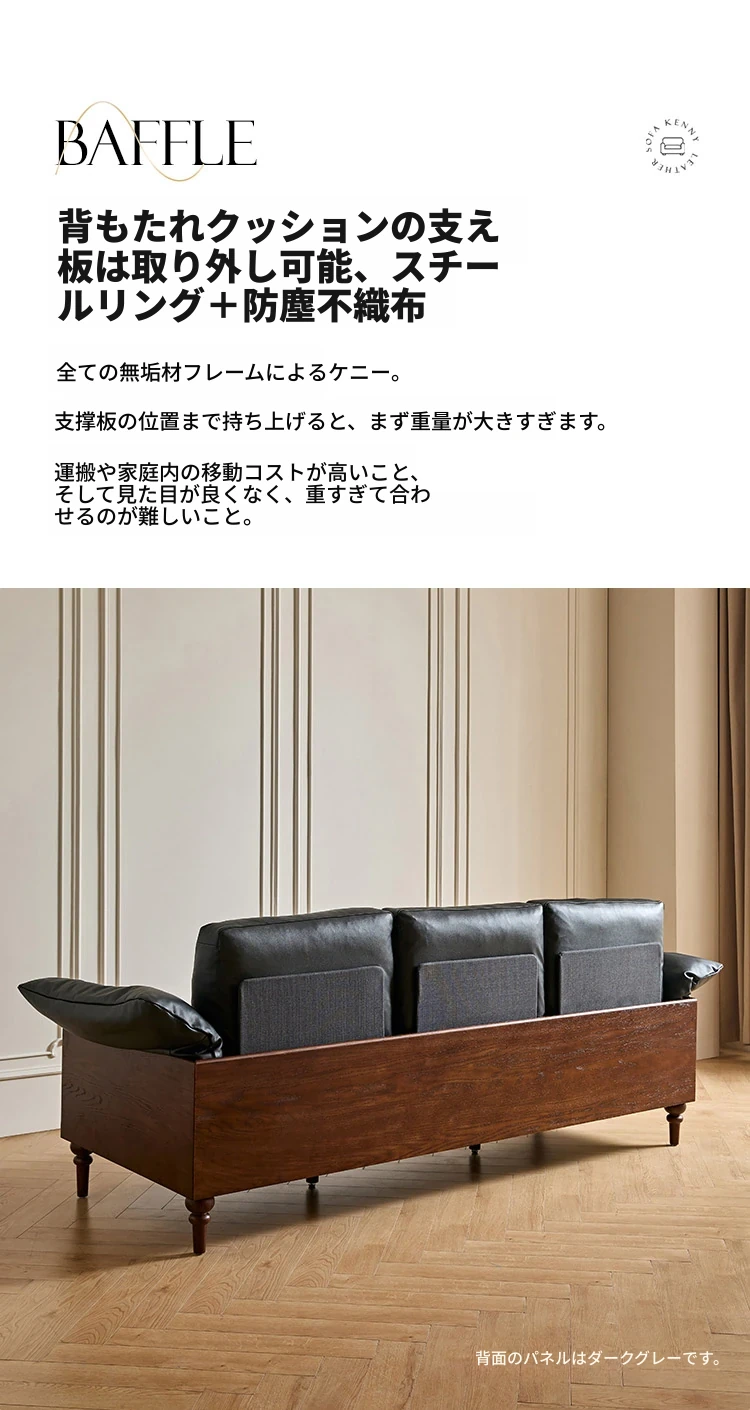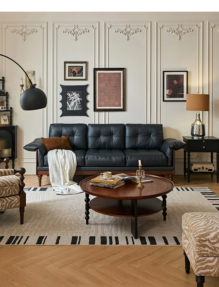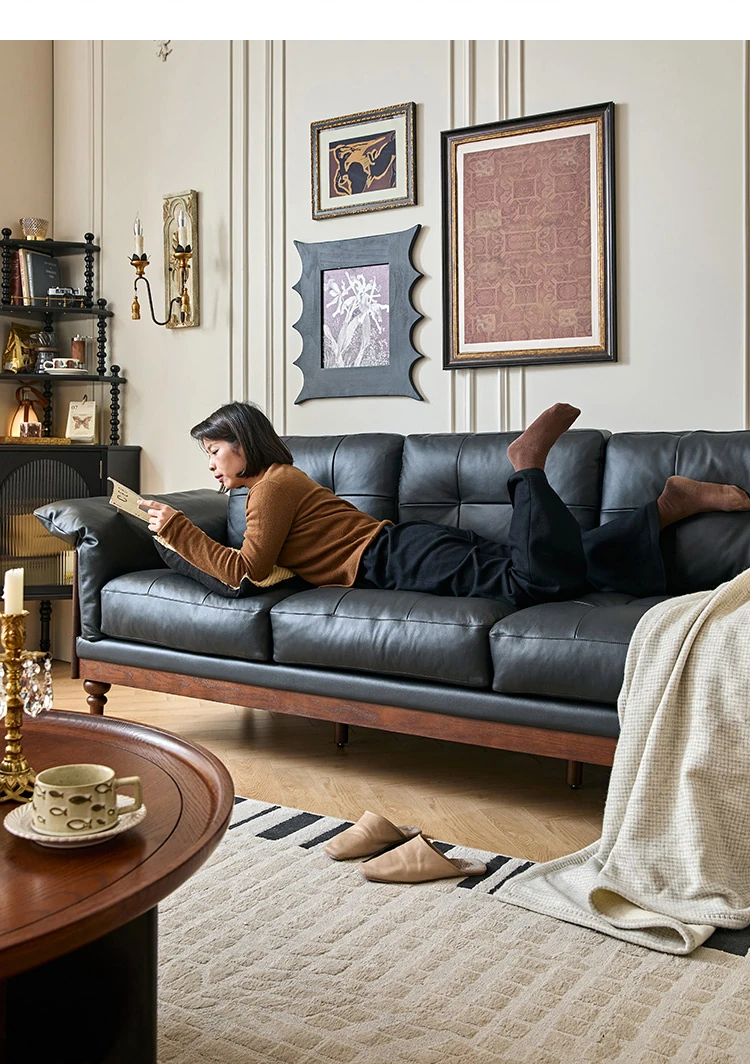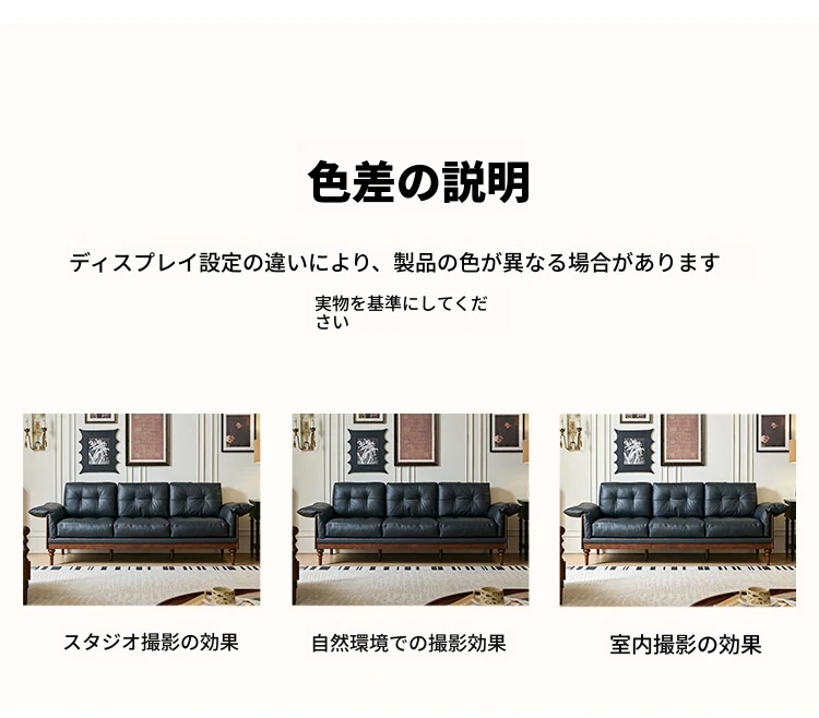 2025年新作!アメリカンスタイルの軽奢華全皮ブラックリアルウッドソファ。リビングルームにぴったりなリラックス三人掛け、最高級のトップグレインレザー使用。贅沢な空間を演出します!