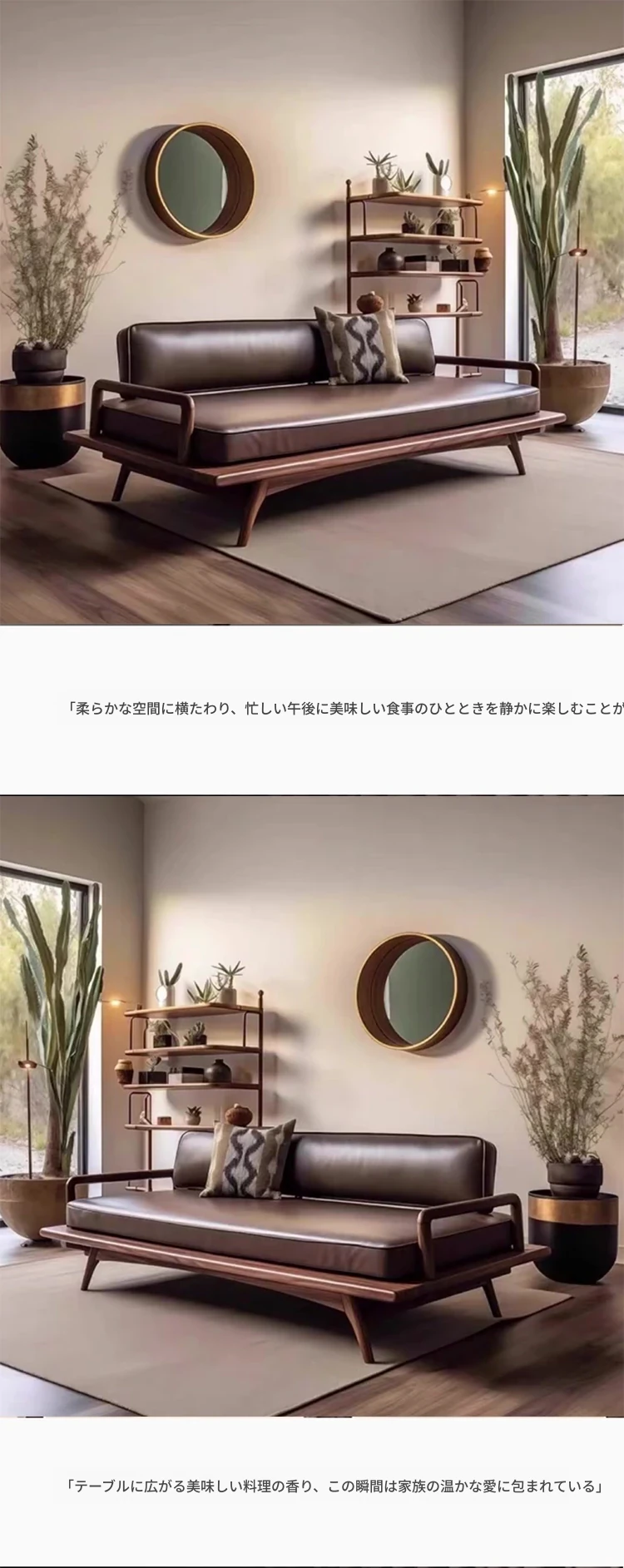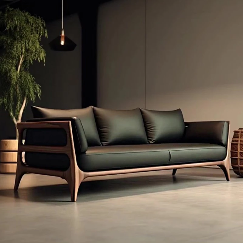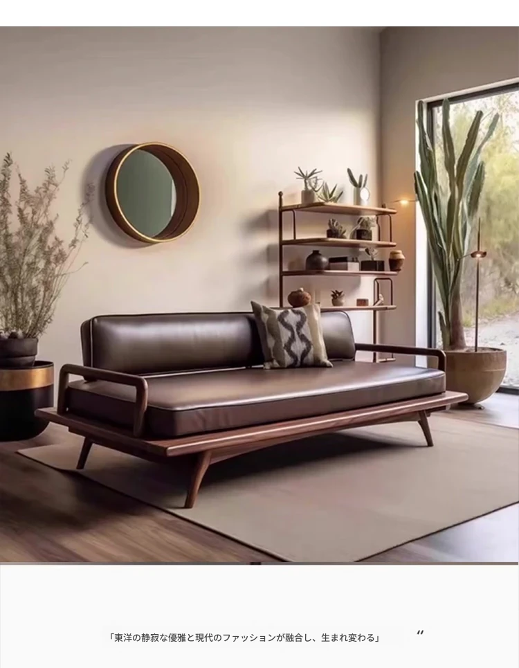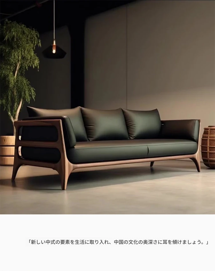 新しい中式デザインの北米産ブラックウォールナット無垢材ソファ 2025年新作 高級感漂うリビング用ラグジュアリー本革ソファ