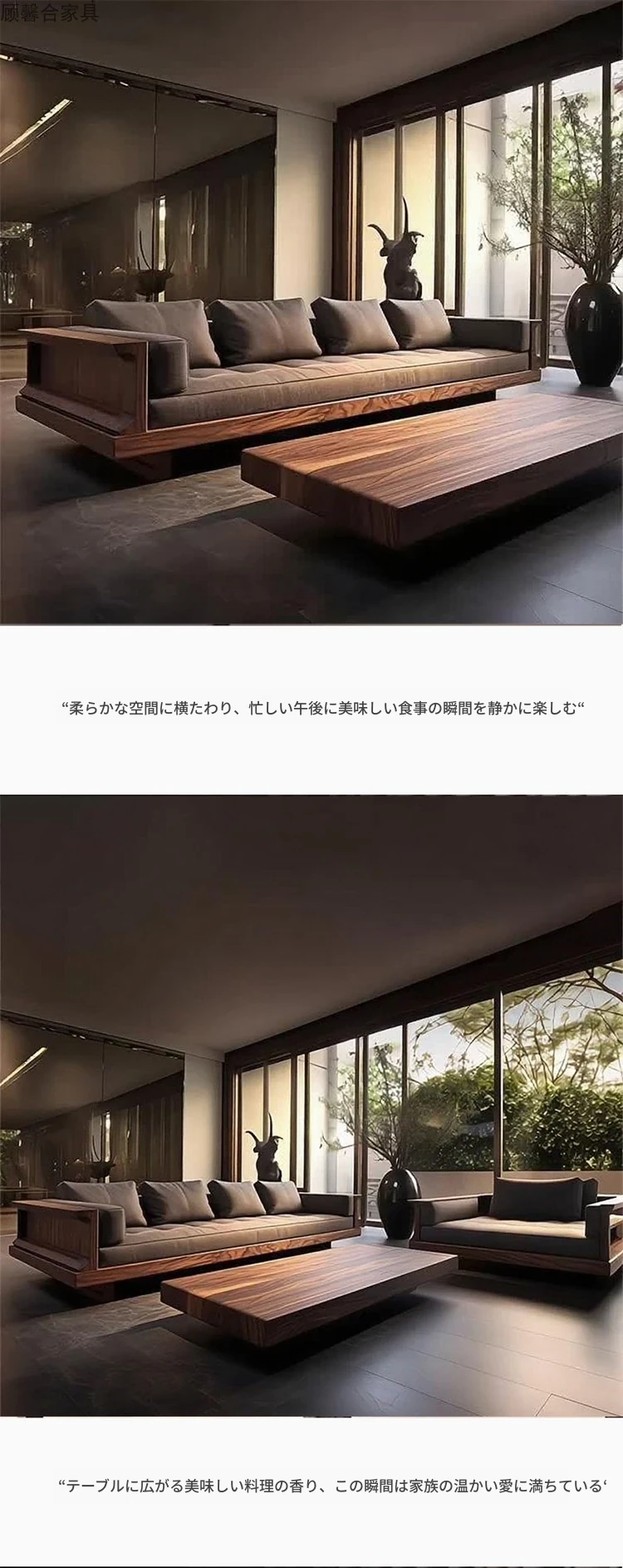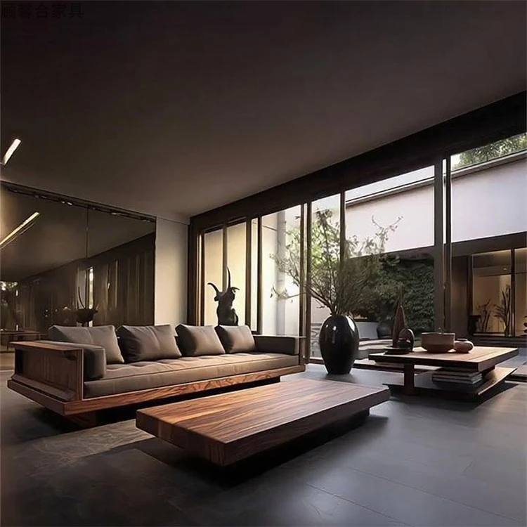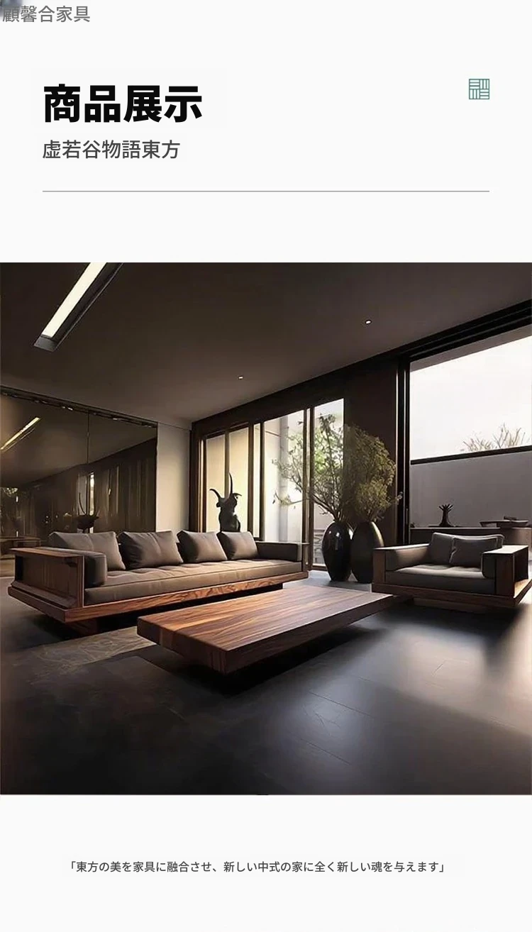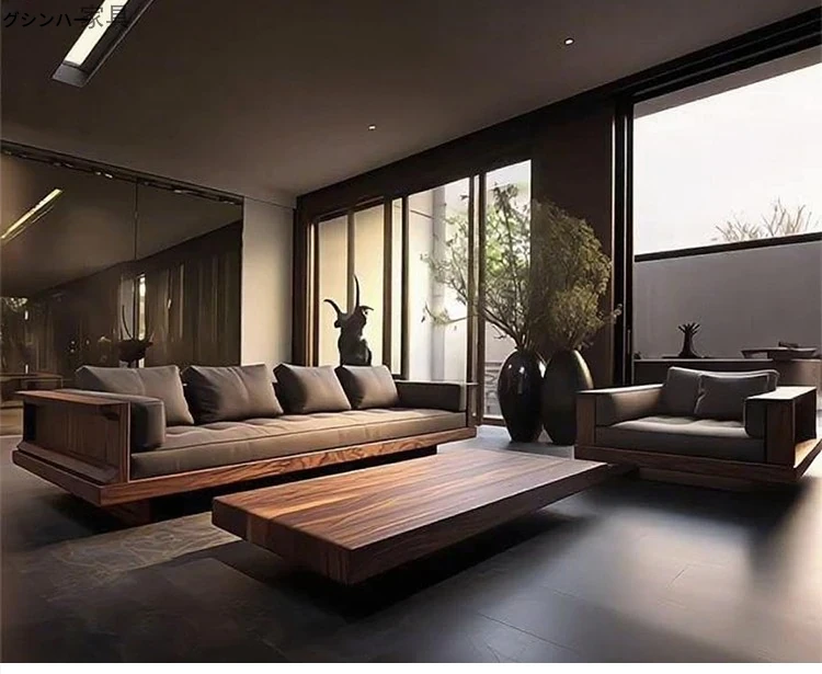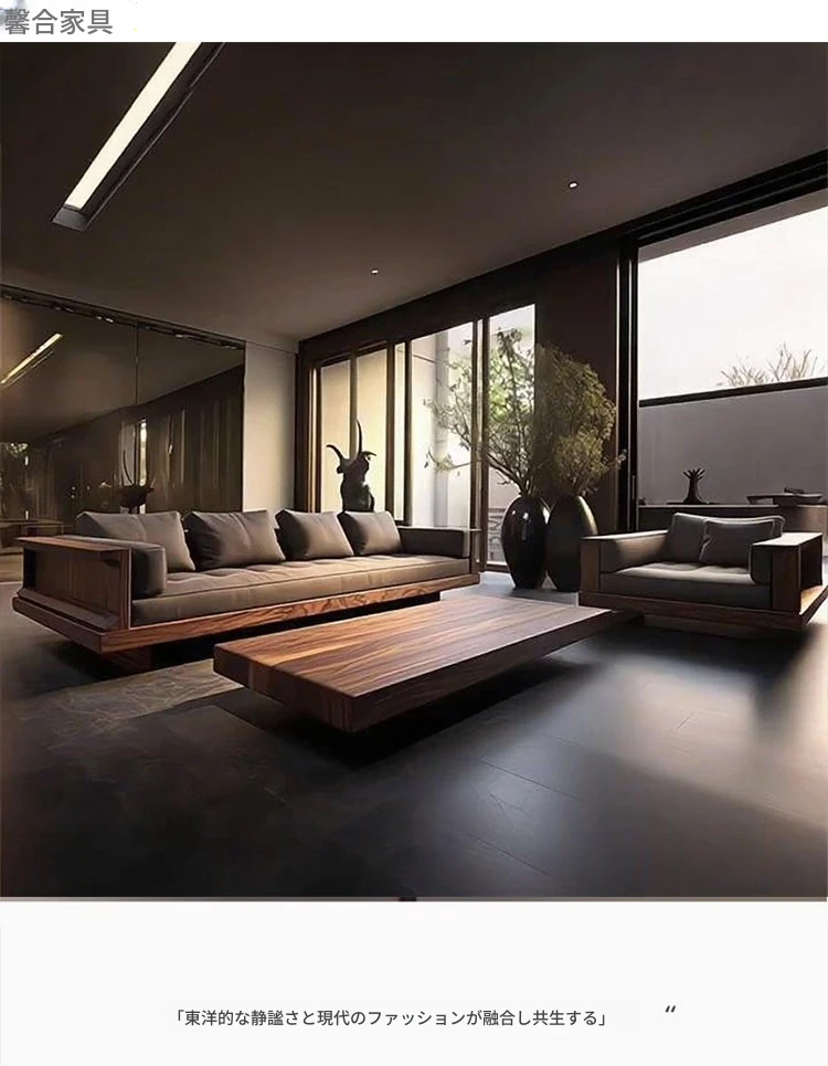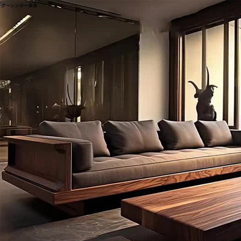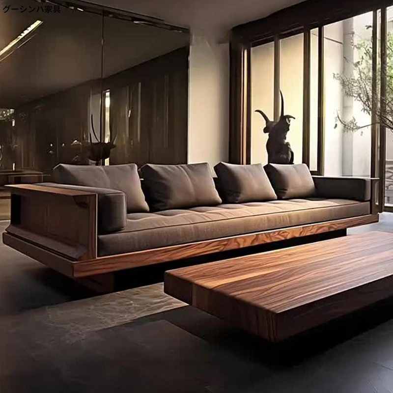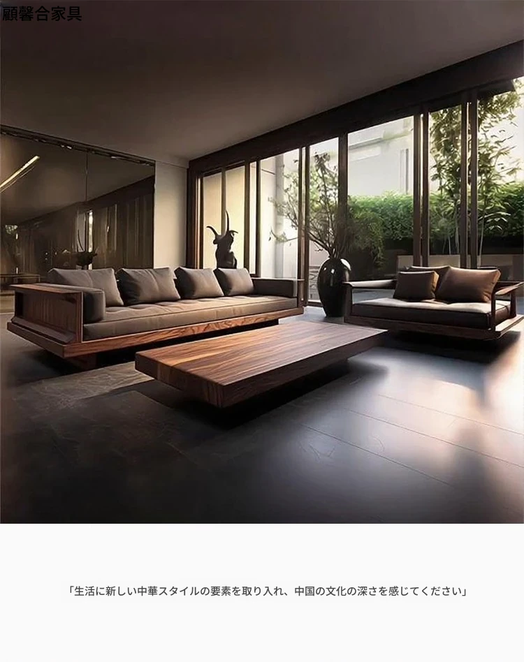 2025年新作!現代シンプルリビングソファ - 高級感あふれる北米産ウォールナット無垢材使用、直線デザインでスタイリッシュな空間を演出!おしゃれなインテリアに最適!