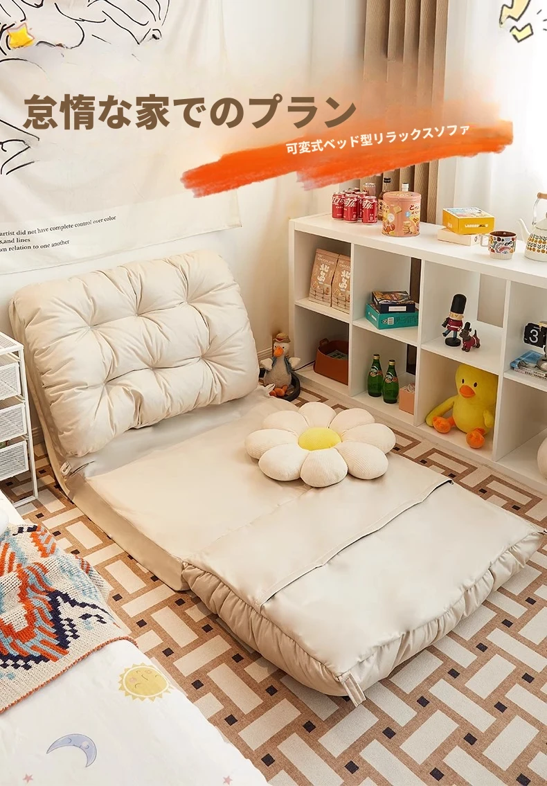 2025年新作!リラックスできるソファベッド、畳スタイルの小型ソファ。寝室やリビングに最適な家庭用!人間と犬もくつろげる、快適なひざ掛けソファ。