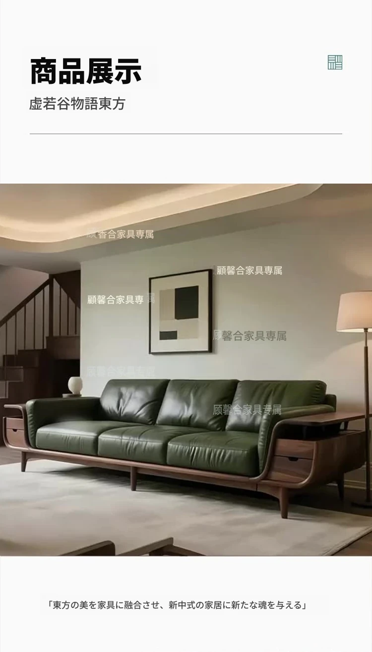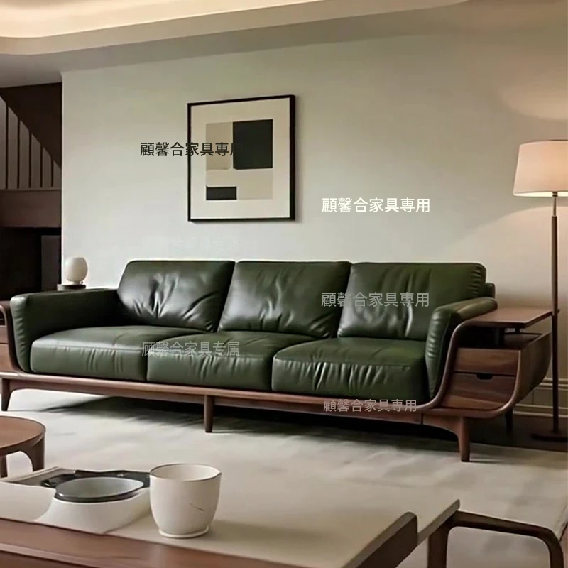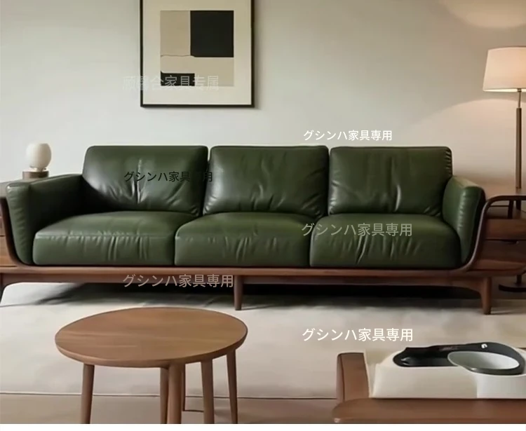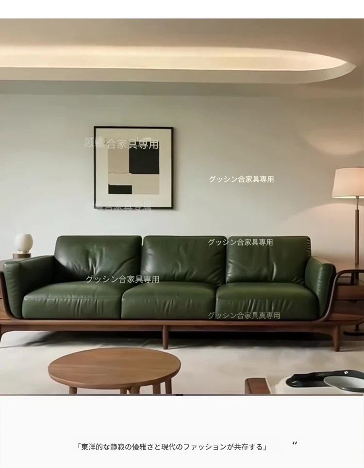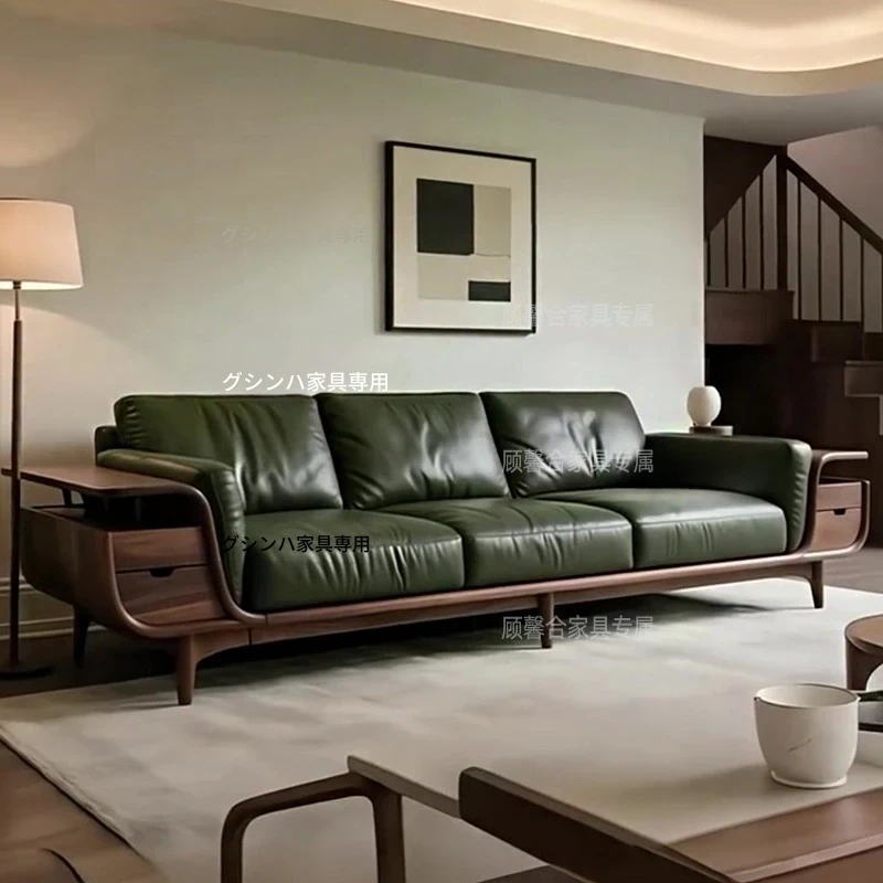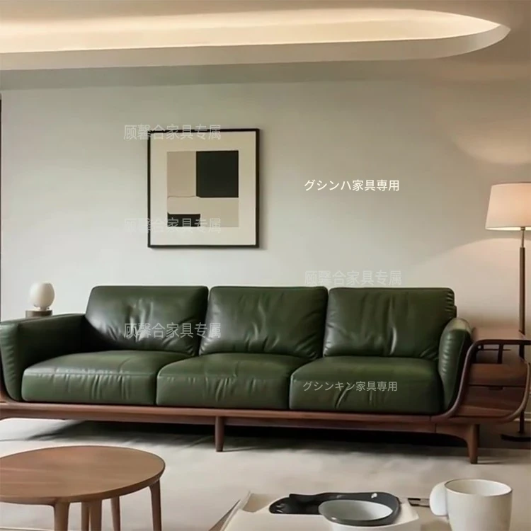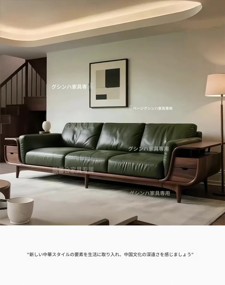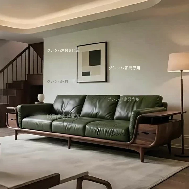 北米産ブラックウォールナット使用!宋氏美学2025年新作・高級別荘向け本革製ストレートソファ。洗練されたデザインで、リビングルームを格上げ!