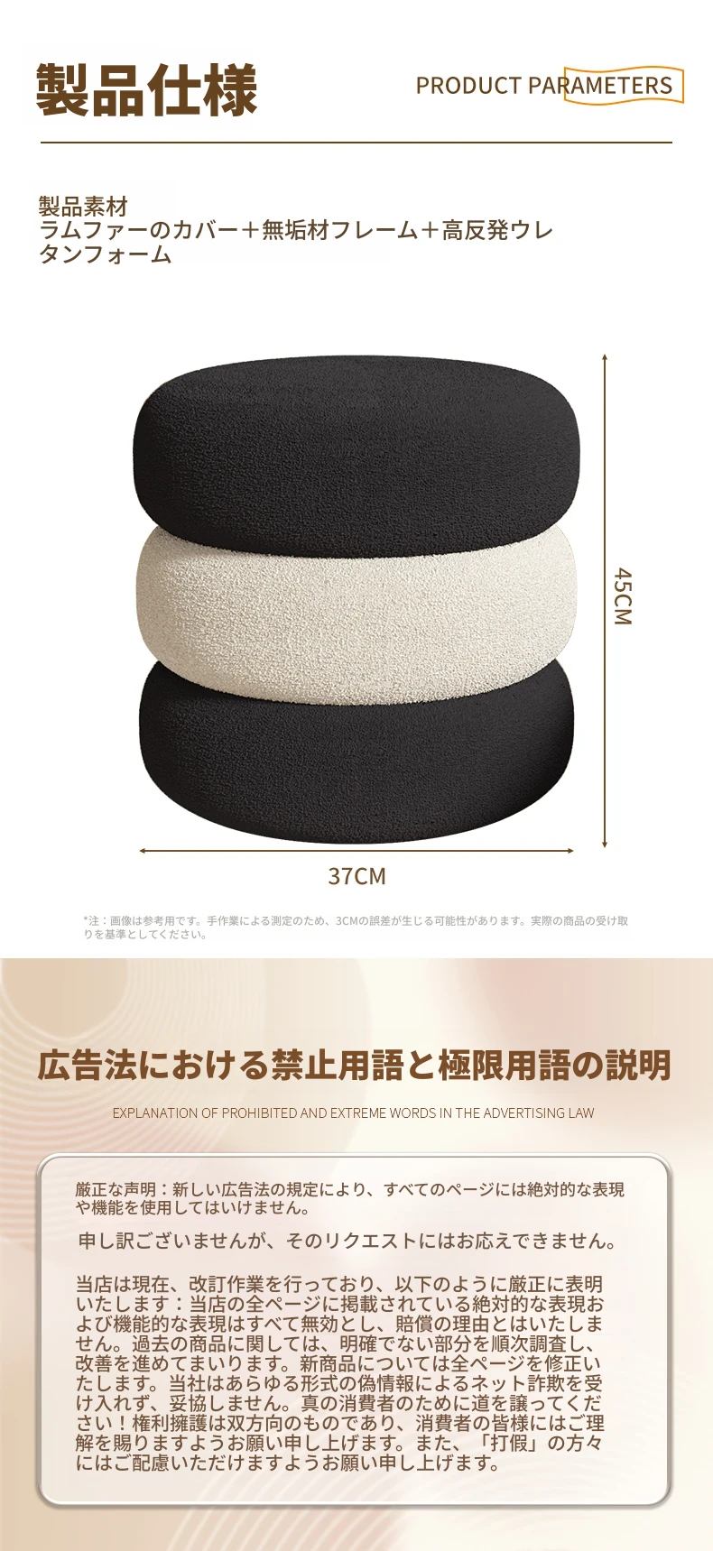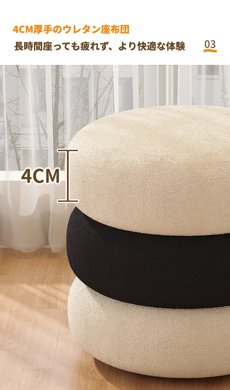 ブラックホワイト3層【快適なラムファー+高反発スポンジ】直径37*高さ45cm