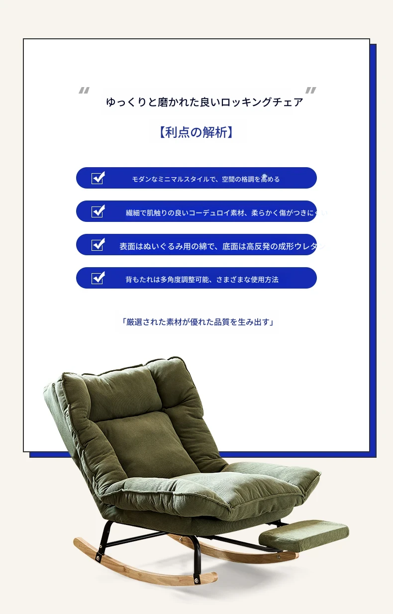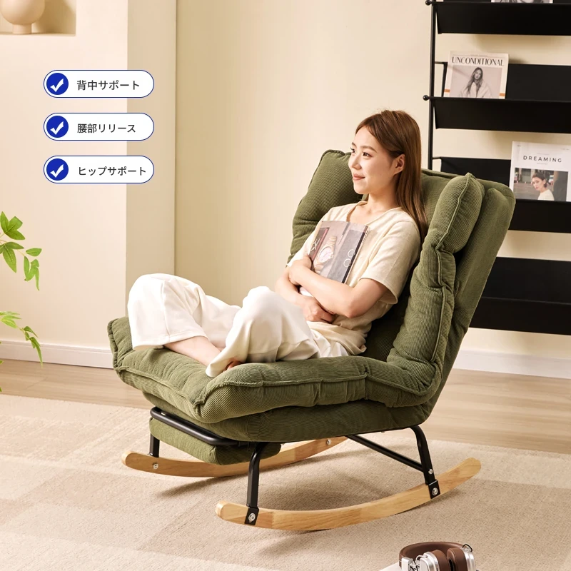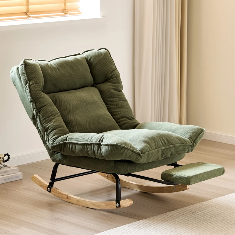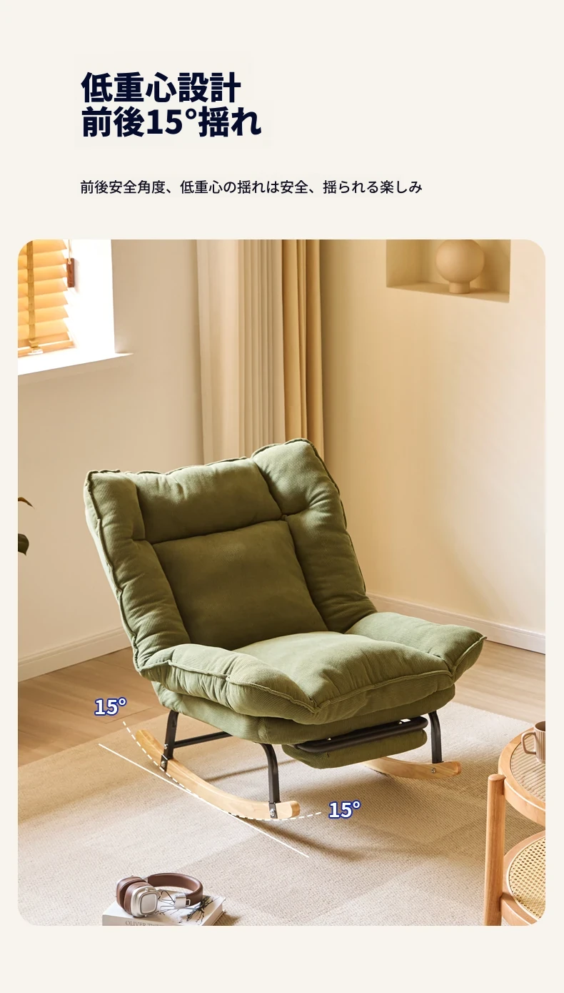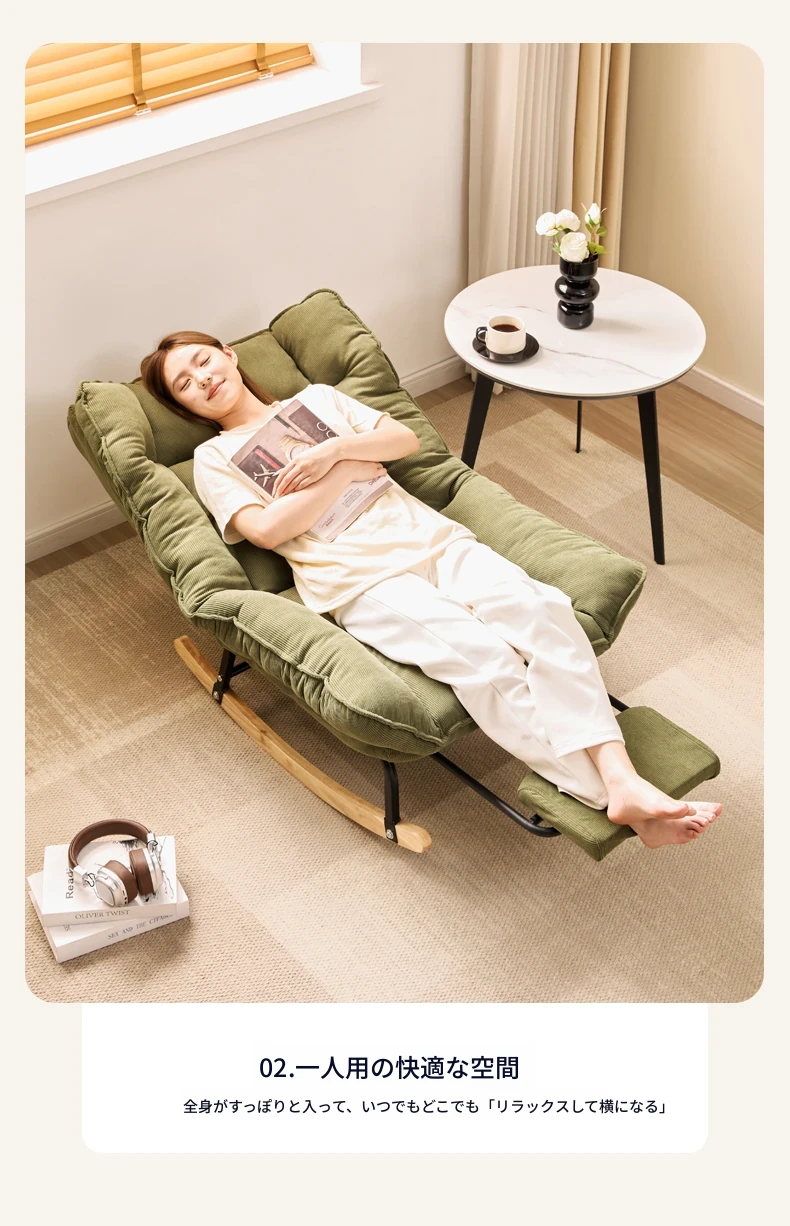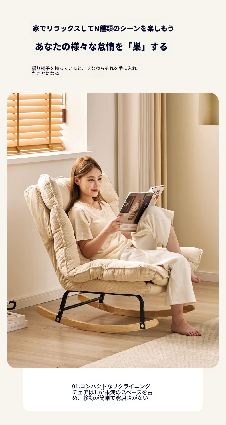 2025年新作!リラックスできる大人用ロッキングチェア - 家庭用、バルコニーやリビングルームに最適!快適な横になれるソファで、くつろぎの時間をお楽しみください。