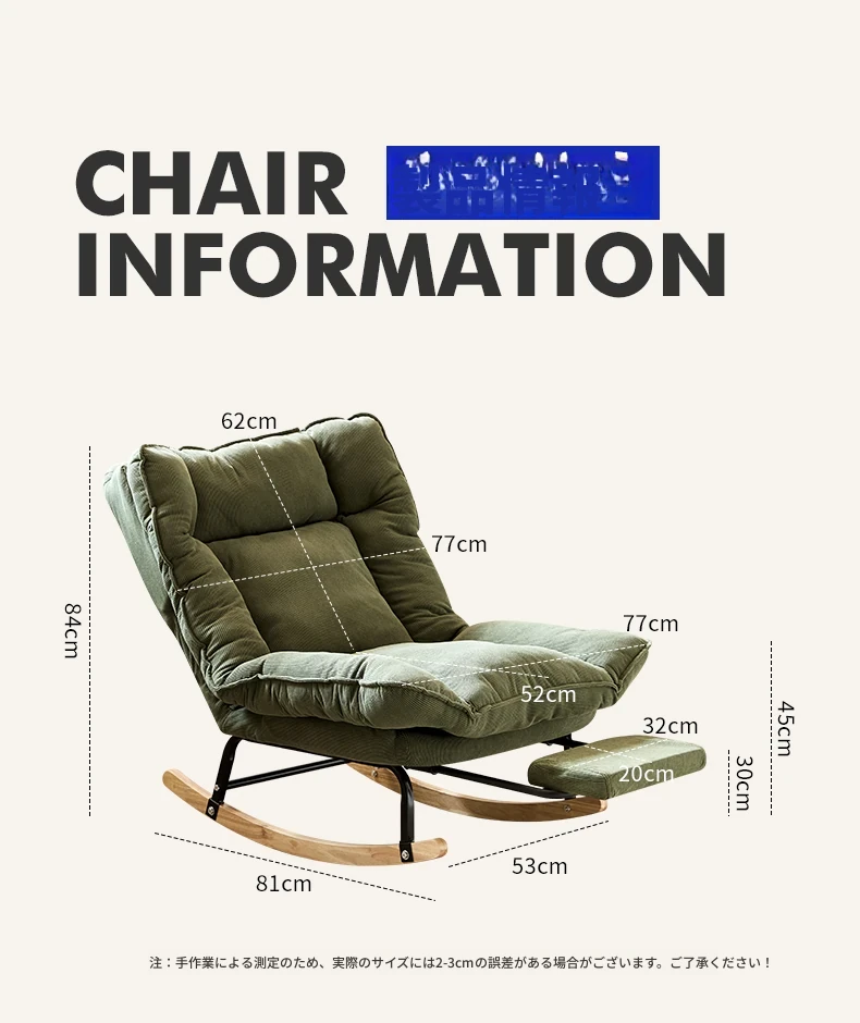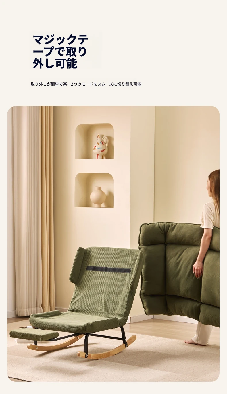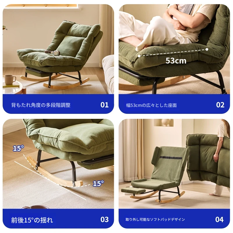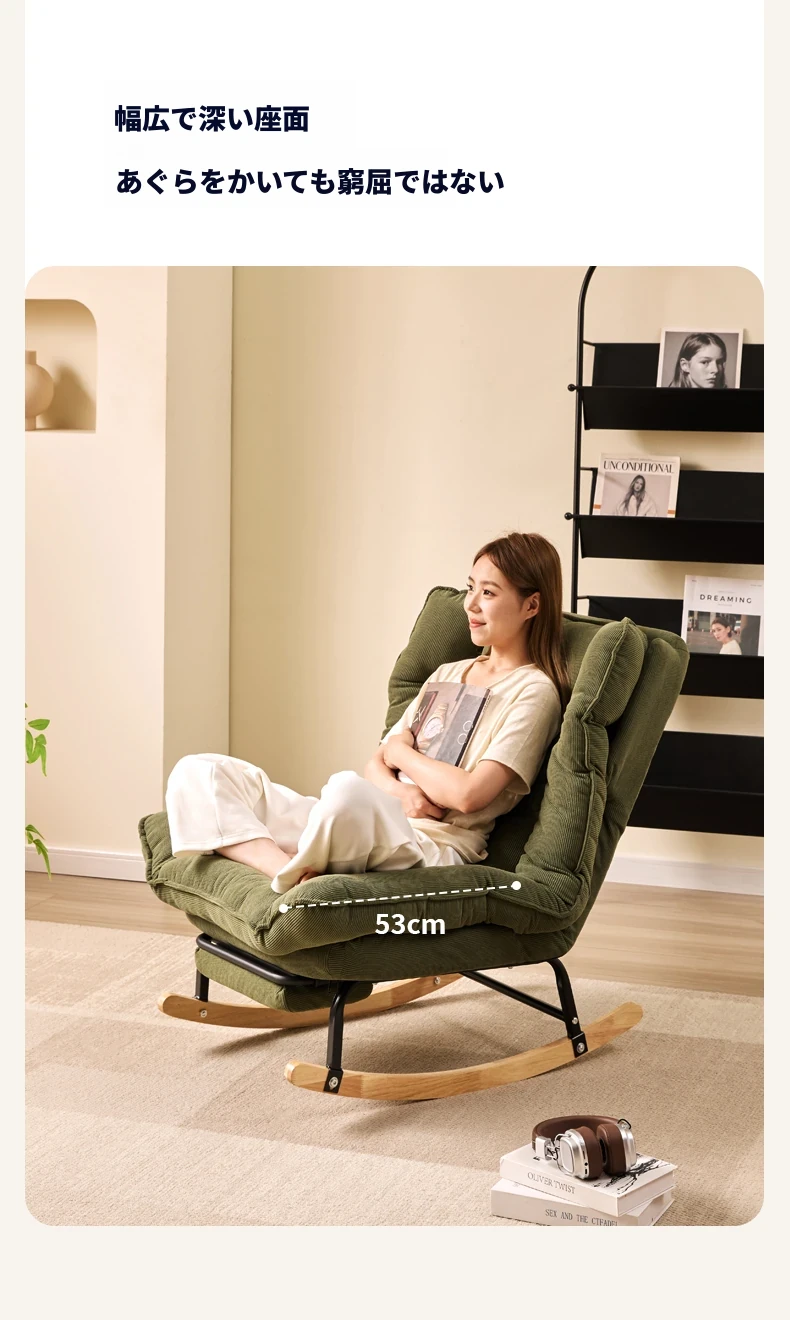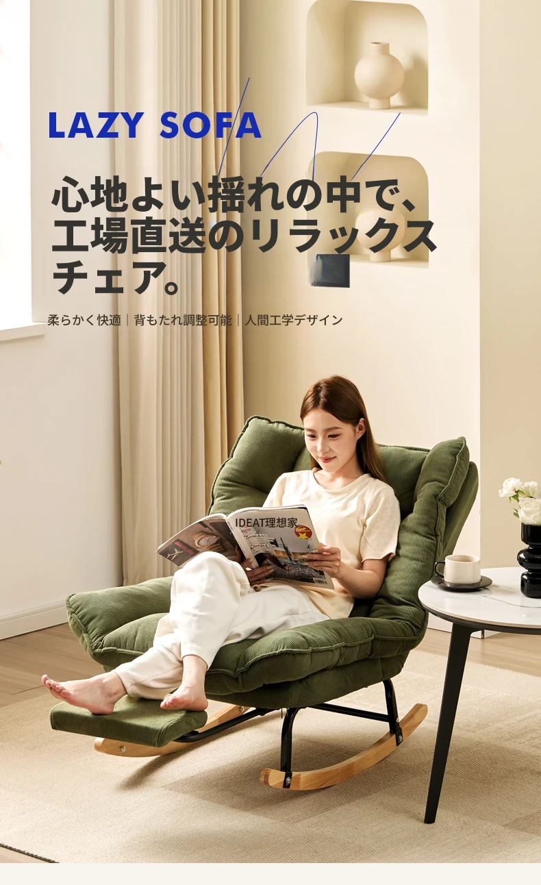 2025年新作!リラックスできる大人用ロッキングチェア - 家庭用、バルコニーやリビングルームに最適!快適な横になれるソファで、くつろぎの時間をお楽しみください。