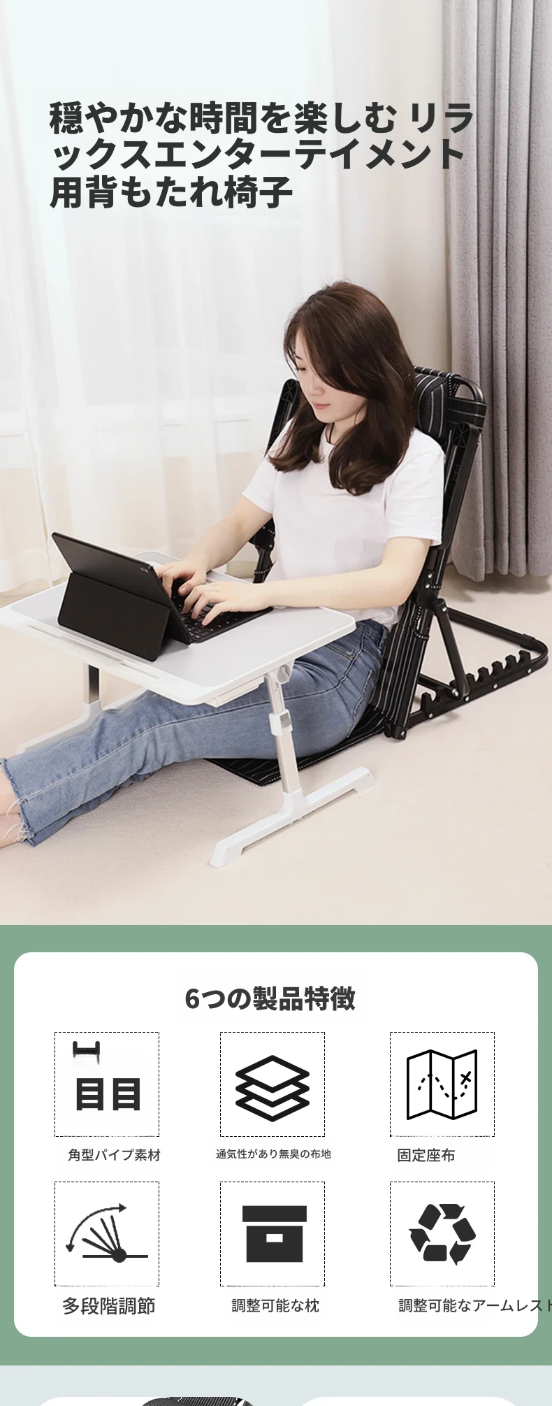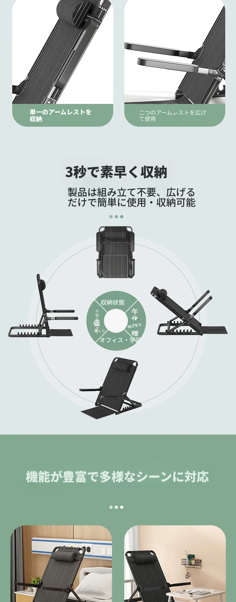 高齢者向け折りたたみ式調節可能なベッドサポートチェア - ゲームやリラックスに最適な、快適なクッション付きソファサポート!ベッド上での快適な姿勢を実現し、日常生活をサポートします。