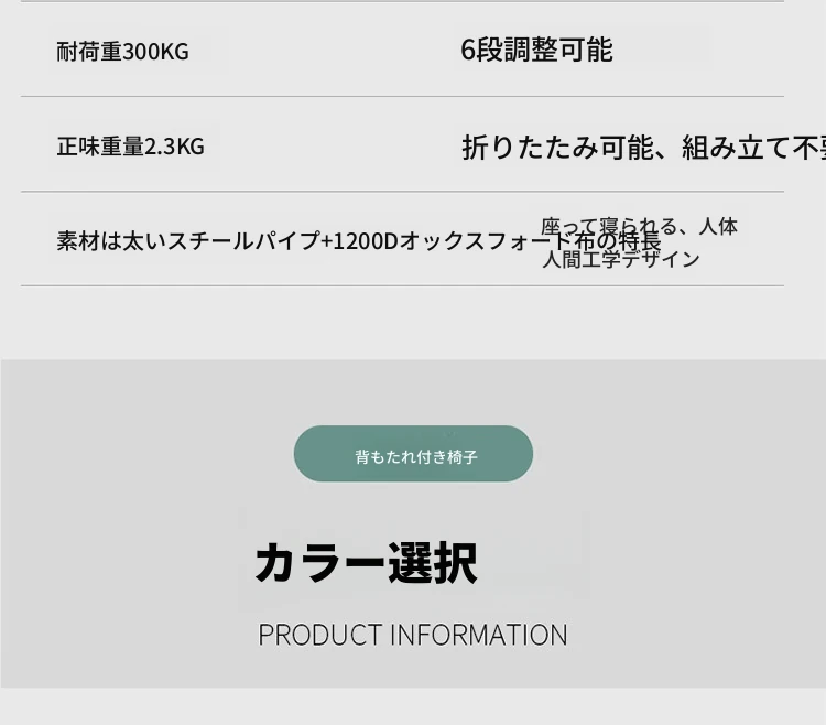 カーキ 通気性モデル - 高さ70センチ クッション調整可能