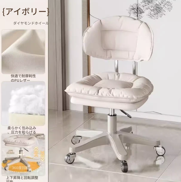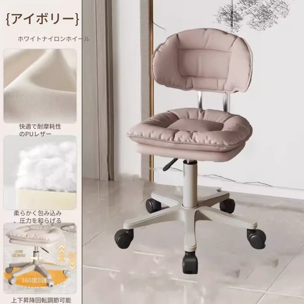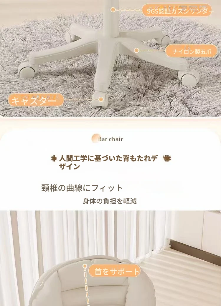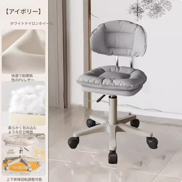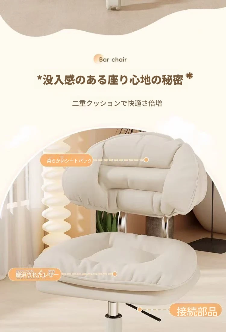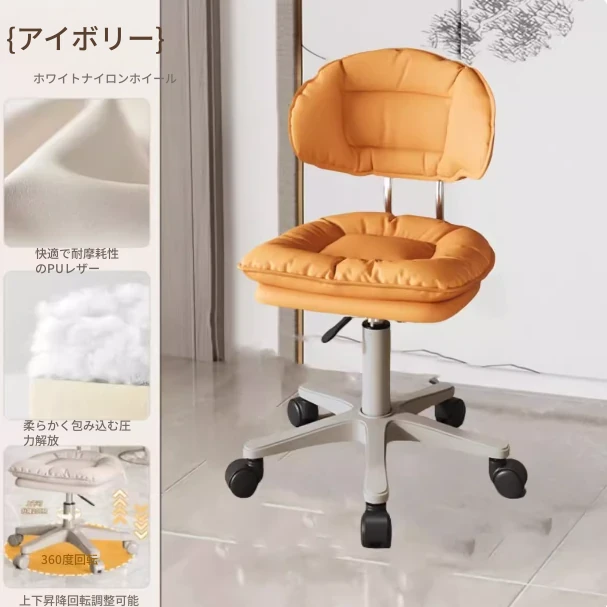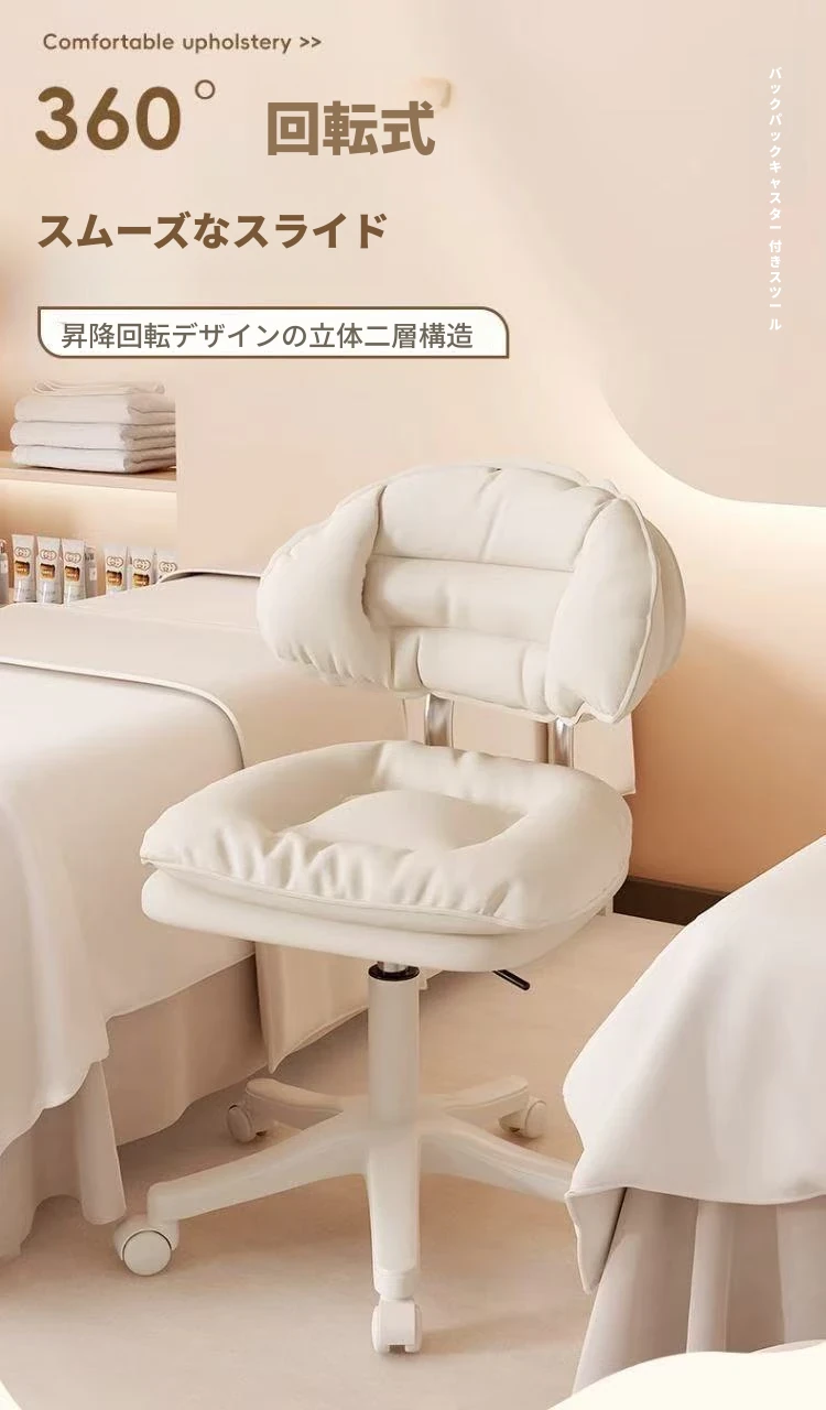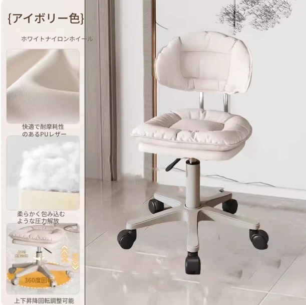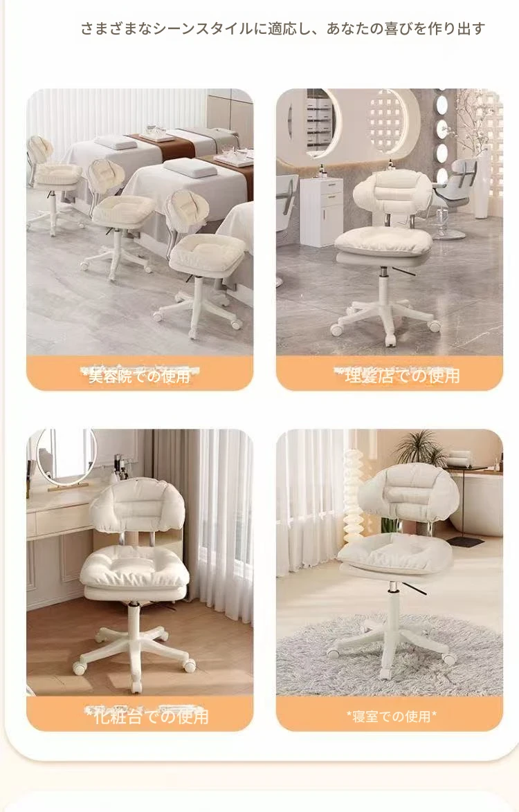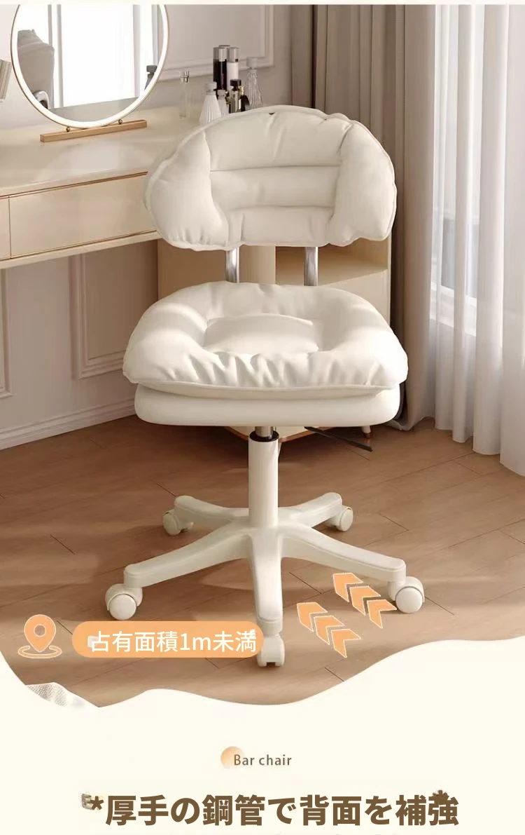 昇降可能なメイクアップチェア|快適な背もたれ付き|おしゃれな回転式椅子|美容室や自宅での使用に最適!|シンプルでスタイリッシュなデザイン|便利なキャスター付き!