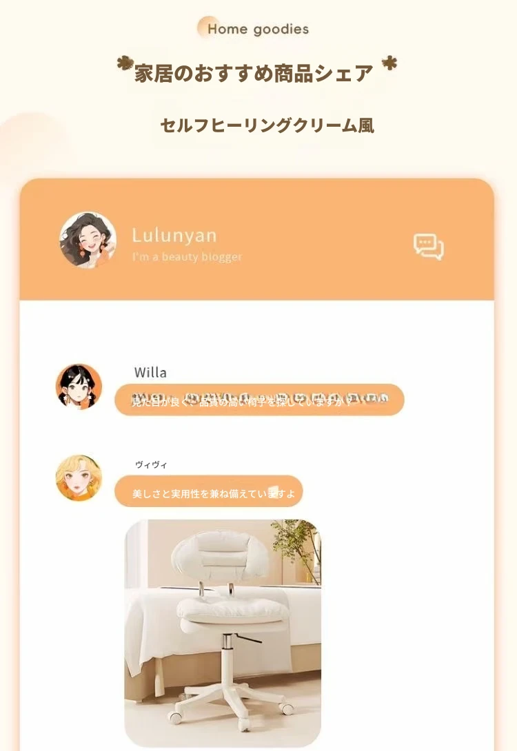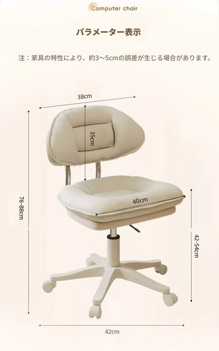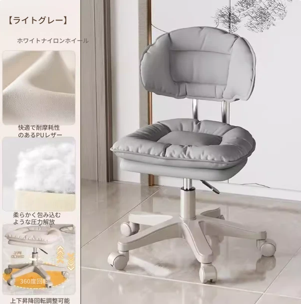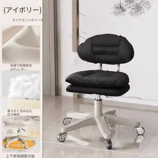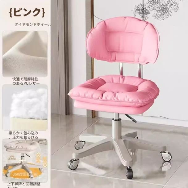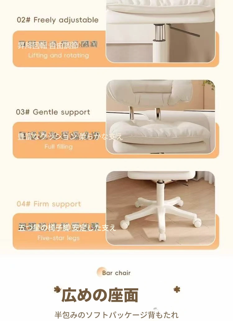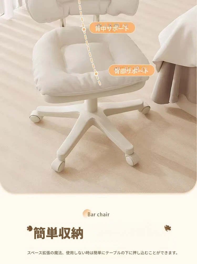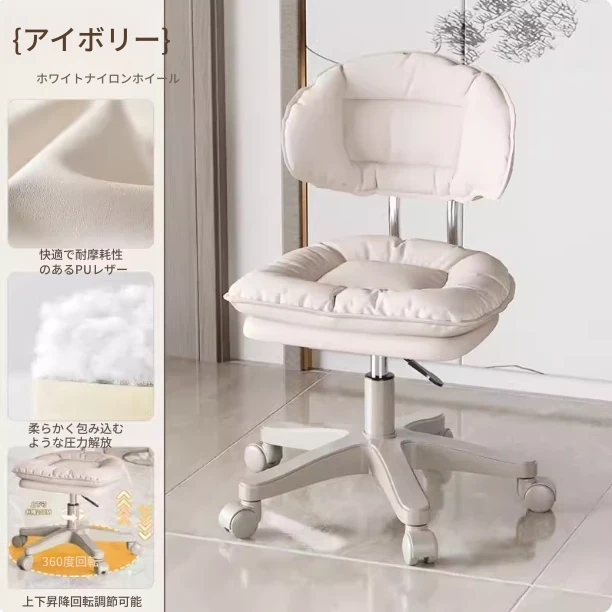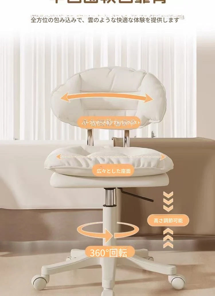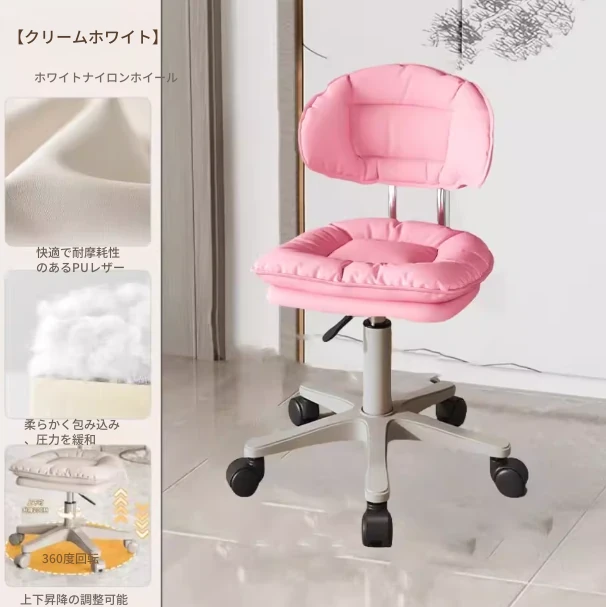 昇降可能なメイクアップチェア|快適な背もたれ付き|おしゃれな回転式椅子|美容室や自宅での使用に最適!|シンプルでスタイリッシュなデザイン|便利なキャスター付き!