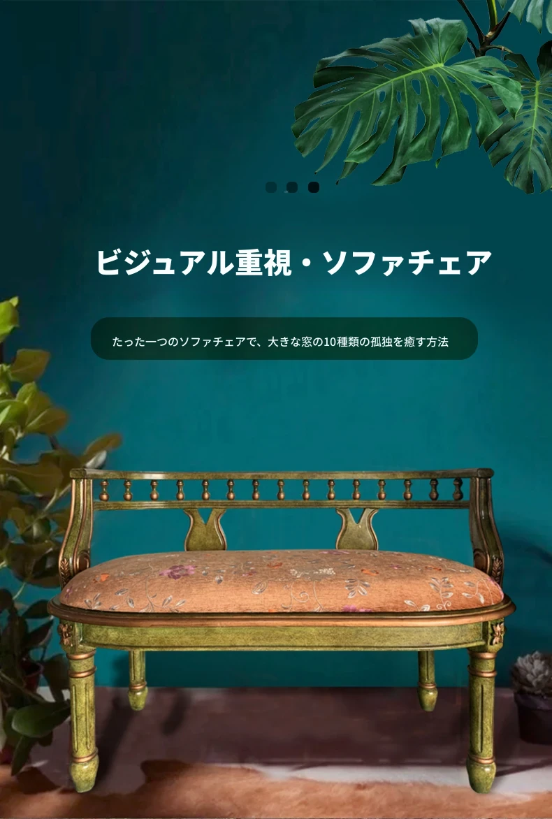 アメリカンスタイルのバルコニー用小型ソファ!リラックスできるデザインのダブルチェア。撮影やカフェにぴったりな実木製の会話用椅子。おしゃれな空間を演出し、くつろぎのひとときを提供します!