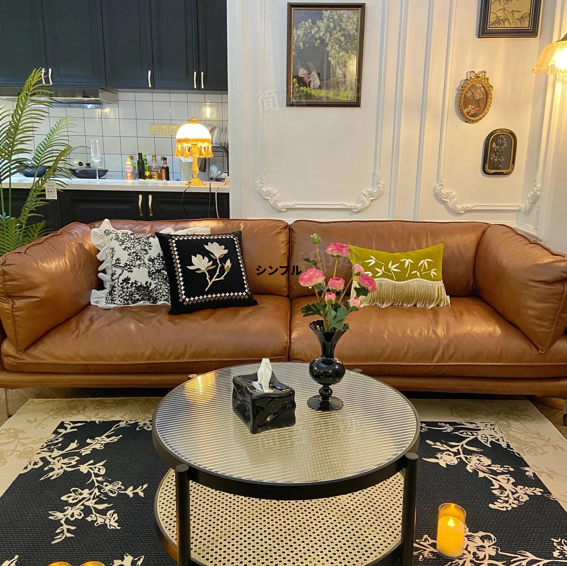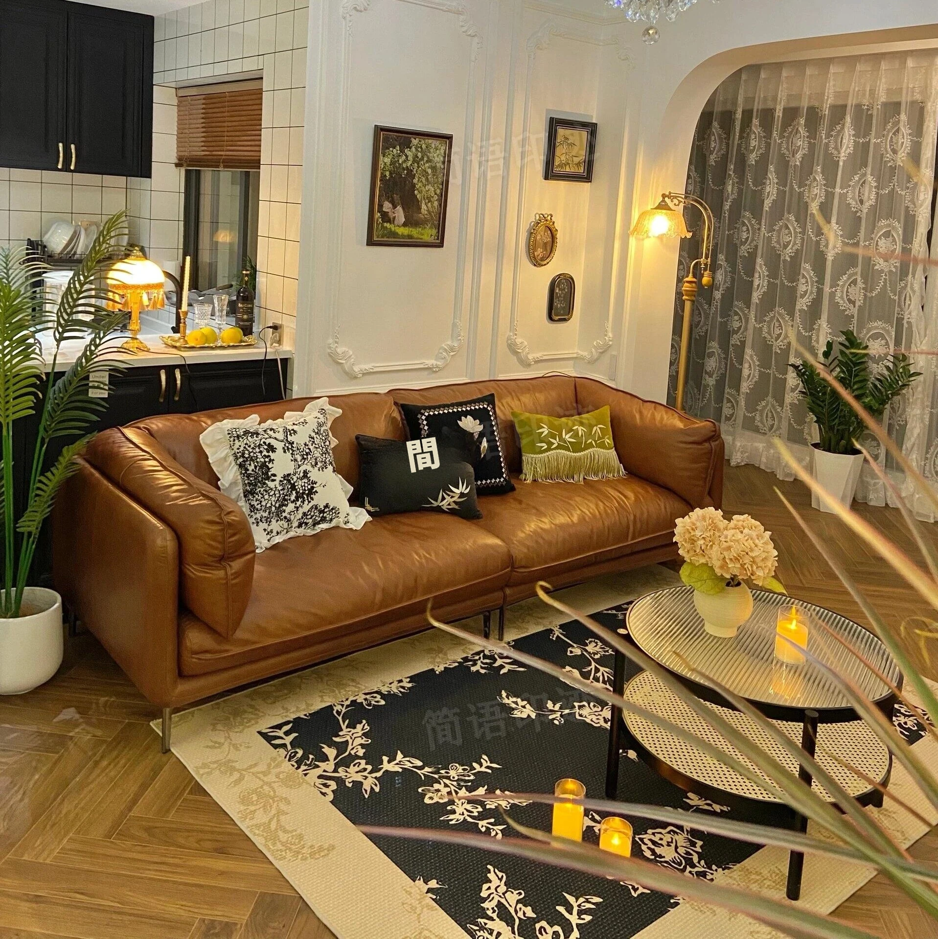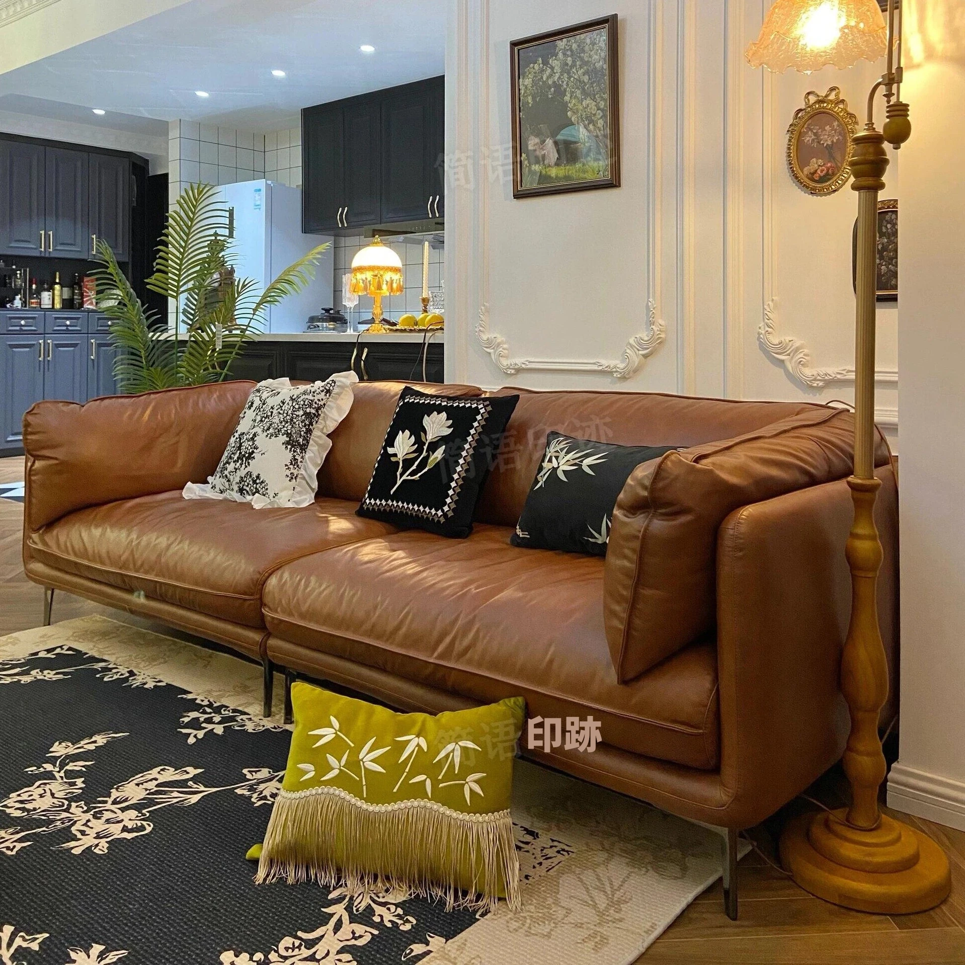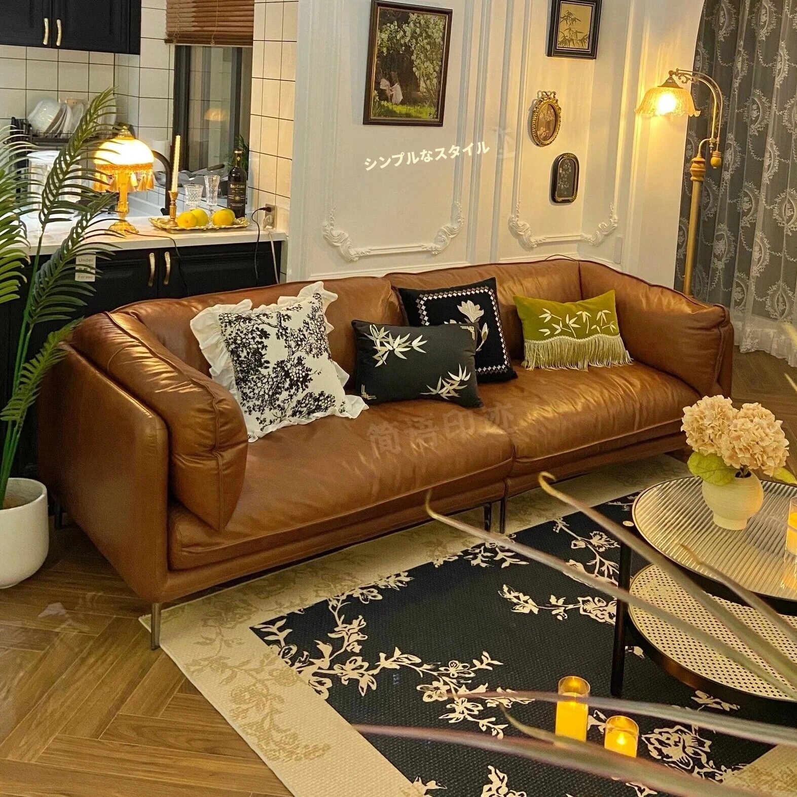 アメリカンレトロオイルワックスレザーソファー 3〜4人用 ストレートコンビネーション モダンイタリアンオイルワックスレザーソファー リラックスソファー【快適な座り心地とスタイリッシュなデザインで、あなたのリビングを一新!】