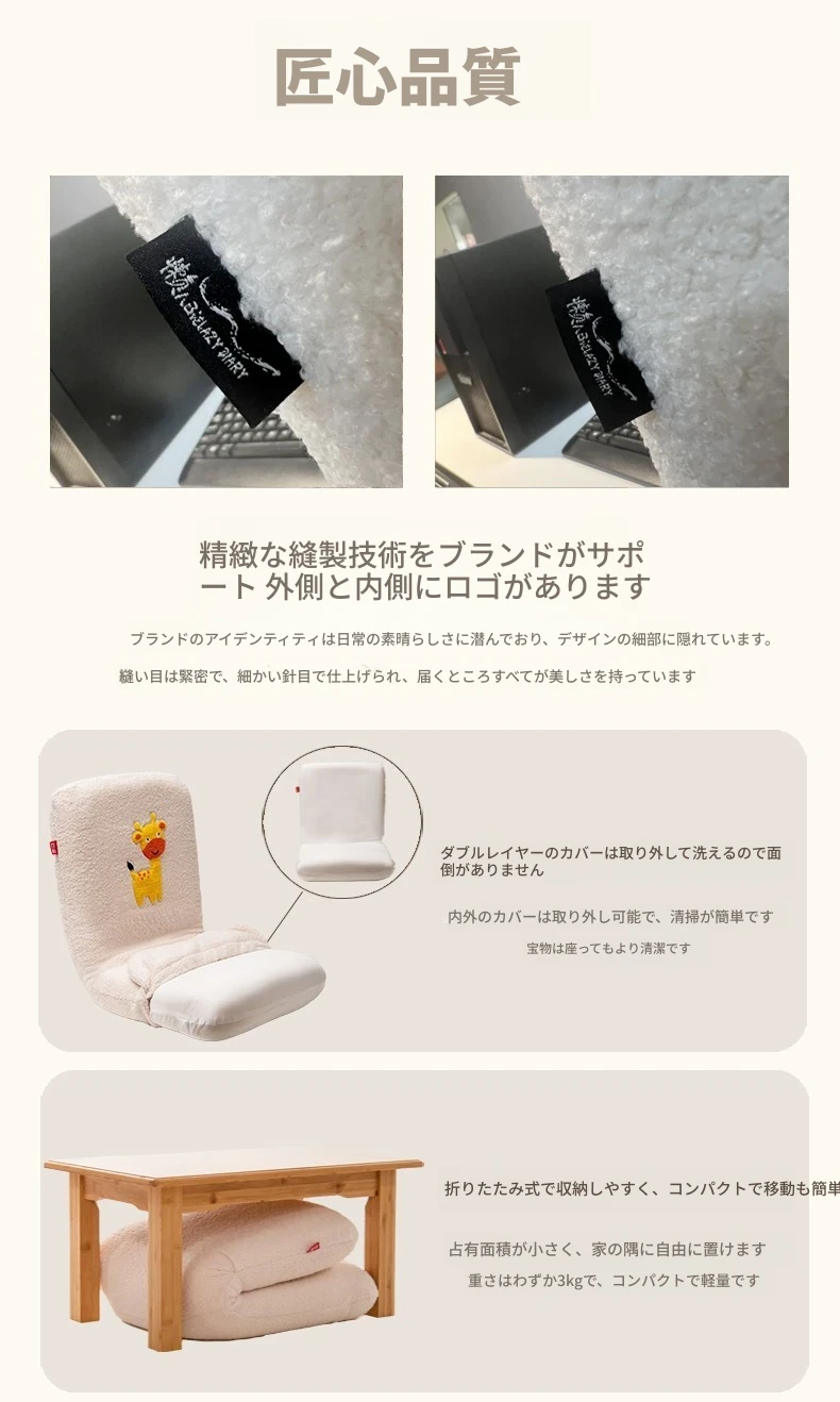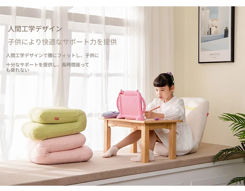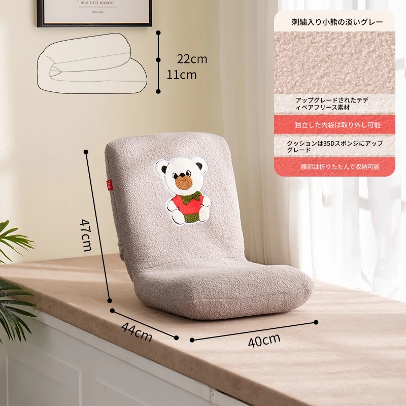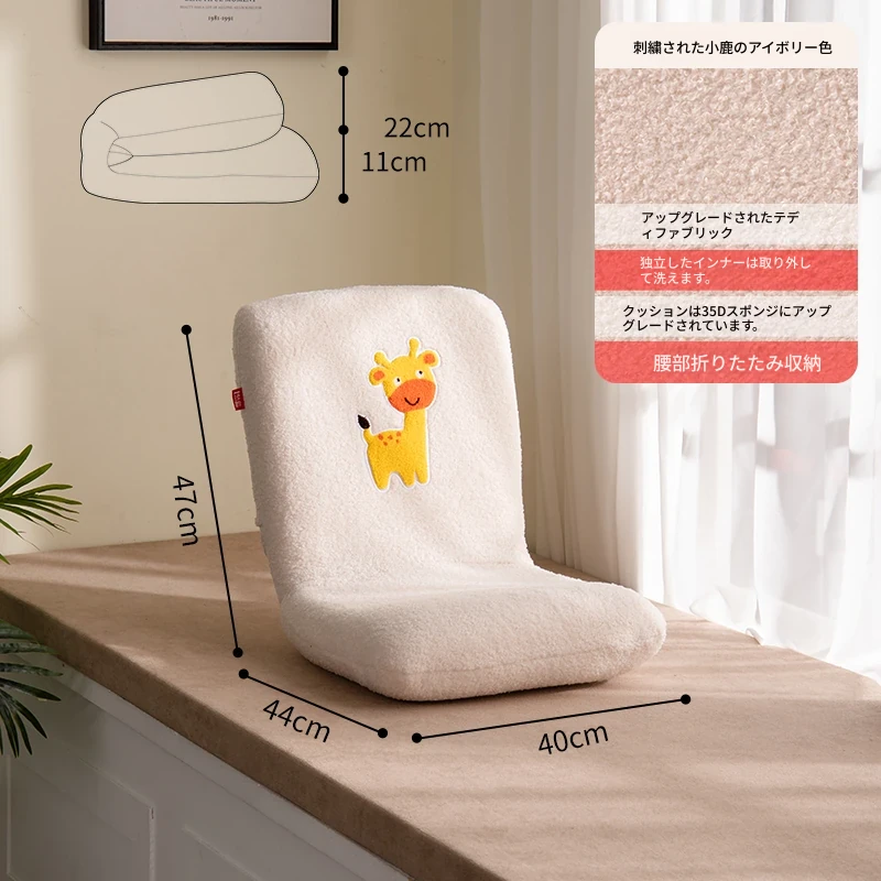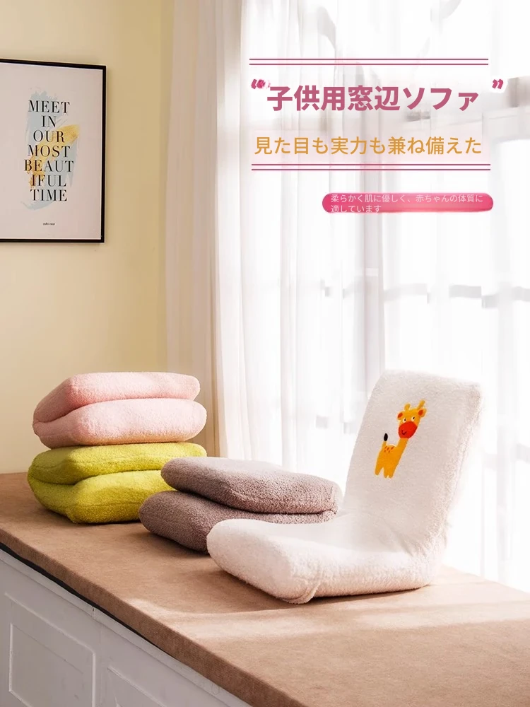 子供向けカートゥーンテディファーの窓辺クッション、背もたれ一体型のシングル畳座椅子。腰をサポートし、ベッド上でリラックスできるおしゃれなソファ!快適さと可愛さを兼ね備えたアイテムです。