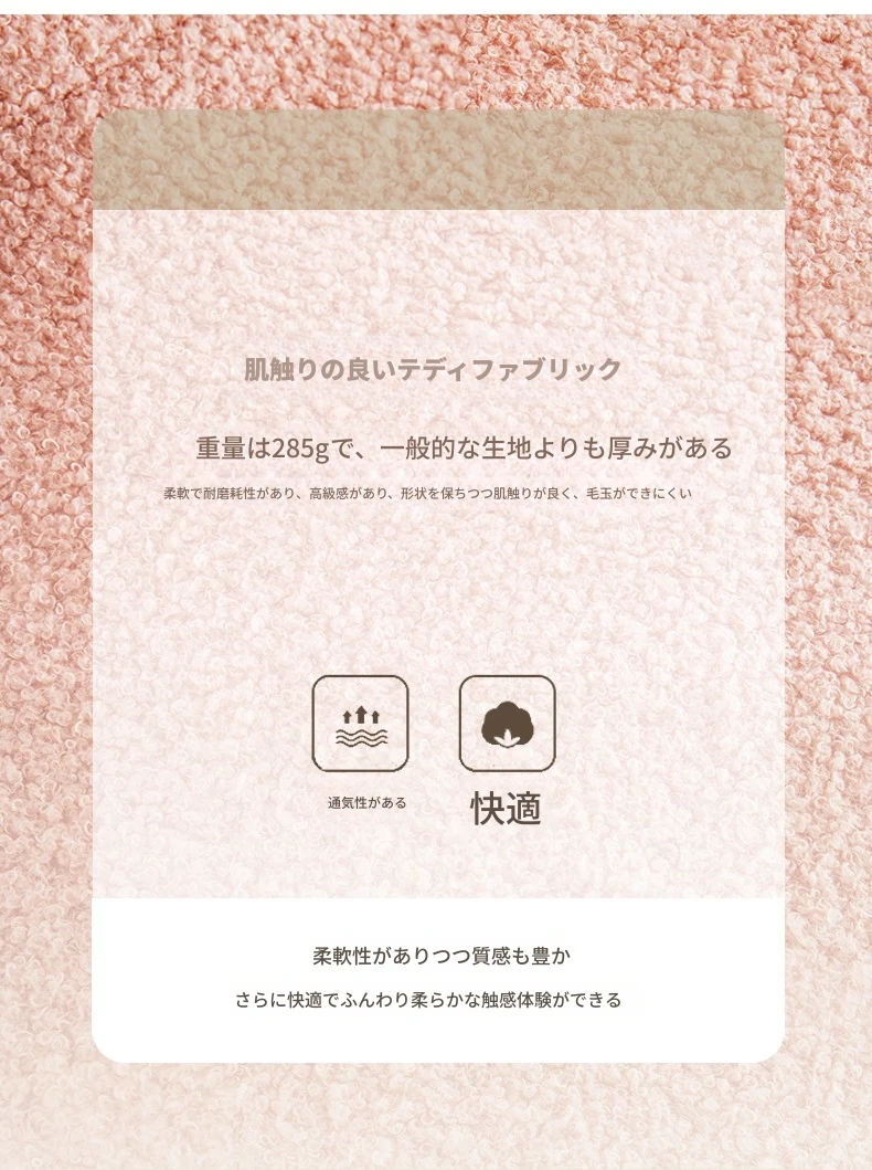 淡いピンク(テディベアフリース生地+取り外し可能なインナー)