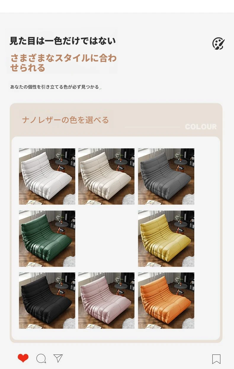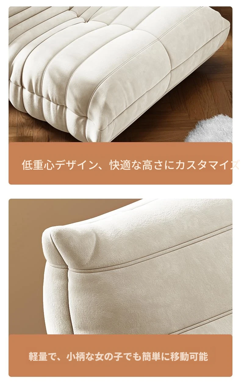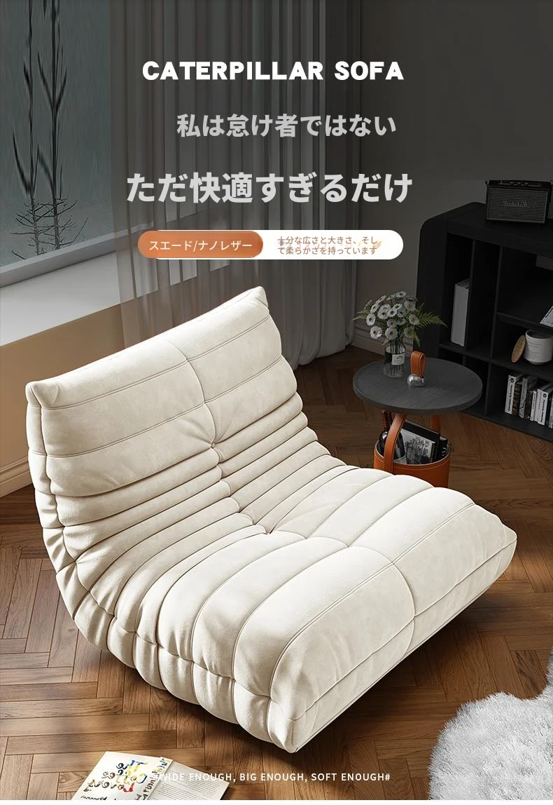 ふわふわ毛虫ラウンジソファ - 寝ても座っても快適!寝室やバルコニーにぴったりのタタミスタイル。ユニークなデザインで、リラックスしたひとときを提供する一人用ラウンジチェア。