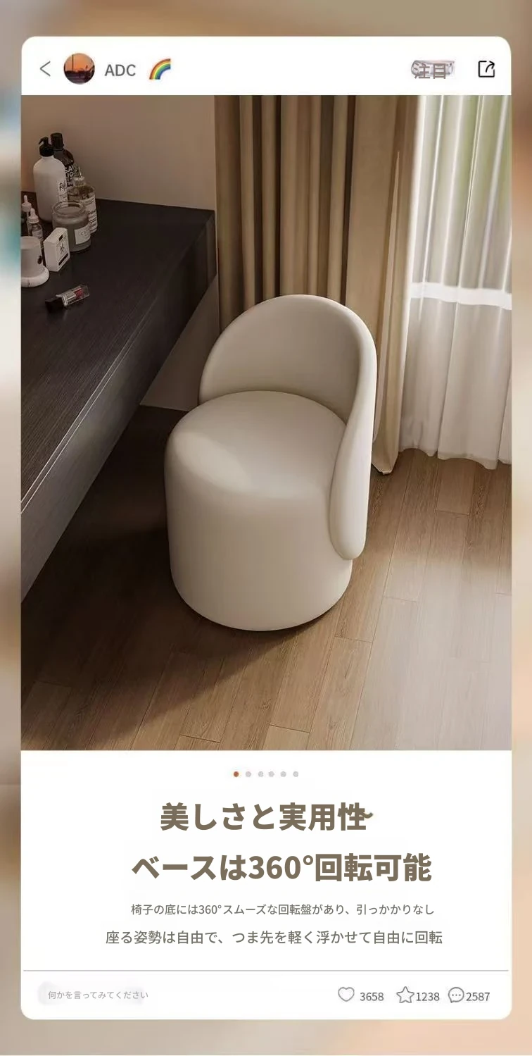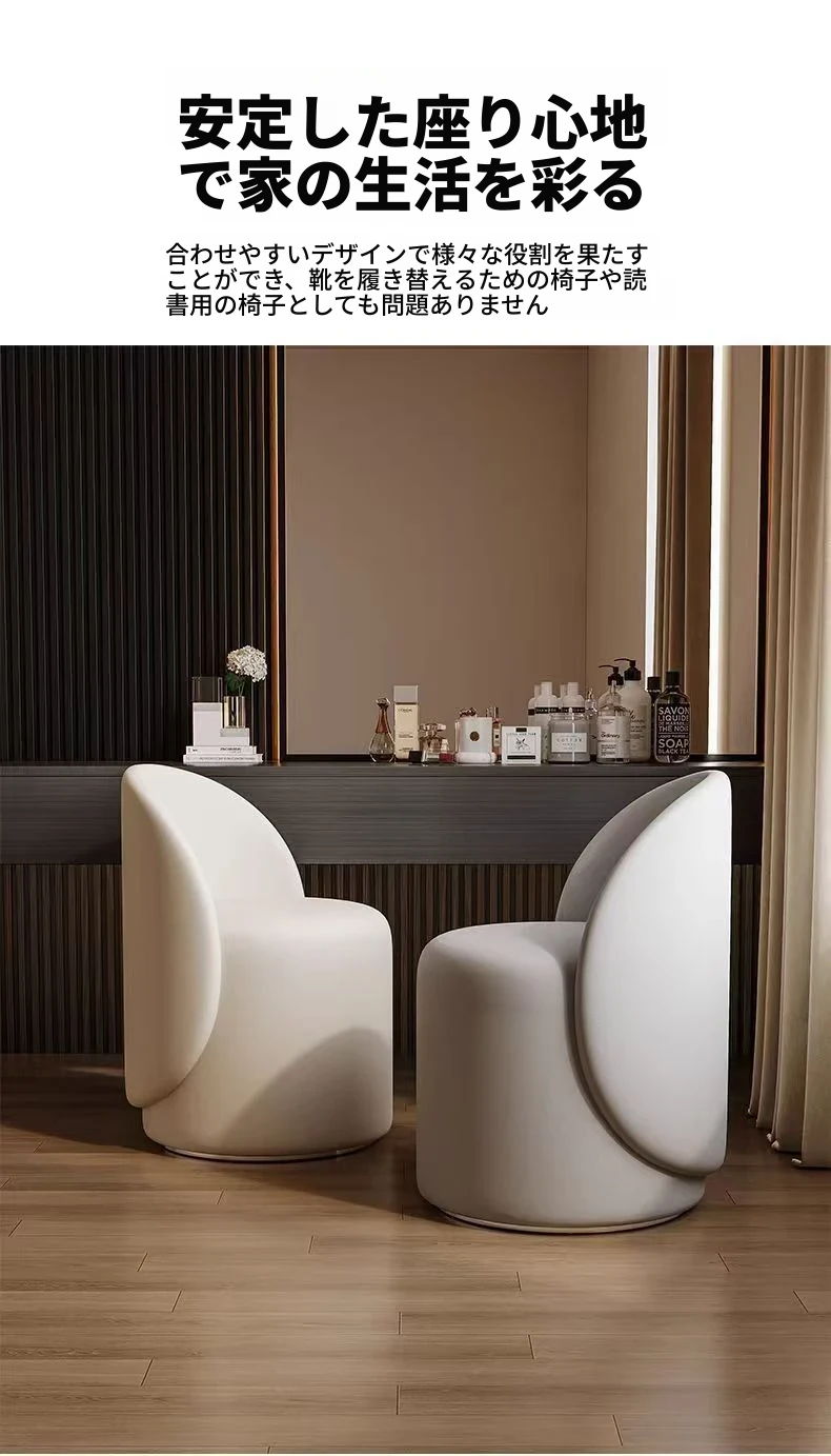 高級感あふれるクリーム風のメイクアップチェア!女性のための寝室にぴったりな高背もたれ付きのドレッサー椅子。インスタ映えするネイルチェアとしても大活躍!おしゃれで快適な時間をお楽しみください。