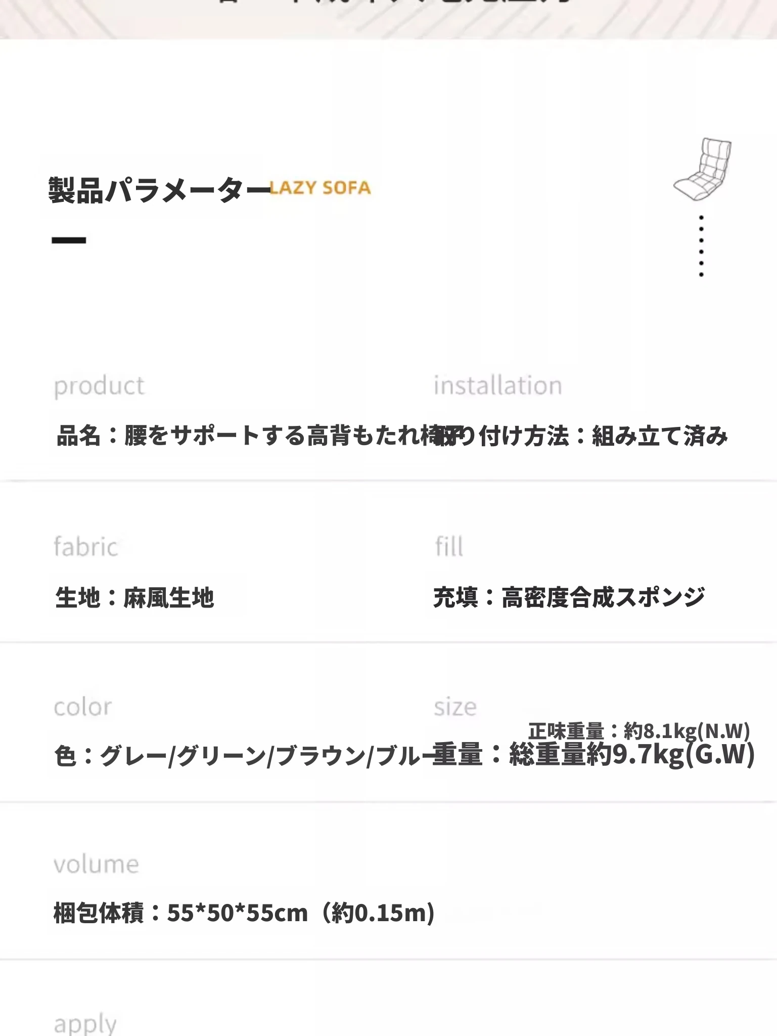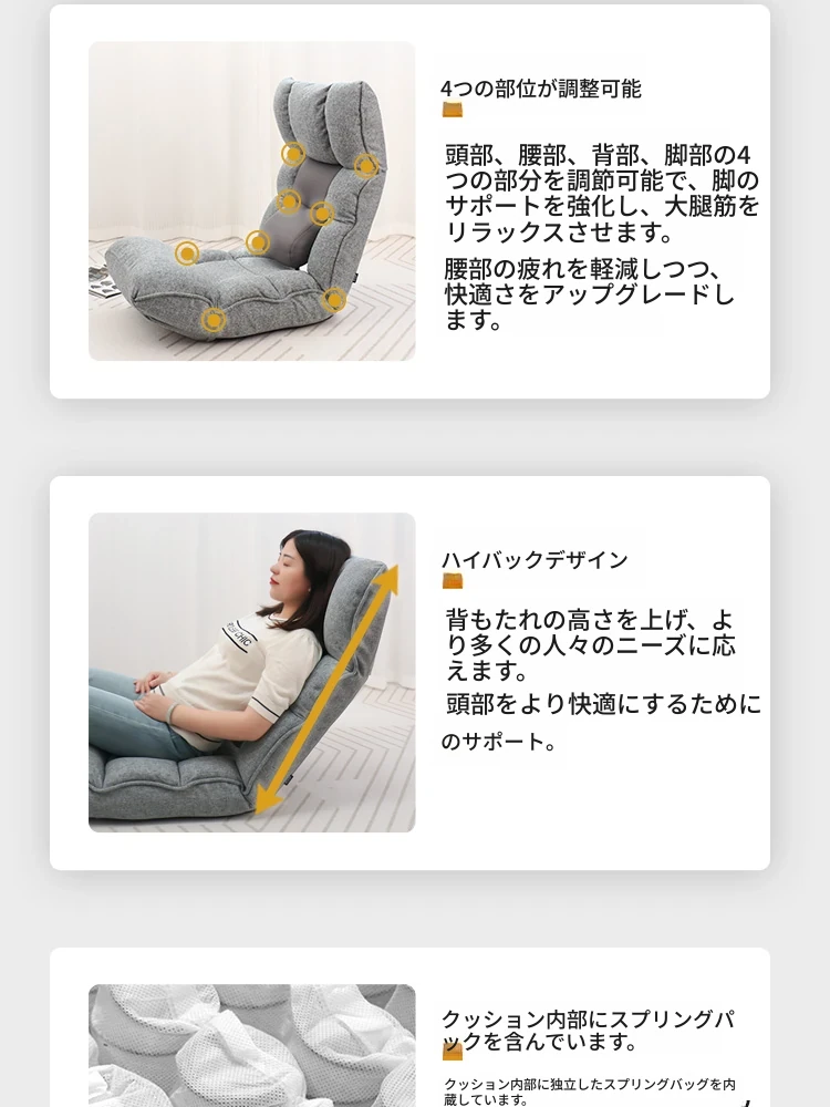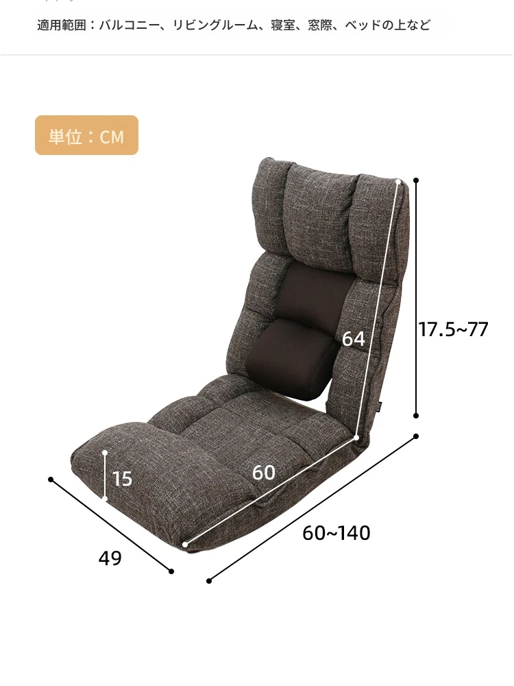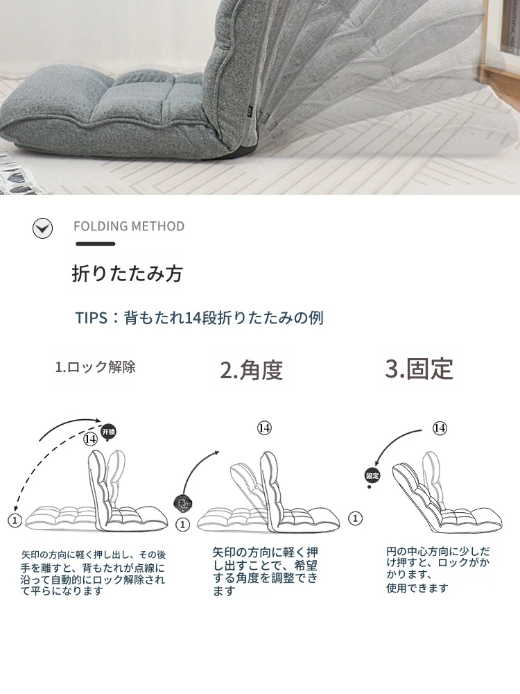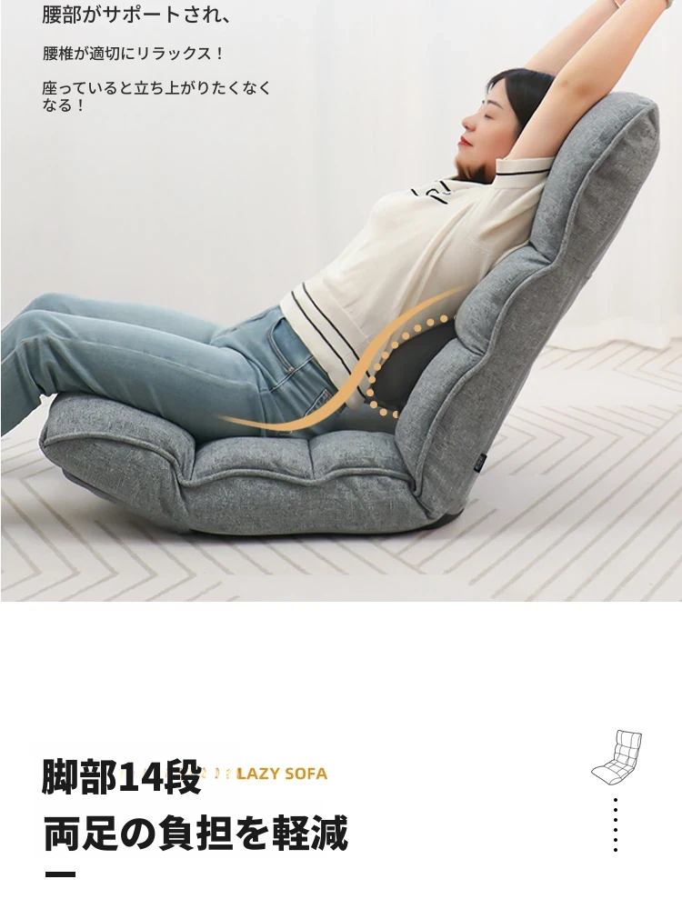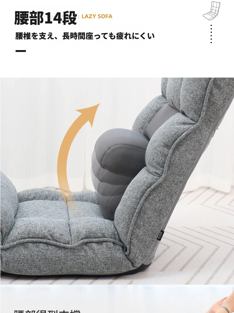 腰をサポートするリラックスソファ!折りたたみ式の窓際ソファ椅子で、寝室やリビングに最適。快適なクッションで読書やリラックスタイムを楽しもう。タタミスタイルにもぴったり!