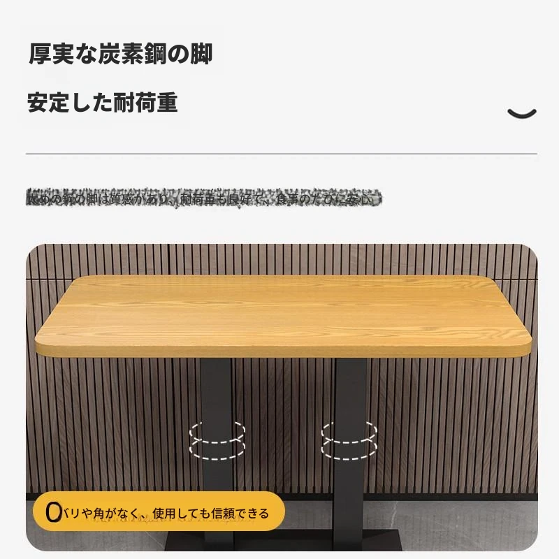 120*60ナチュラルウッド色テーブル黒ダブル柱シングルテーブル+ベージュ椅子*4