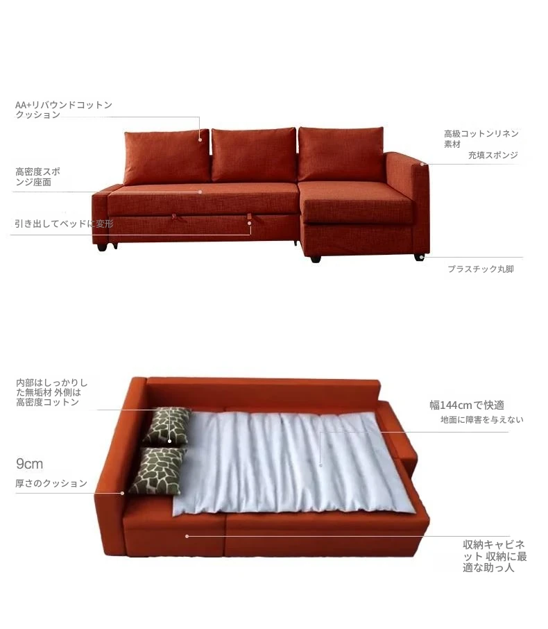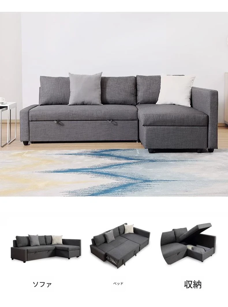 香港製ソファベッド|コンパクトで多機能、引き出し付き伸縮可能な収納ベッド|小スペースに最適な座る&寝る2WAYタイプ!お部屋をスッキリ!