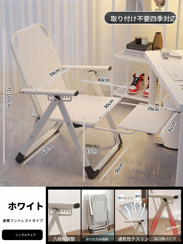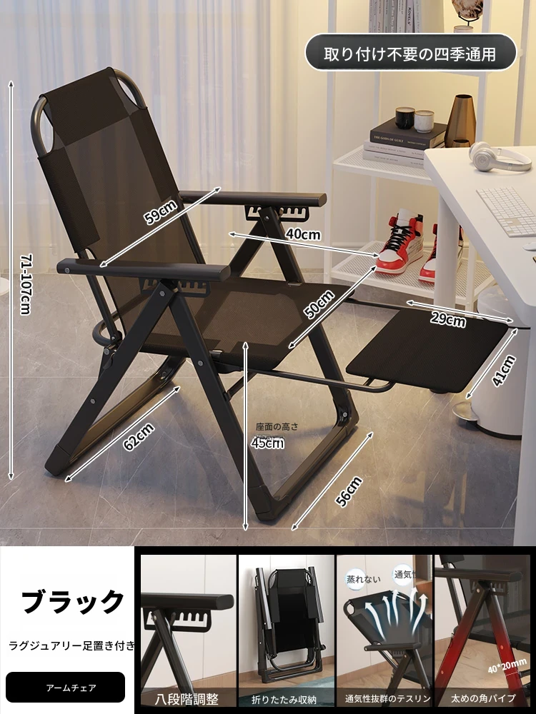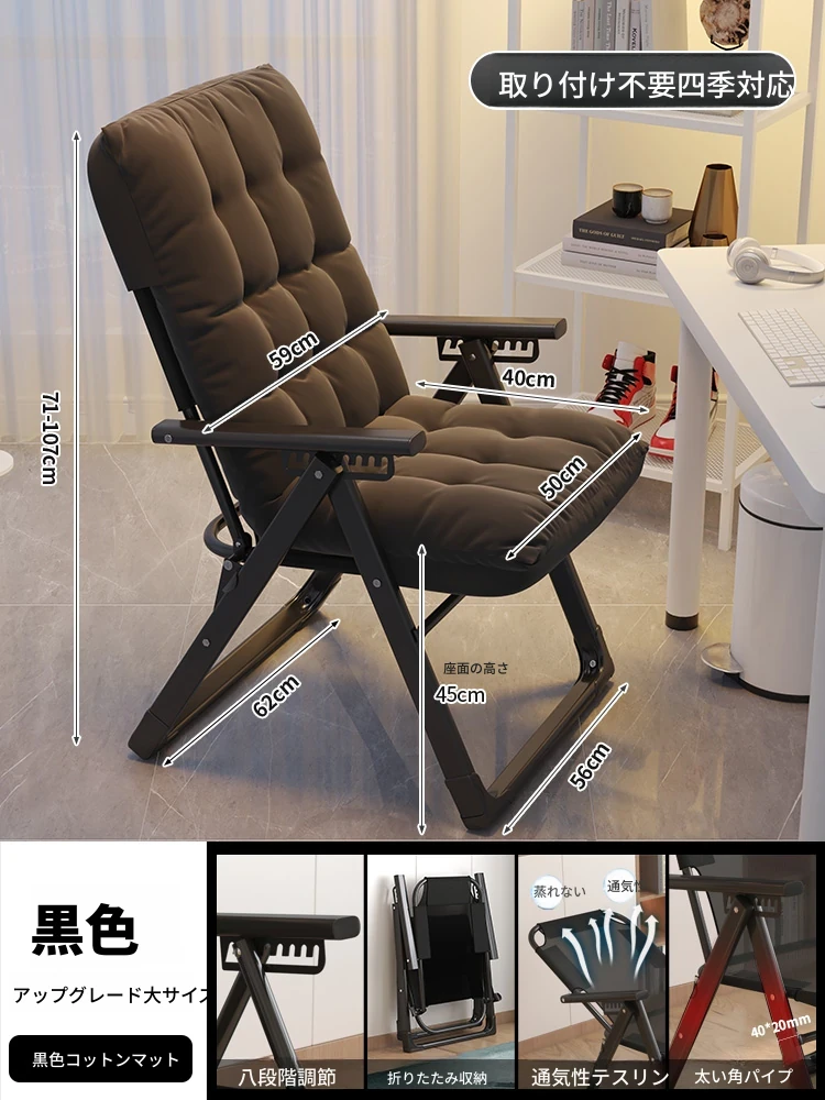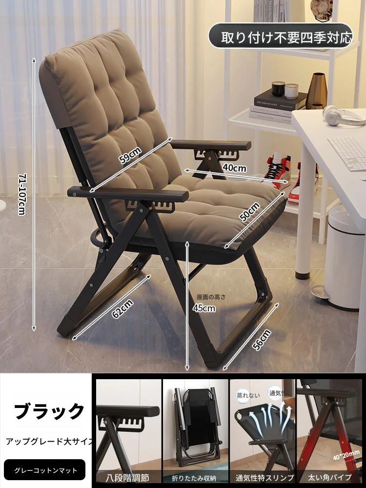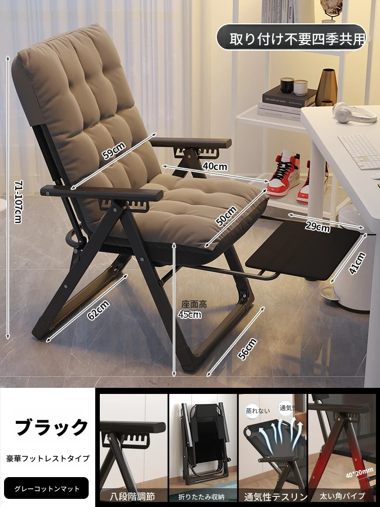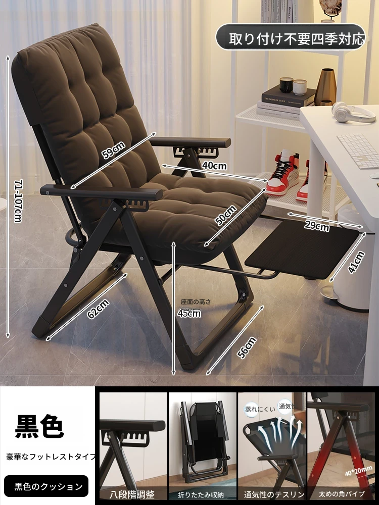 リラックスソファチェア|寝転んでリラックス!折りたたみ式のコンパクトデザイン|モダンな寝椅子&オフィスチェア|快適な居心地で作業も休息も◎