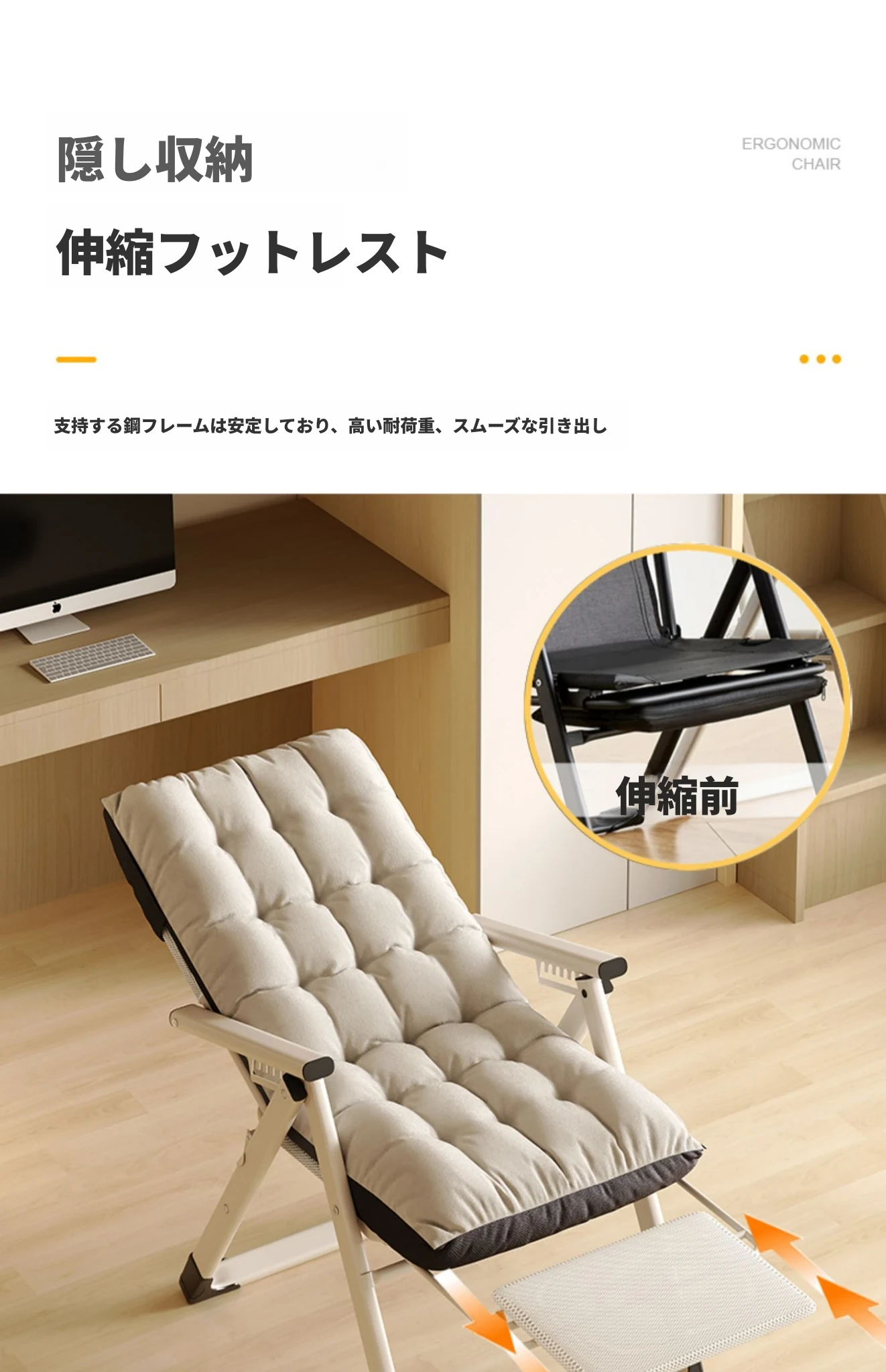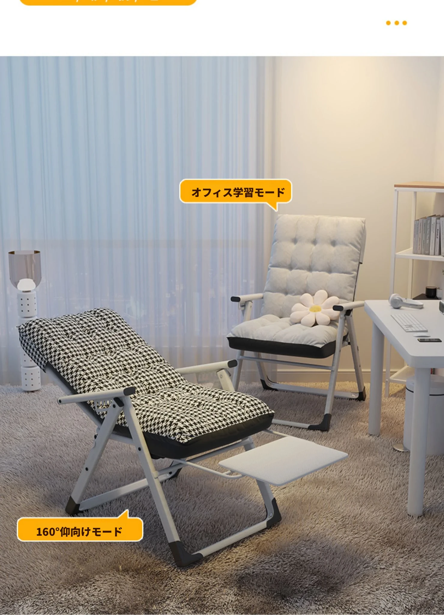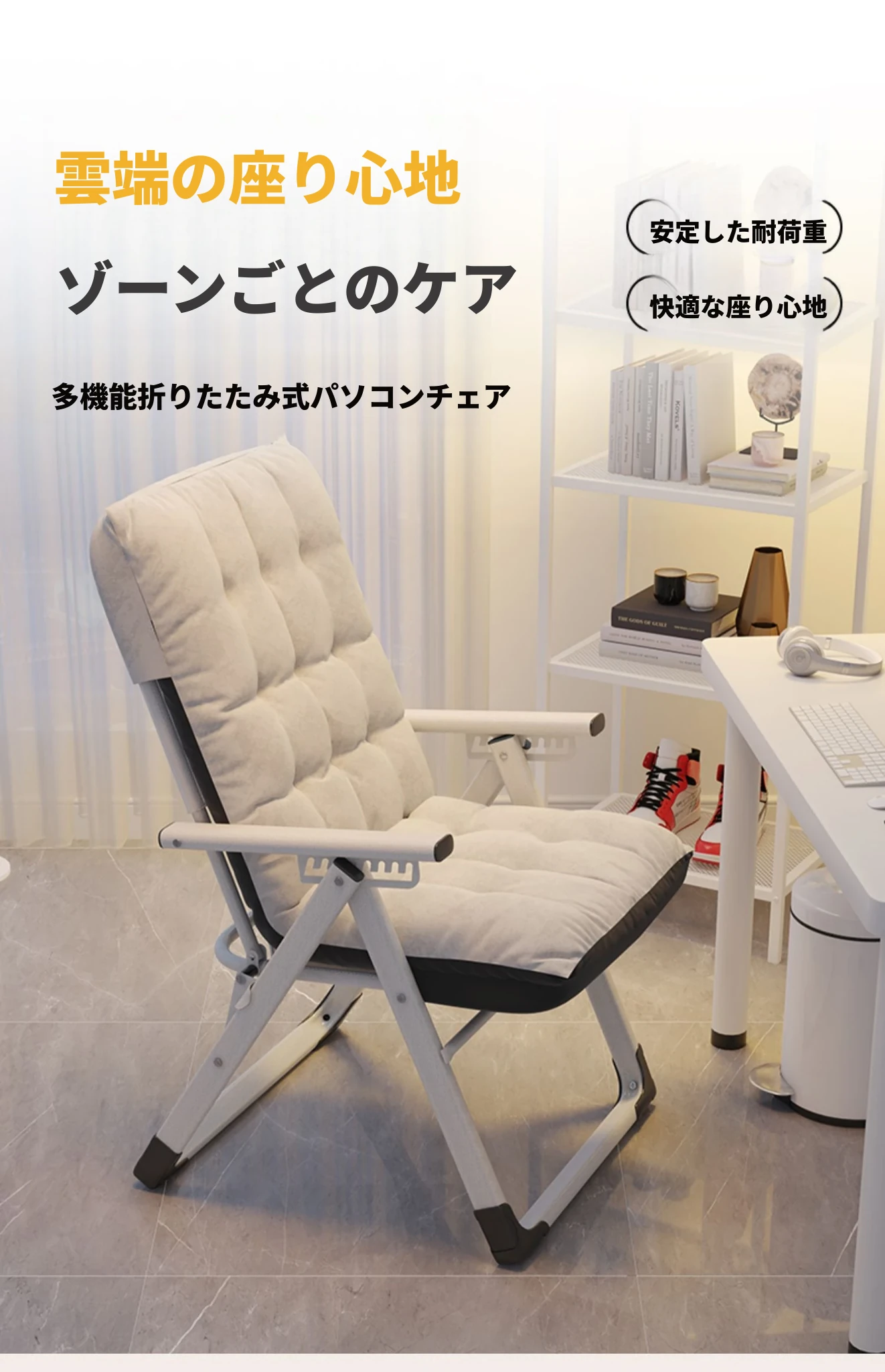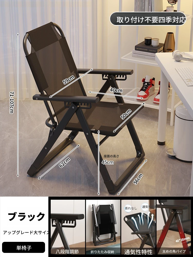 リラックスソファチェア|寝転んでリラックス!折りたたみ式のコンパクトデザイン|モダンな寝椅子&オフィスチェア|快適な居心地で作業も休息も◎