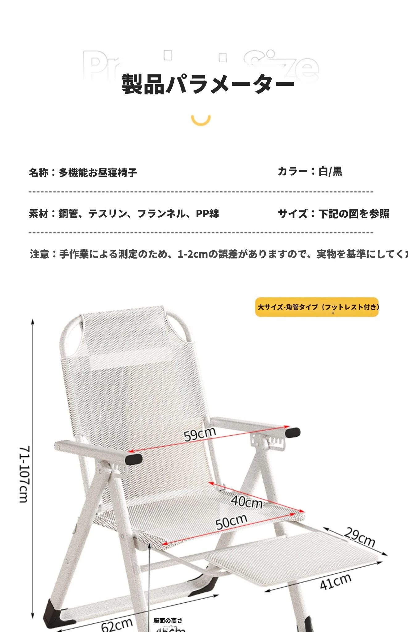 【夏専用】 白-角管足置き付き