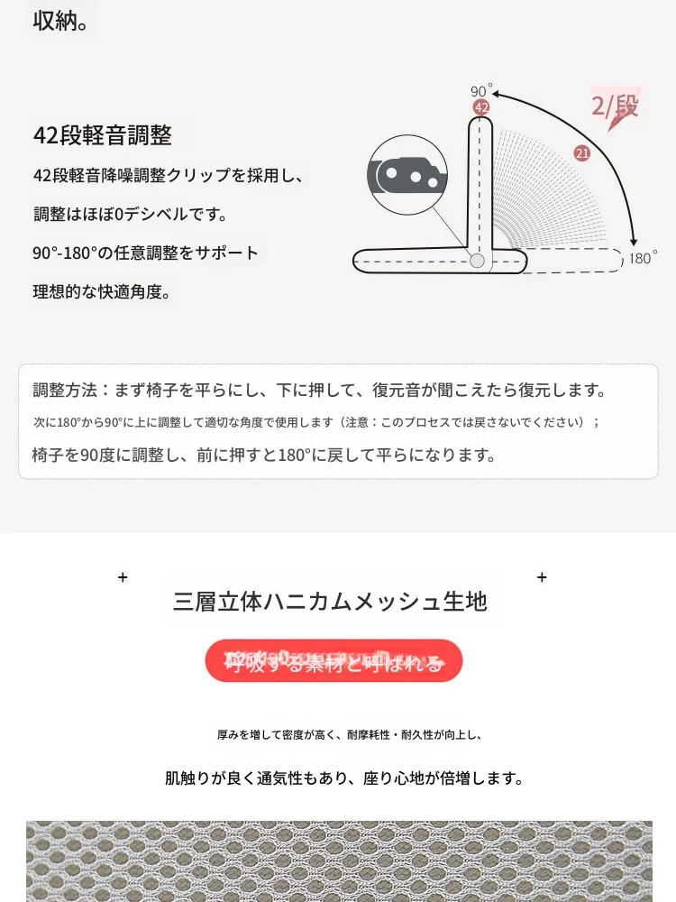 【アームレスト42段静音タイプ】ピンク+アイスシルククッション