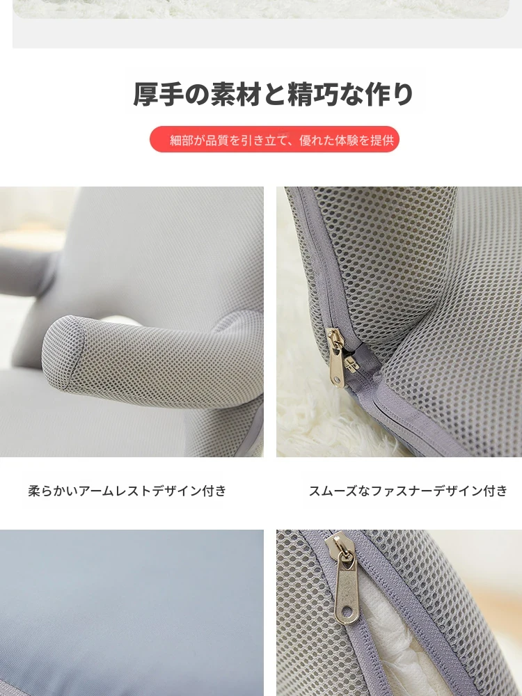 リラックスできるハンドレスト付きソファ!ベッドサイドや窓辺に最適なコンパクトなパソコンチェア。赤ちゃんを抱っこしながらの授乳にもぴったり。折りたたみ可能な畳スタイルの座椅子で、どんな空間にもフィット!