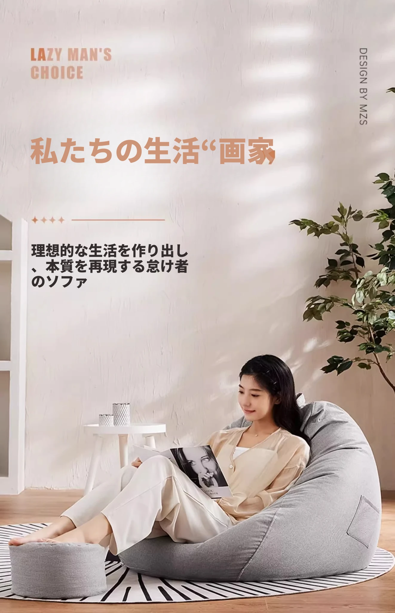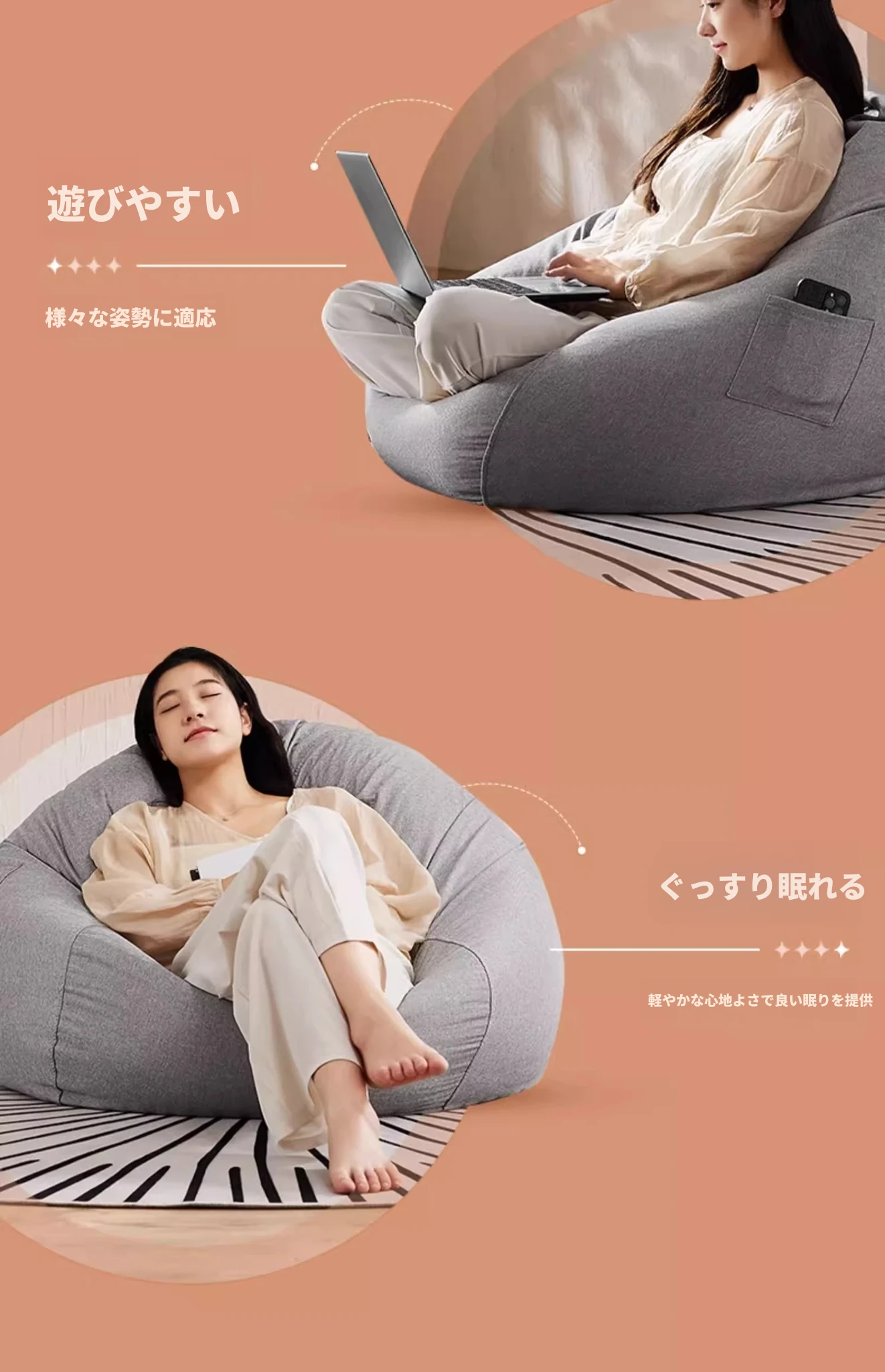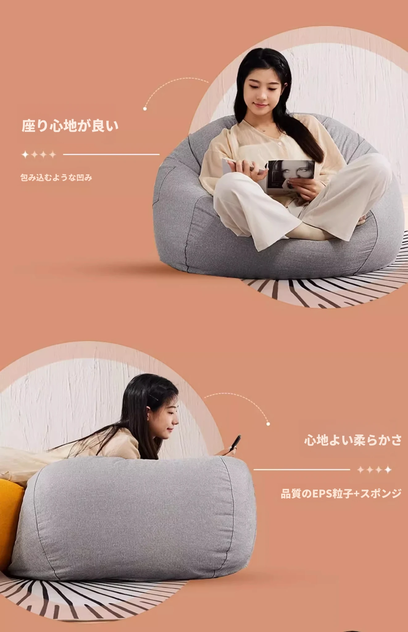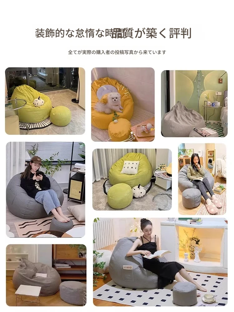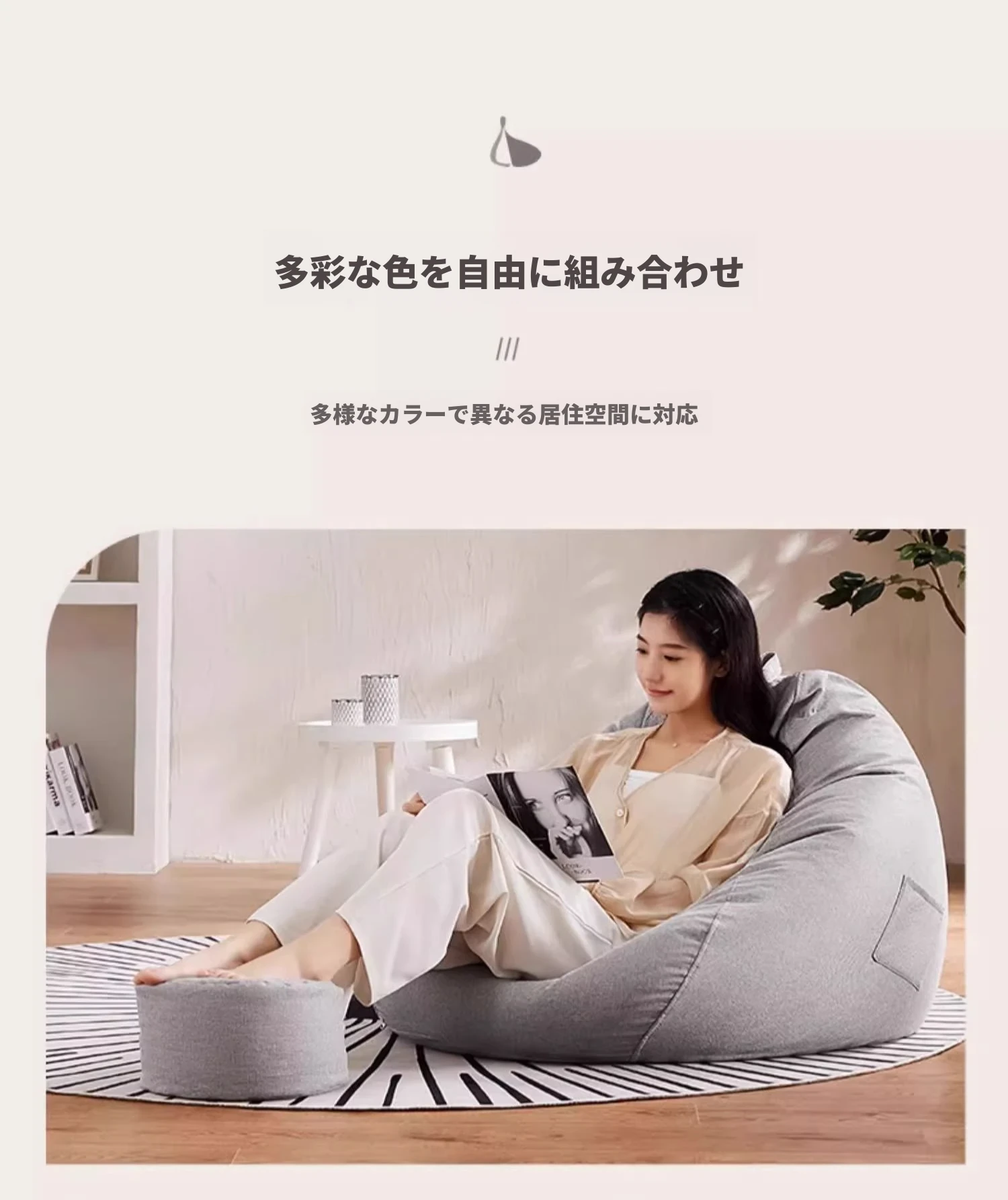 リラックスできる豆袋ソファ|家用の一人用陽台休憩チェア|畳にもぴったり!寝転がれるクリエイティブな小さなスツール|快適なひとときをお楽しみください!