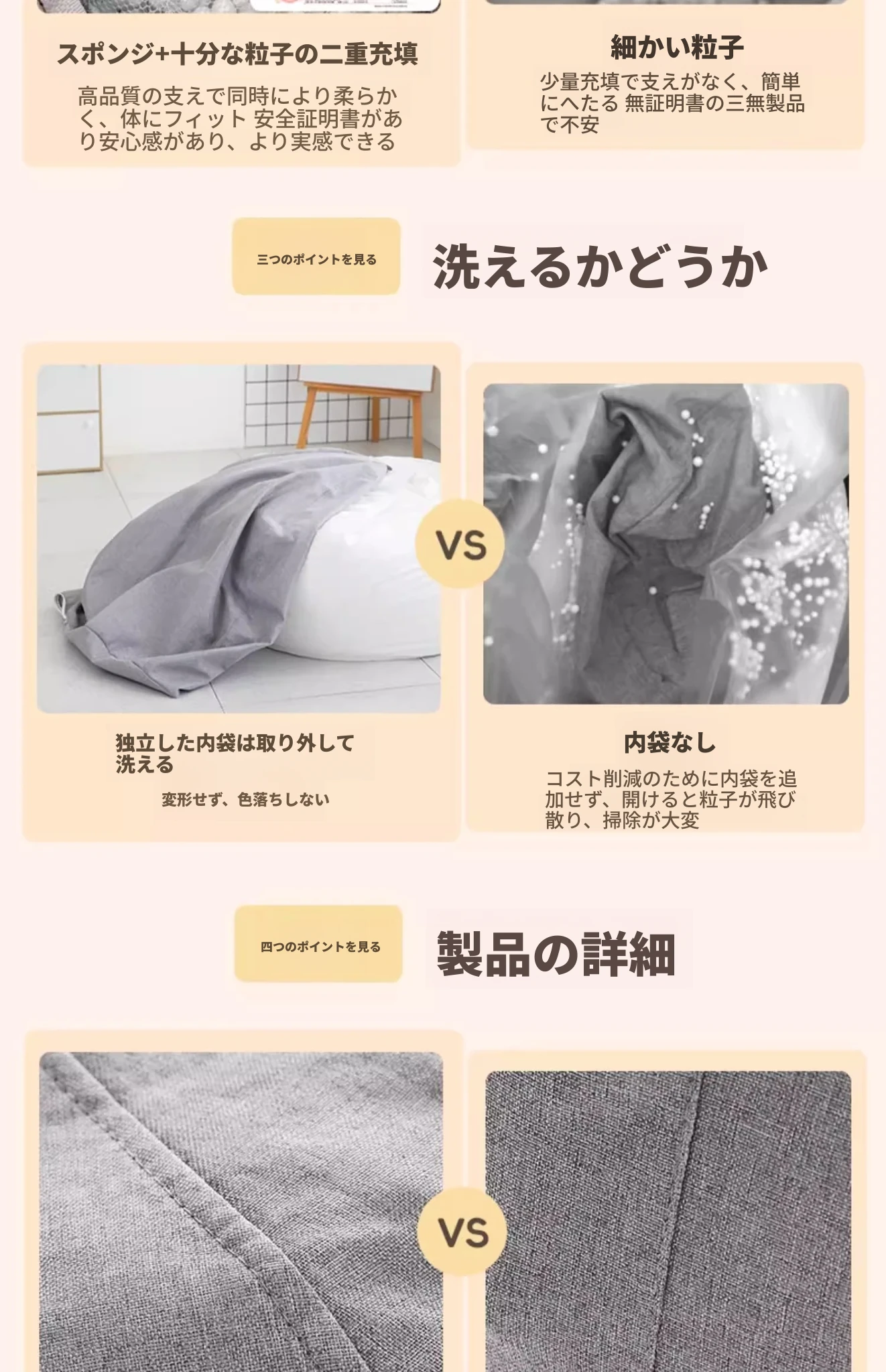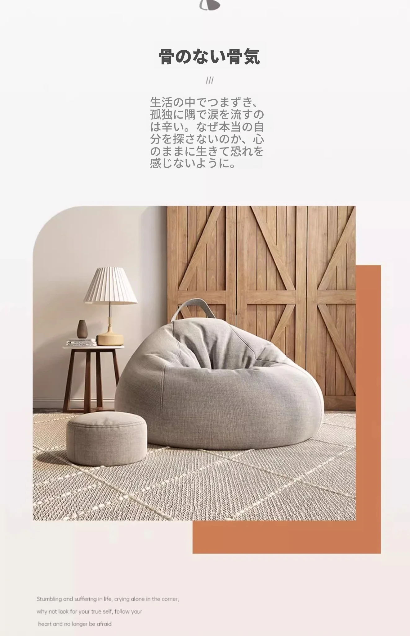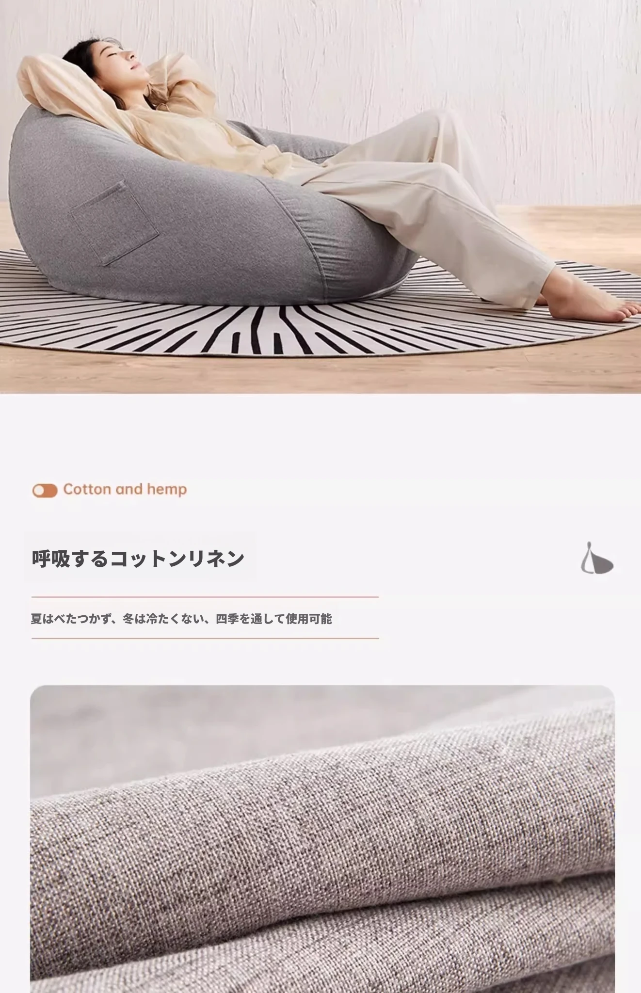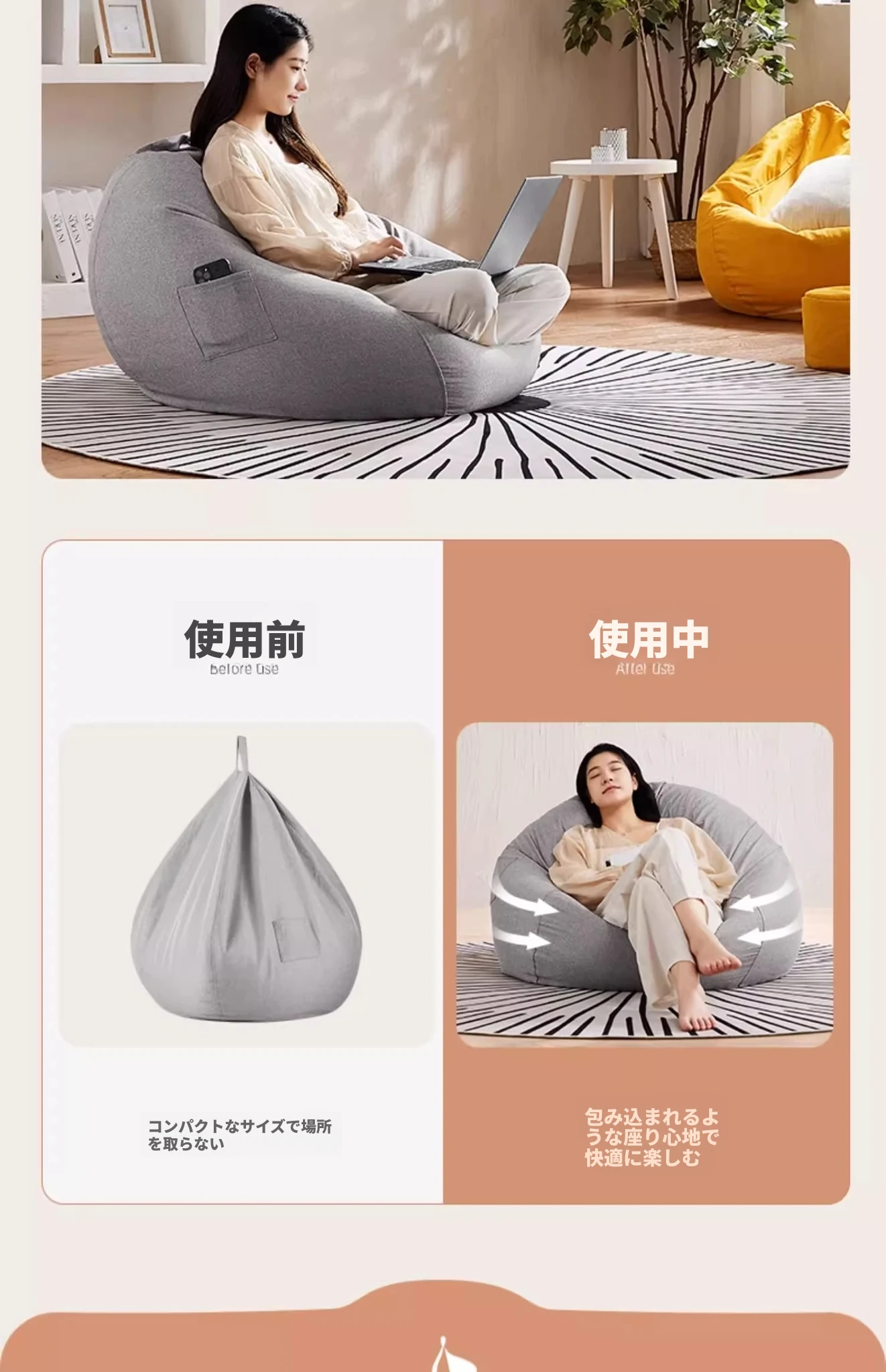 リラックスできる豆袋ソファ|家用の一人用陽台休憩チェア|畳にもぴったり!寝転がれるクリエイティブな小さなスツール|快適なひとときをお楽しみください!