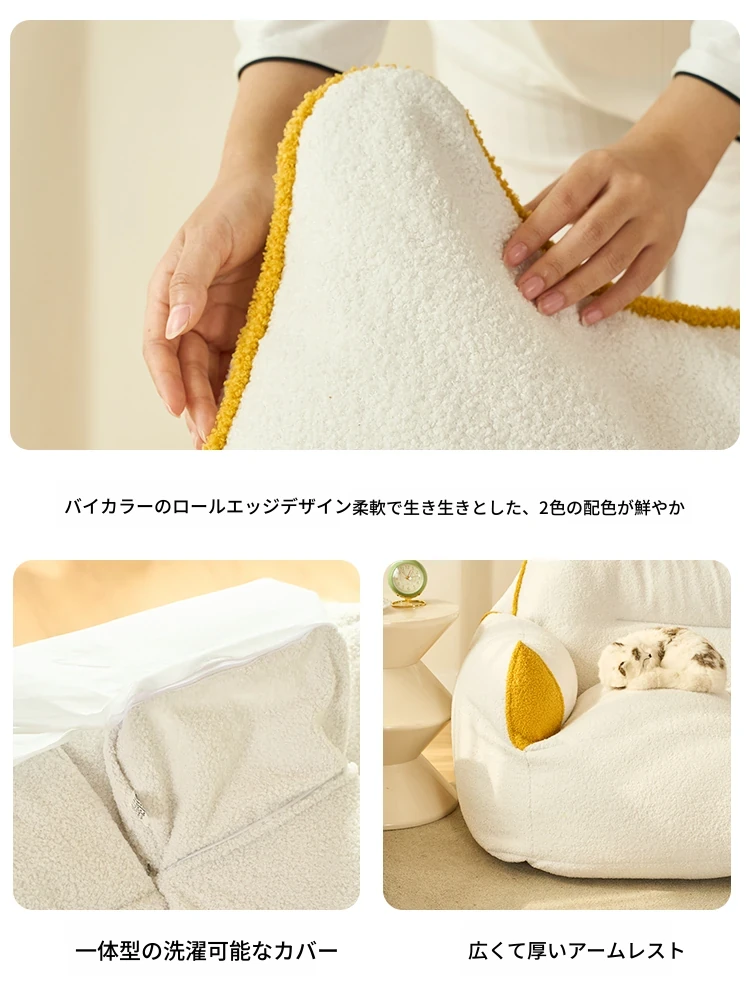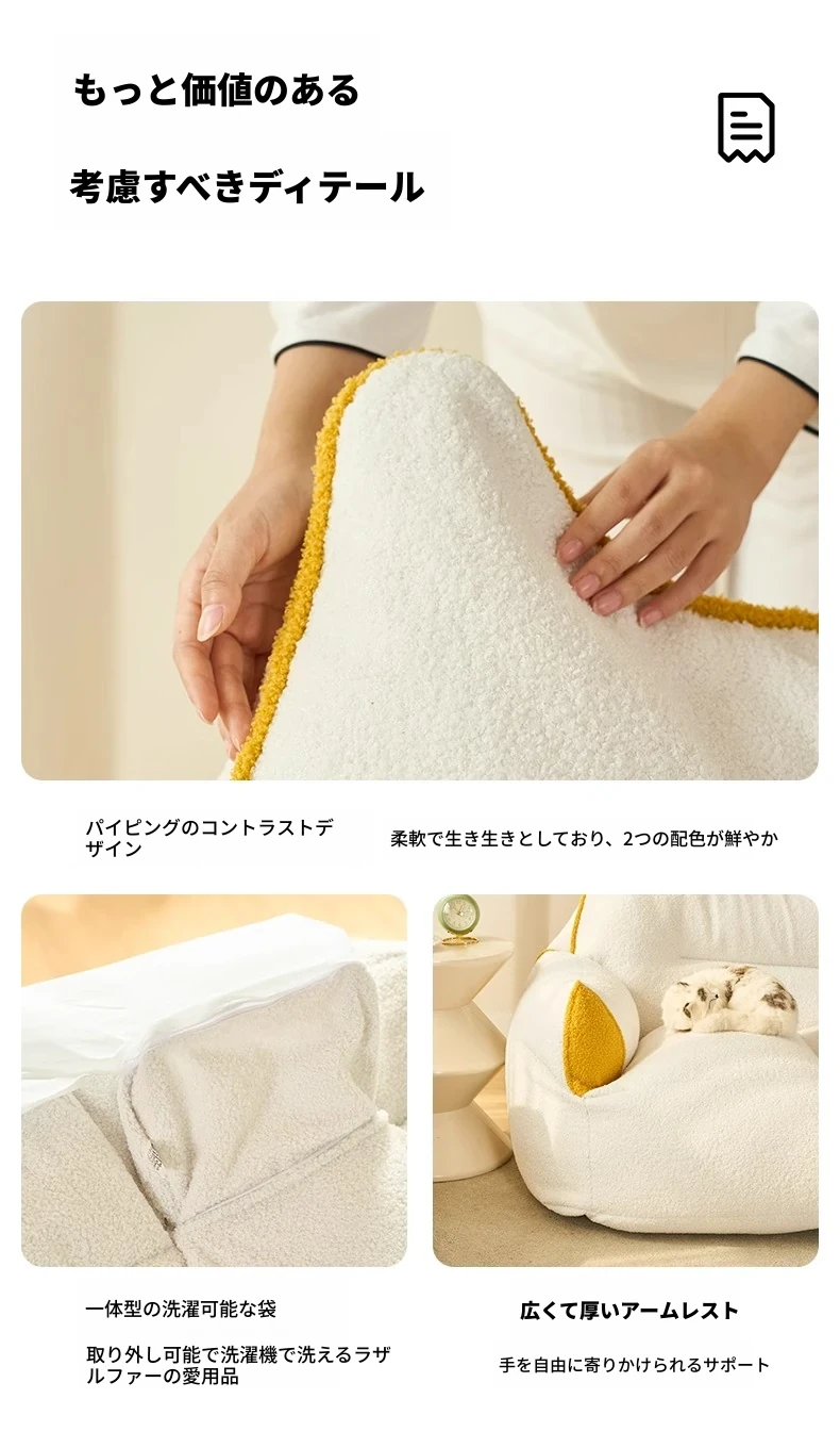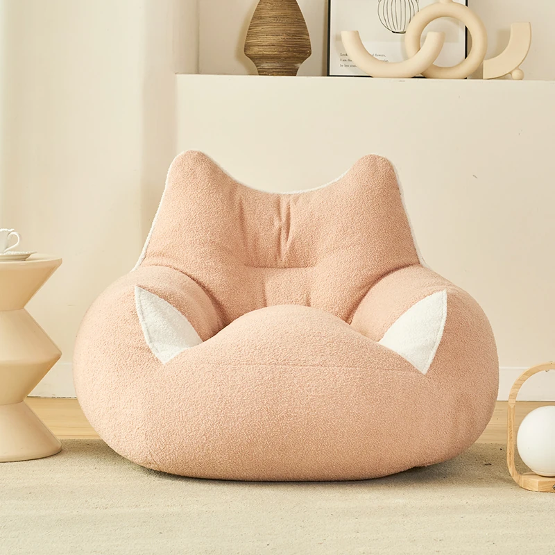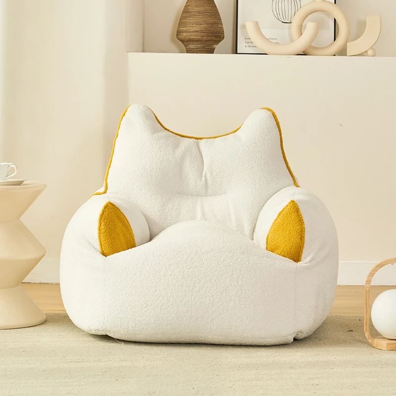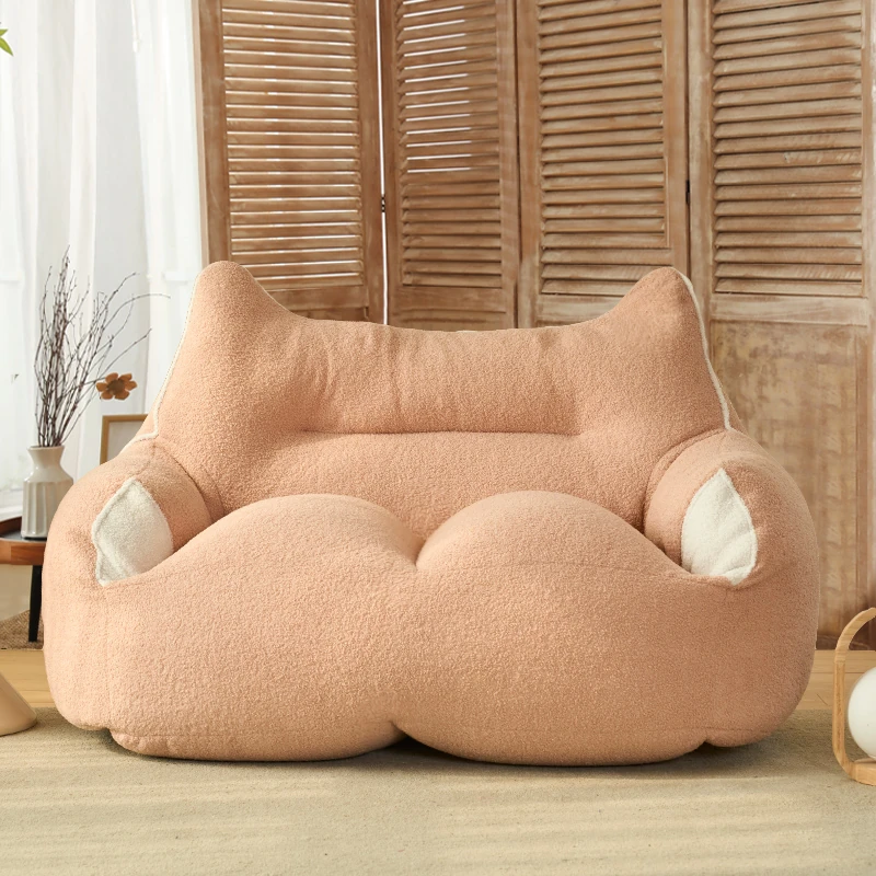 猫耳デザインのリラックス豆袋ソファ - 寝転びもできるダブルシート!小さなお部屋やリビングに最適な畳スタイルの快適チェア。心地よいくつろぎをお届けします。