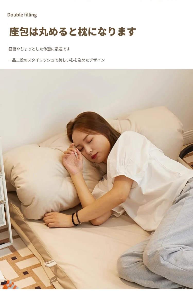 リビングに最適!ラウンジソファ・畳マット・窓辺クッションが一体化した快適な座布団!床に座って読書やバルコニーでリラックスするのに最適な背もたれクッションで、心地よいひとときをお楽しみください。