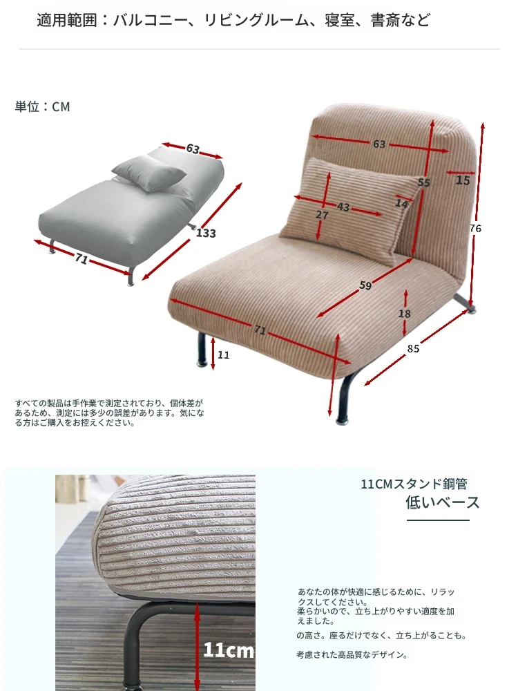 【さよならスタイル】和風一人用ソファー - リビング・バルコニー・寝室に最適!小さなスペースでも大活躍する、快適なロースタイルのリラックスチェア。