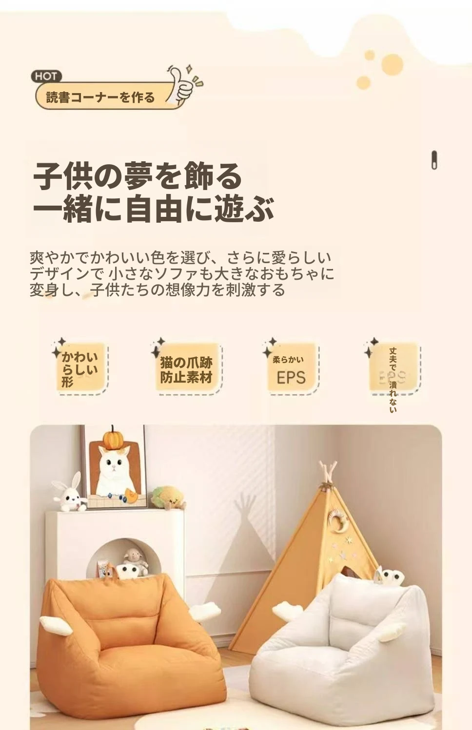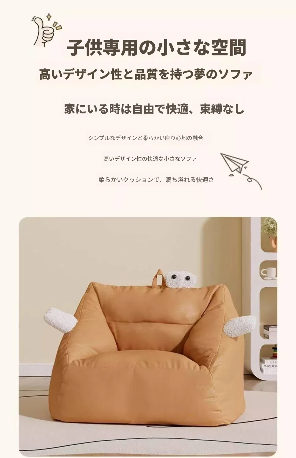 リラックスソファ|寝転びながら読書も楽しめる!可愛い一人用サロンチェア|男の子・女の子にぴったりの小さなソファ|快適なひとときをあなたに!