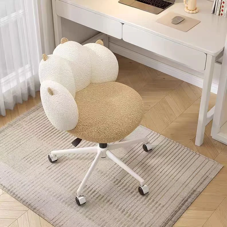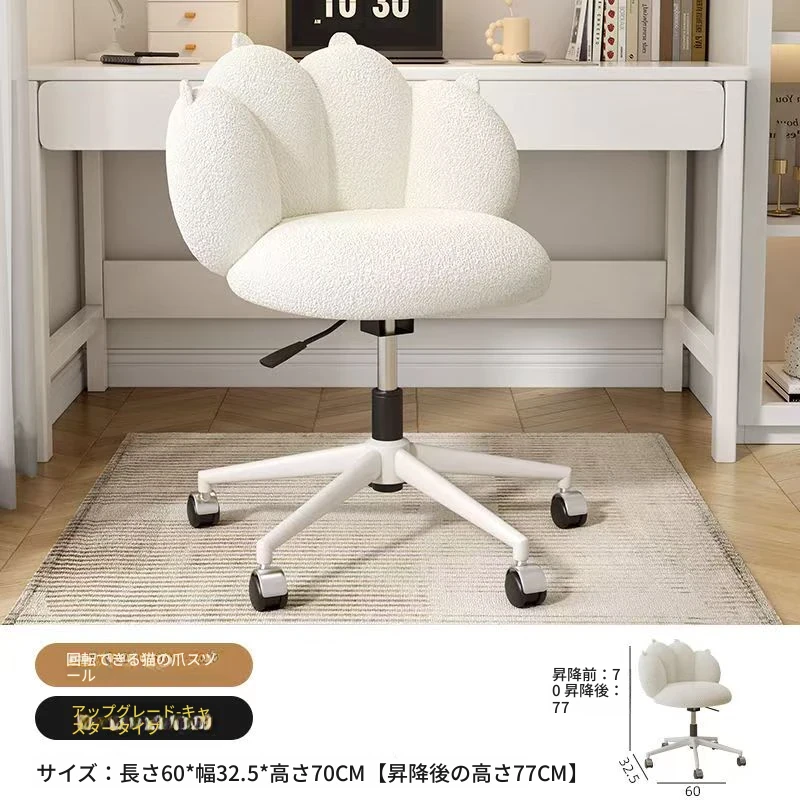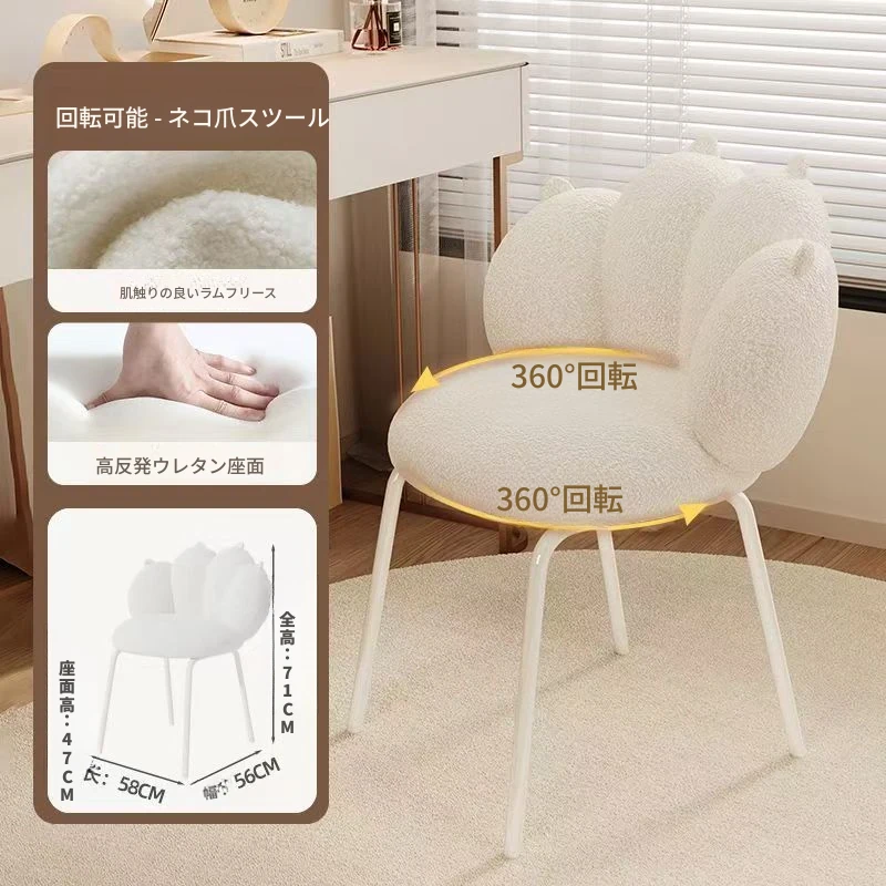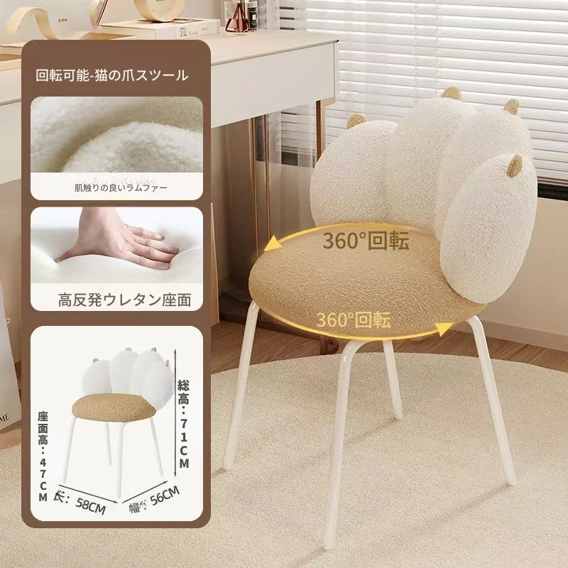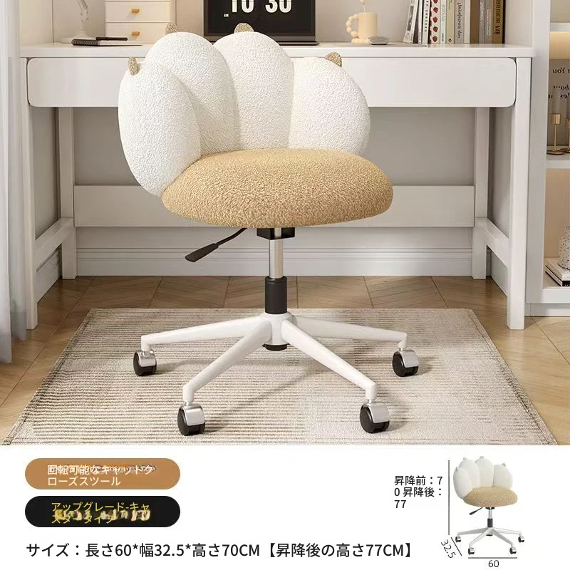 高級感あふれるキャメルファーのカジュアルチェア|小さな部屋に最適なライトラグジュアリー|回転&高さ調節可能なドレッサーチェア|クリーミーな風合いで、快適な書斎や寝室にぴったり!